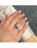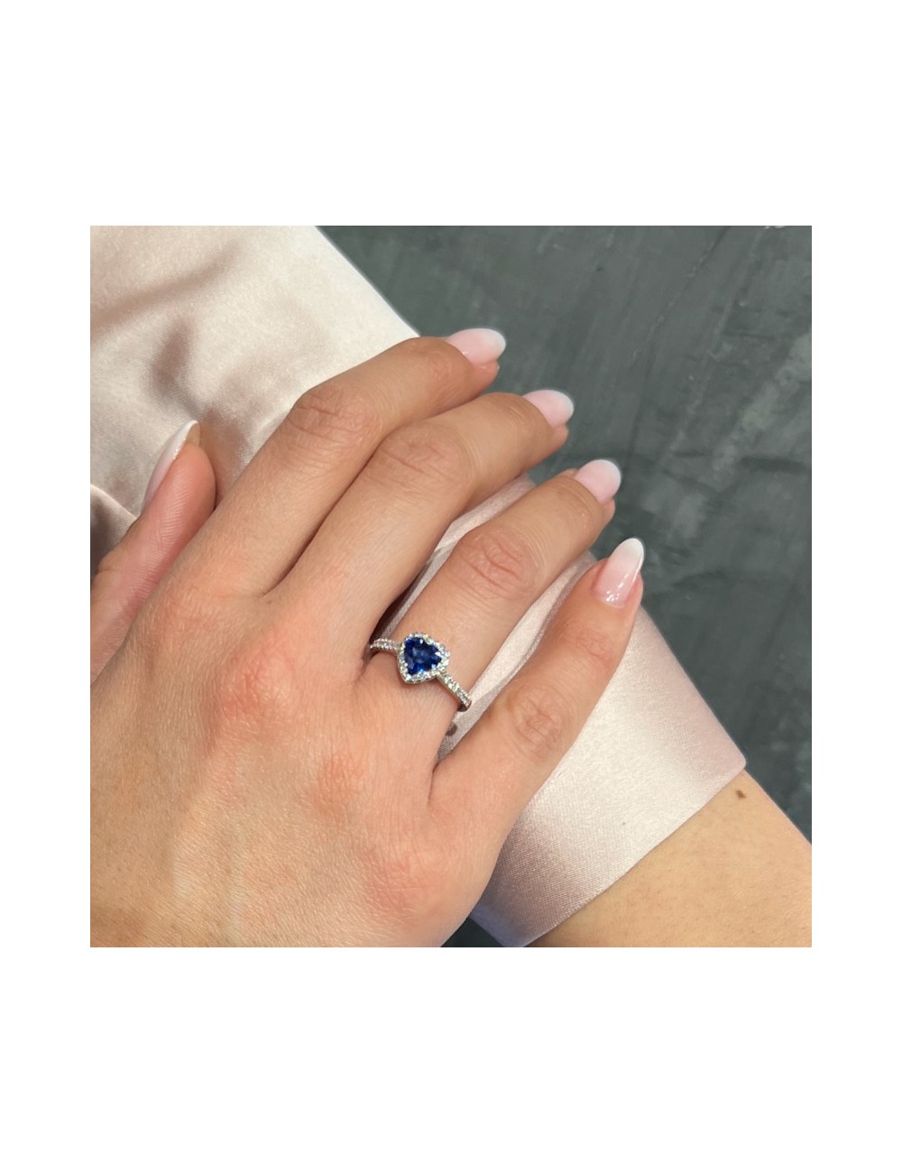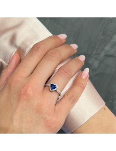 Anello in oro bianco con n.1 Zaffiro Ceylon primo colore taglio "cuore" ct.1,10