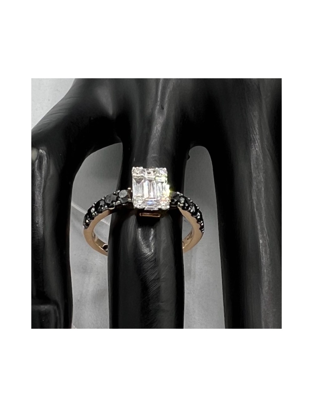 -Anello in oro rosa con Diamanti taglio "Baguette" e Brillante,G color ct.0,45,Diamanti Black ct.0,57. 2910€ NON DISPONIBILE