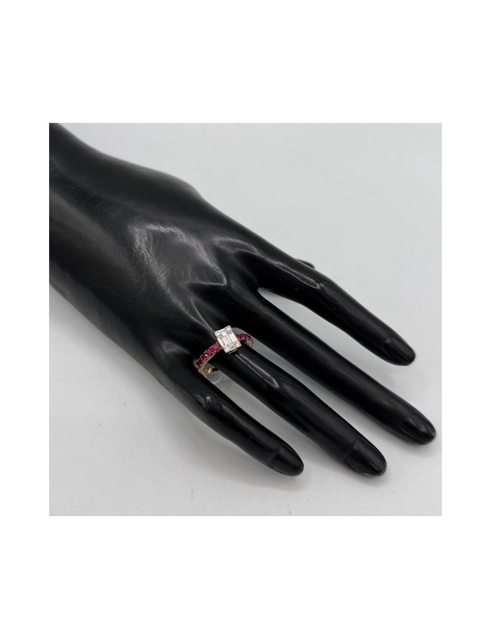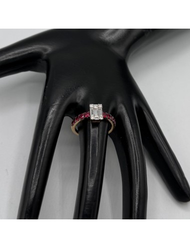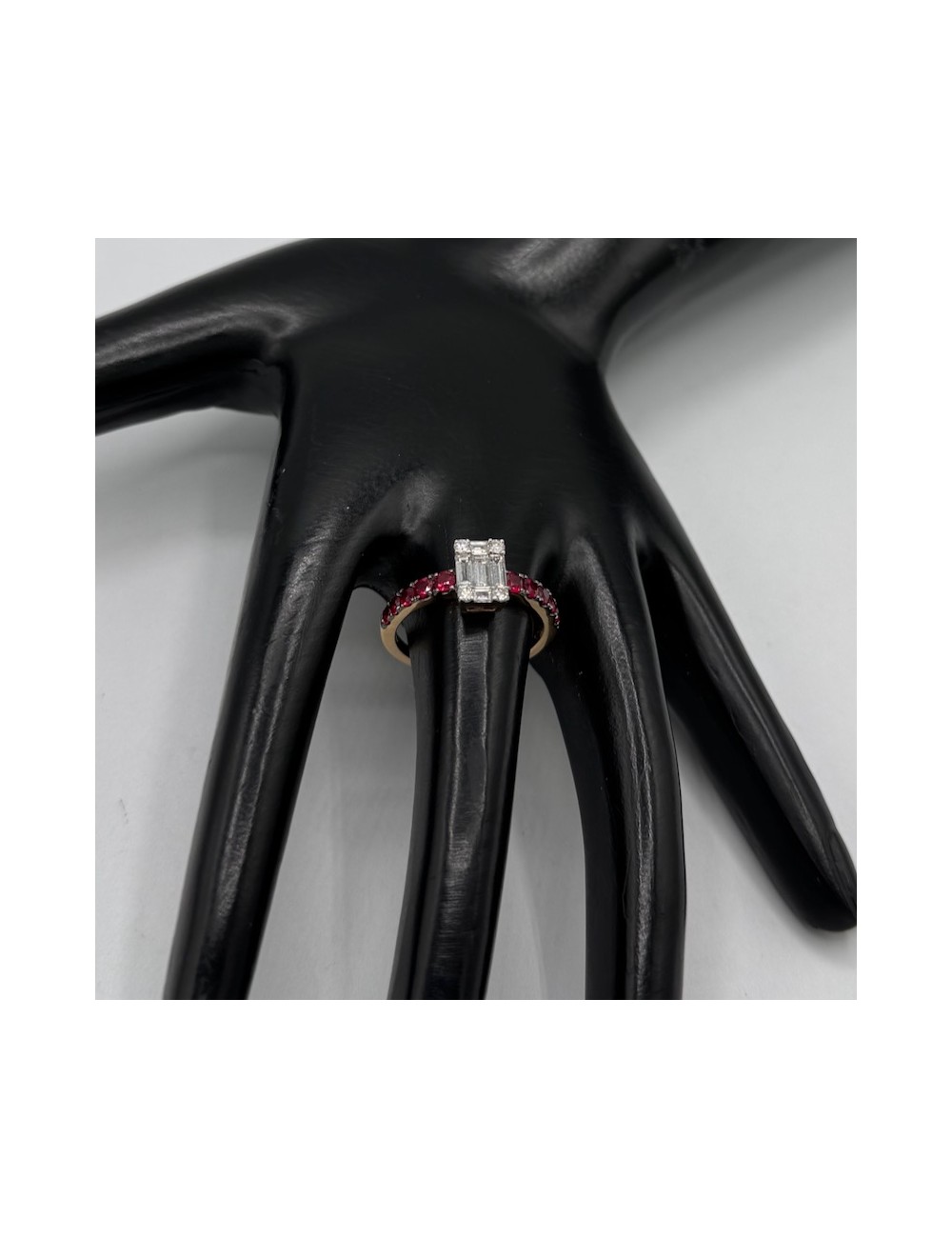 -Anello in oro rosa con Diamanti taglio "Baguette" e Brillante,G color ct. 0,94,Rubini naturali ct.0,10. 2620€