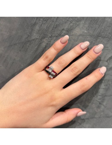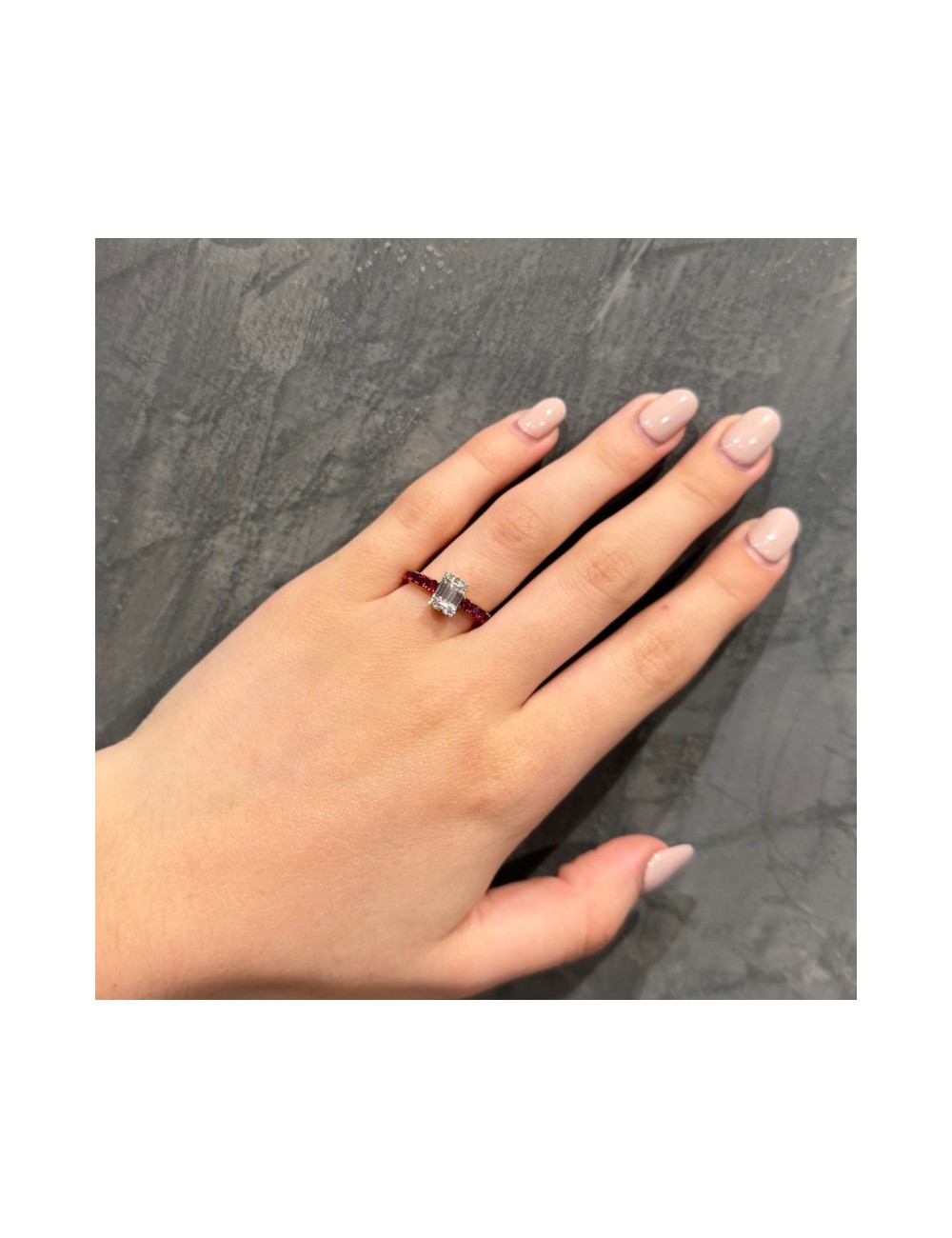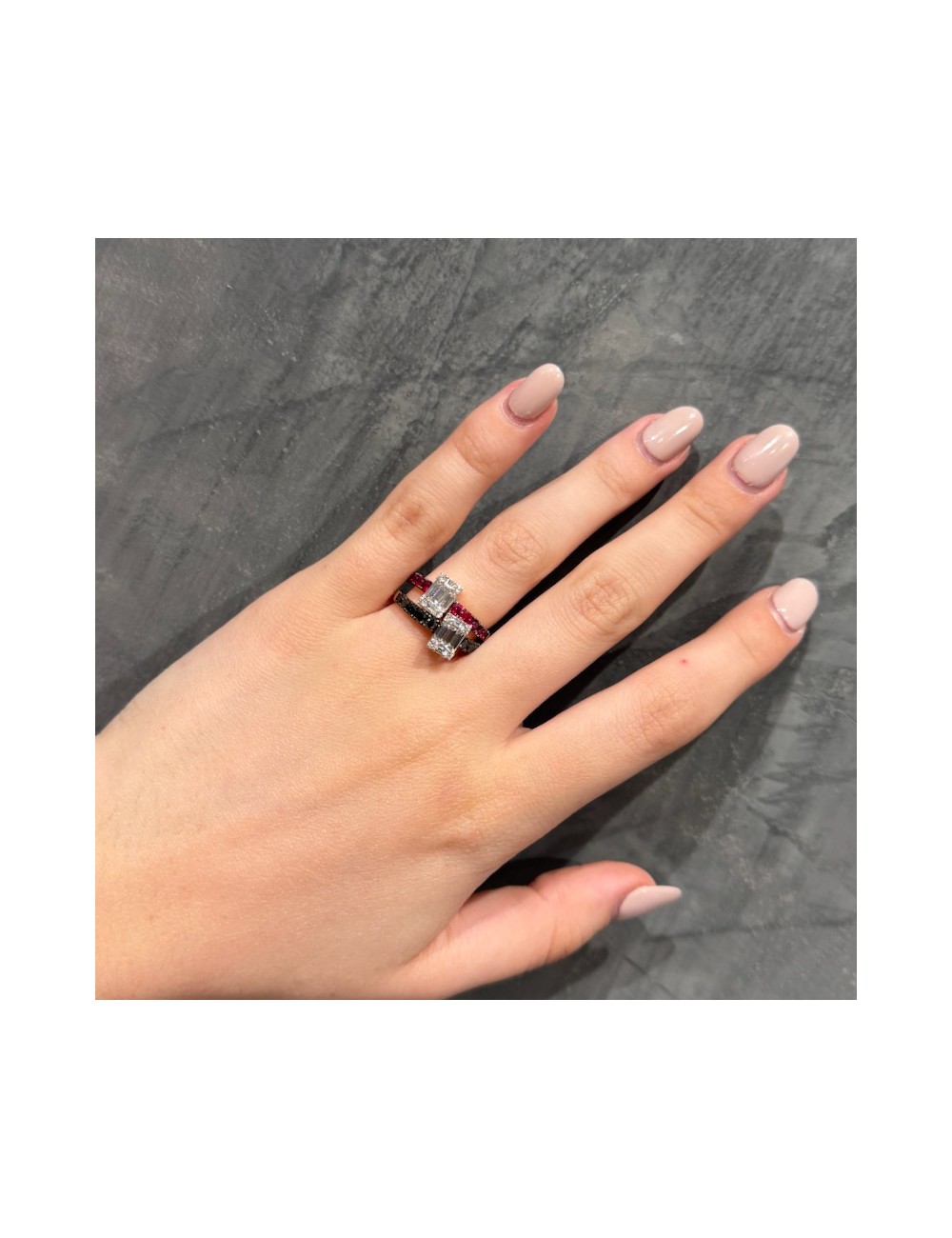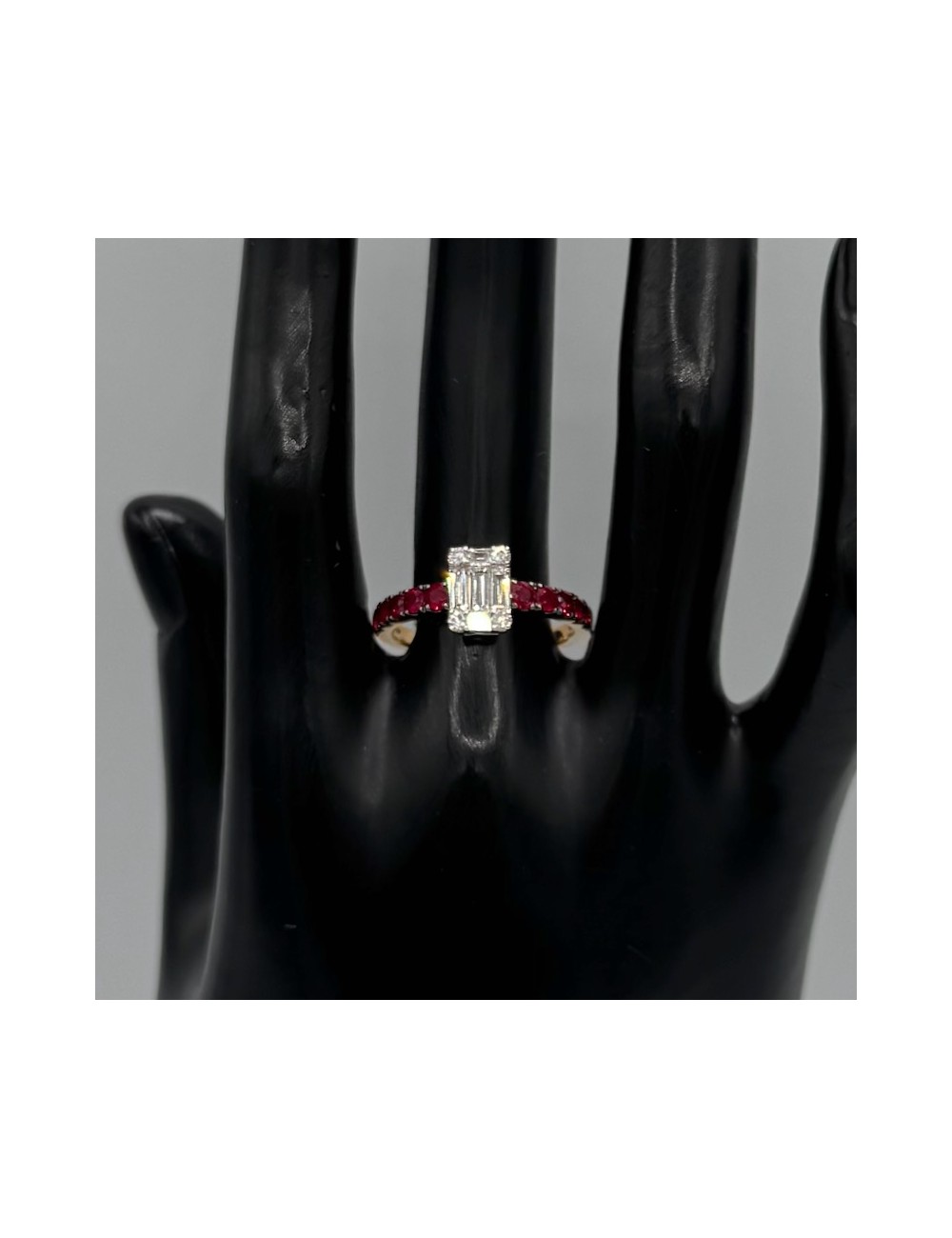 -Anello in oro rosa con Diamanti taglio "Baguette" e Brillante,G color ct. 0,94,Rubini naturali ct.0,10. 2620€