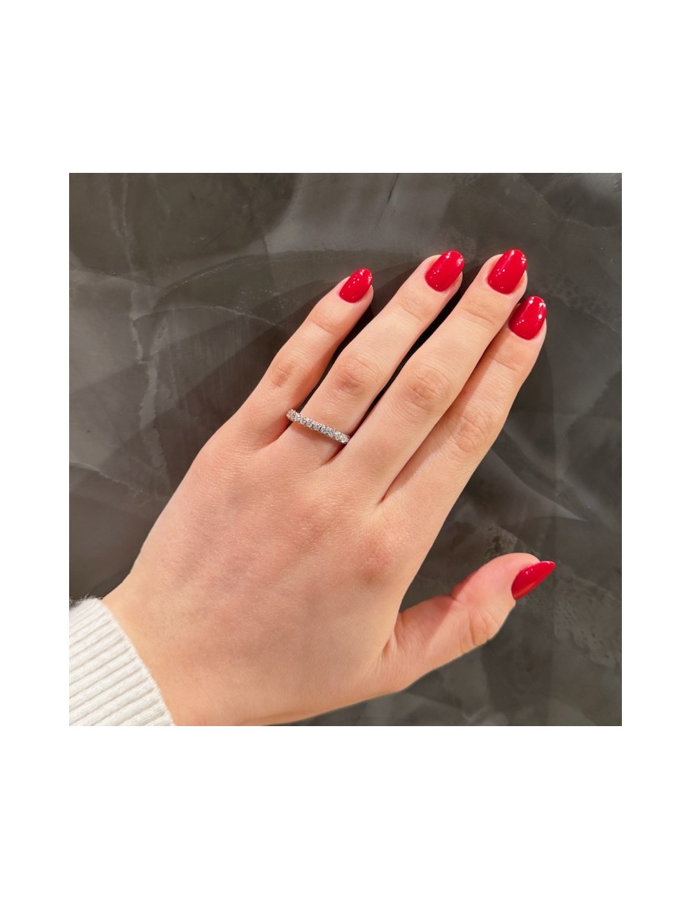 Eternity sottile e bombata con incassatura "completa e laterale" che restituisce grande luminosità.