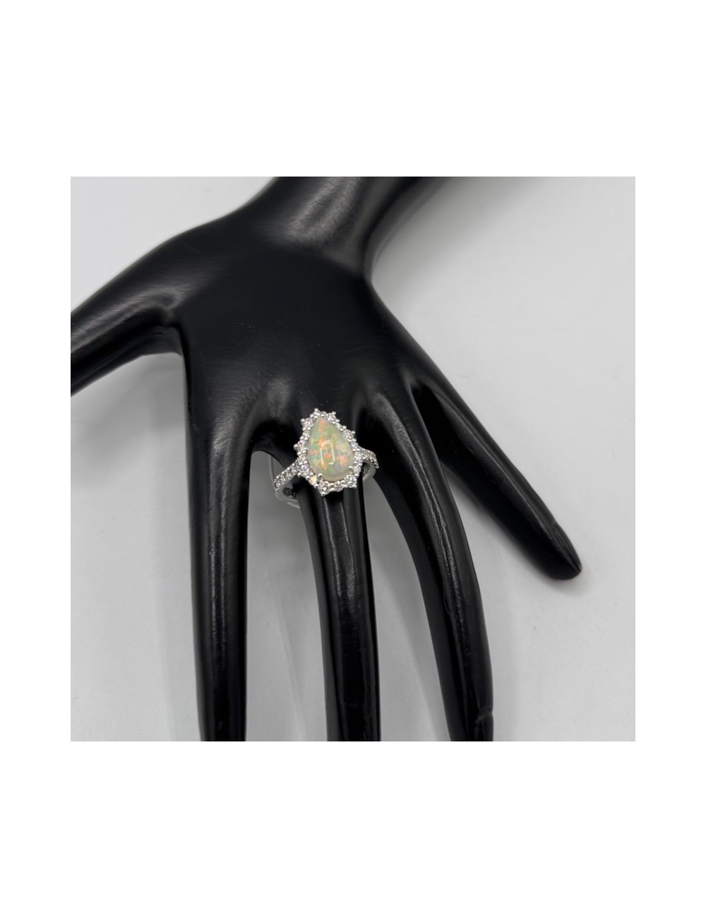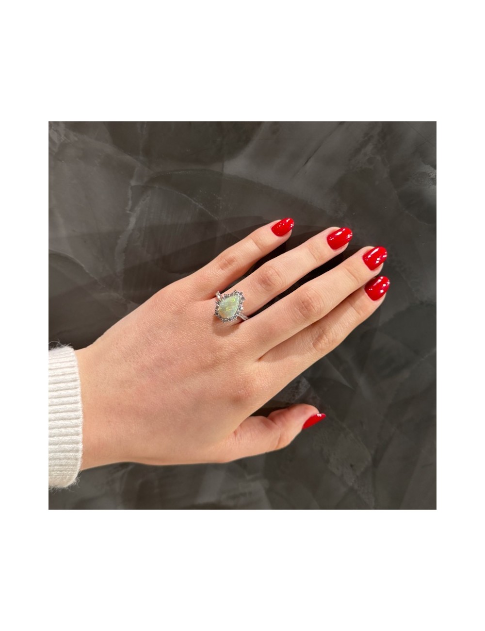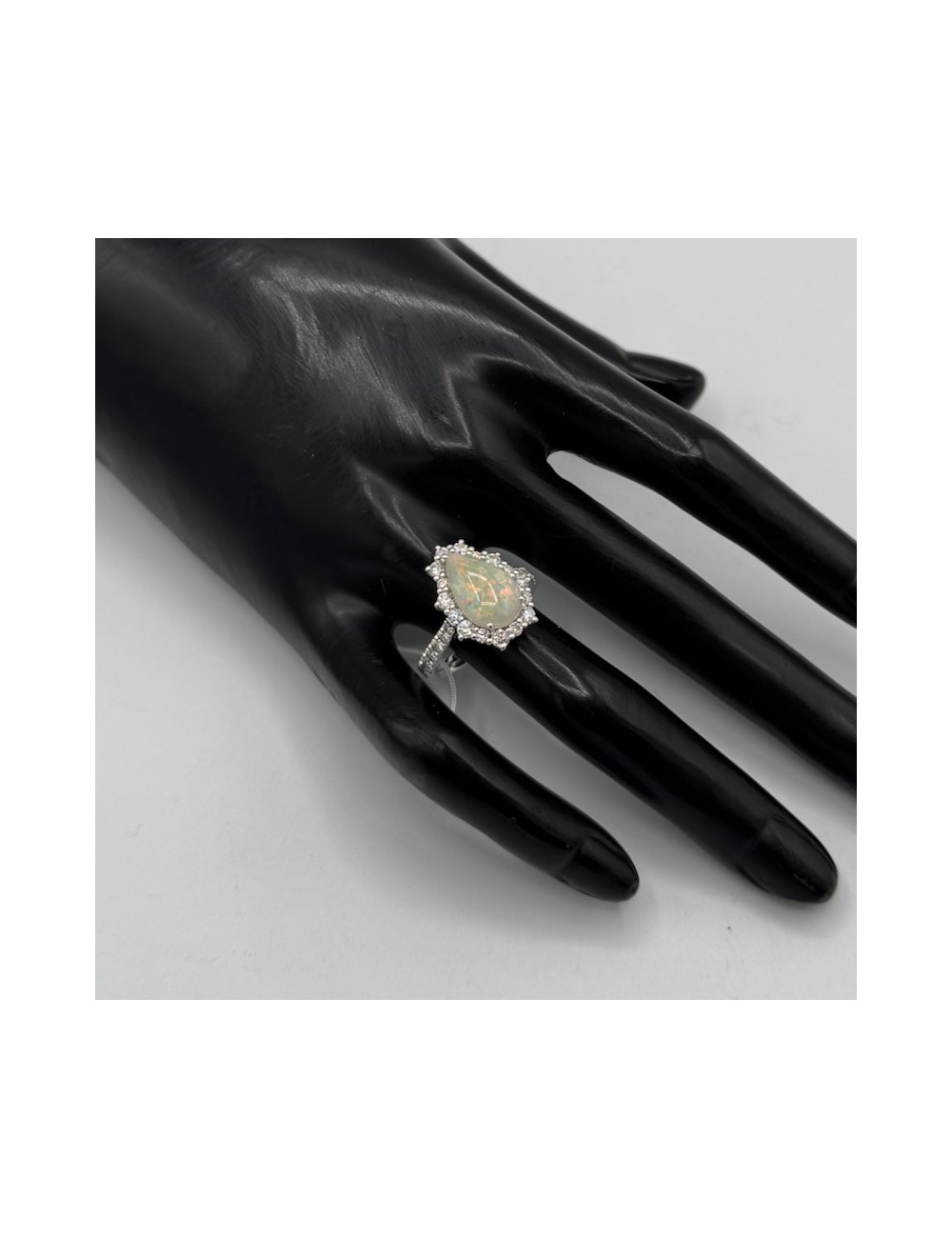 Anello in oro bianco con un Opale naturale taglio Goccia ct.2,01.