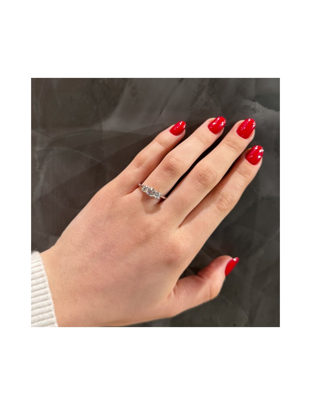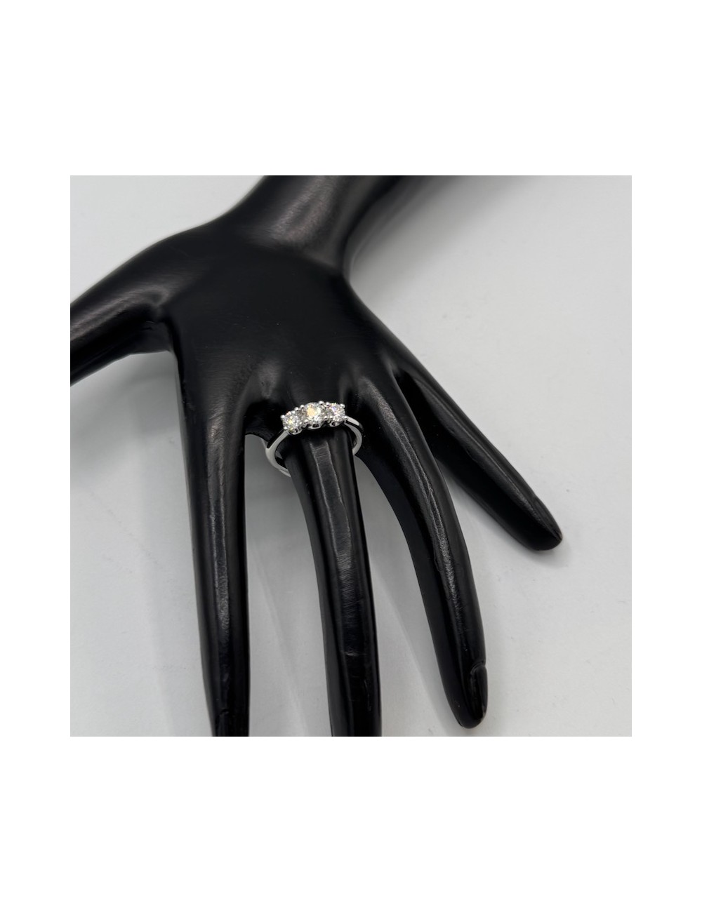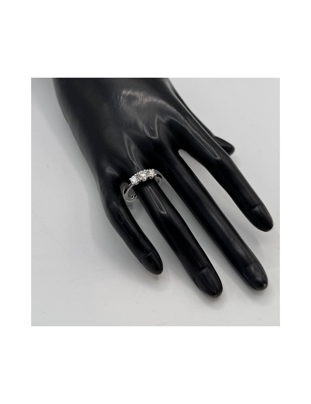 Anello in oro bianco modello "Trilogy a scalare" con montatura "4 grifs a giorno".