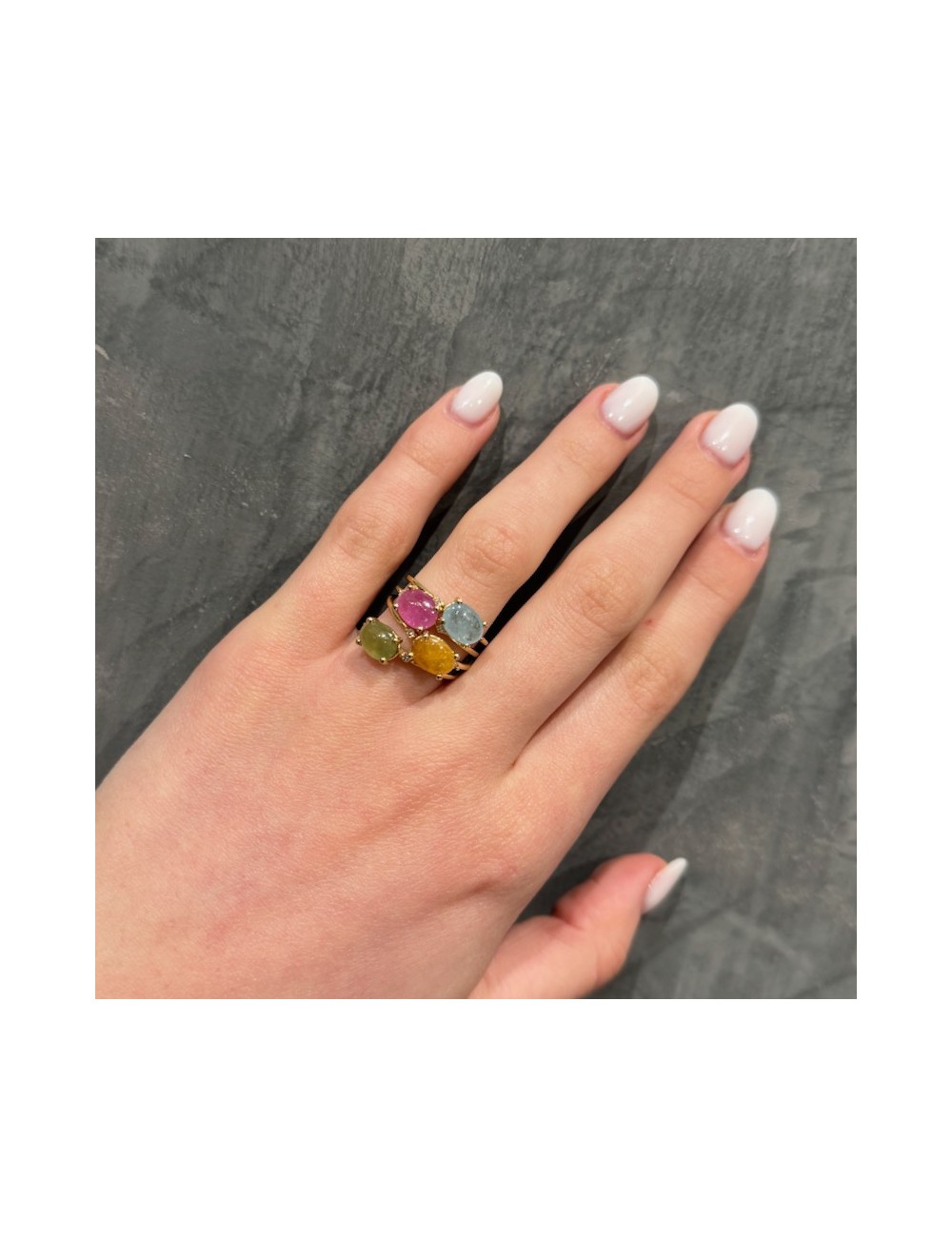 Anelli in oro rosa con Zaffiri naturali colorati taglio Cabochon.