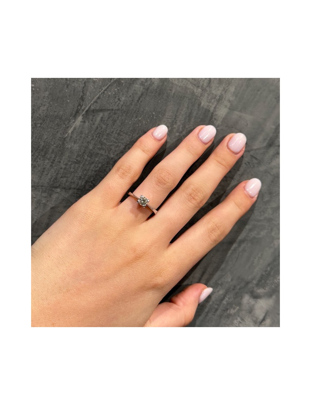 Anello in oro bianco modello "Solitario" con montatura "4 grifs massicce".