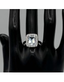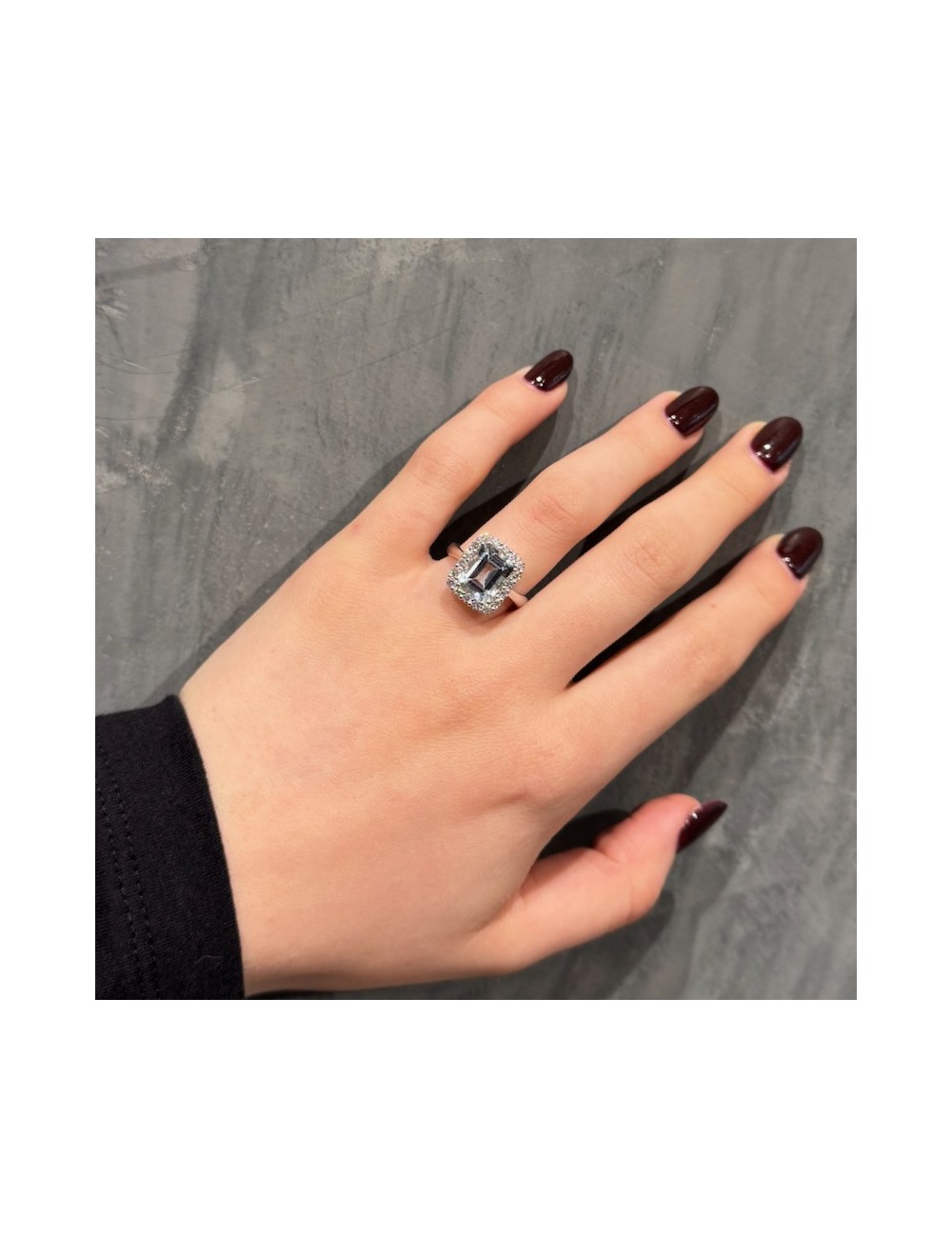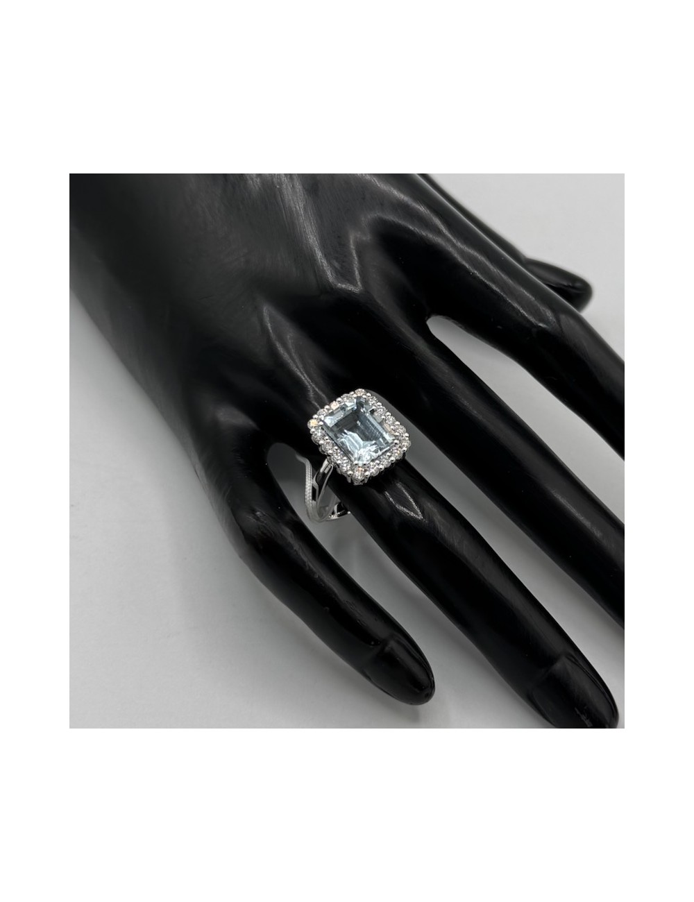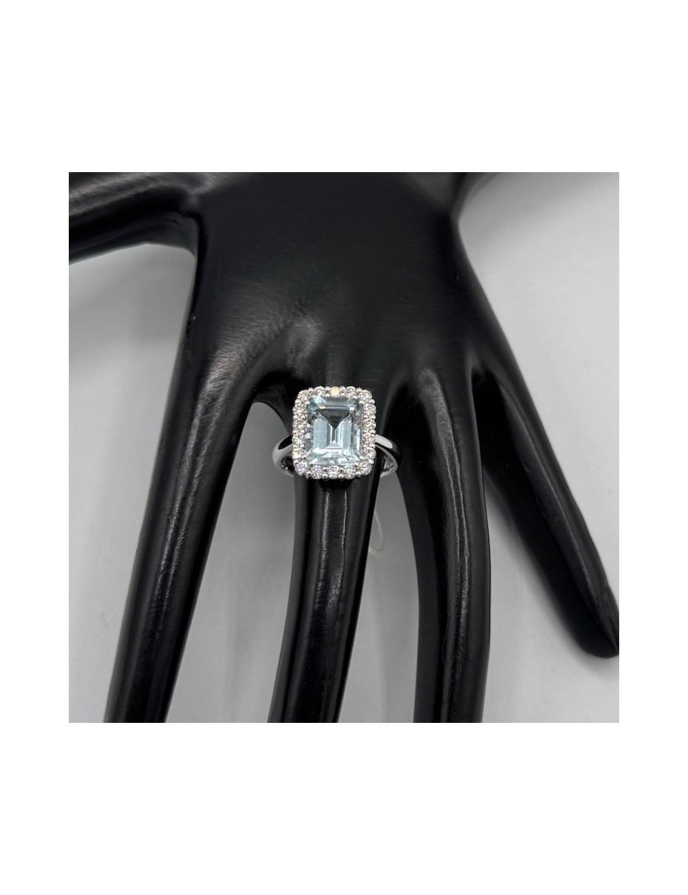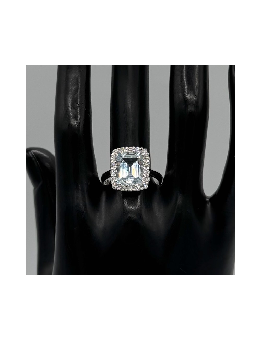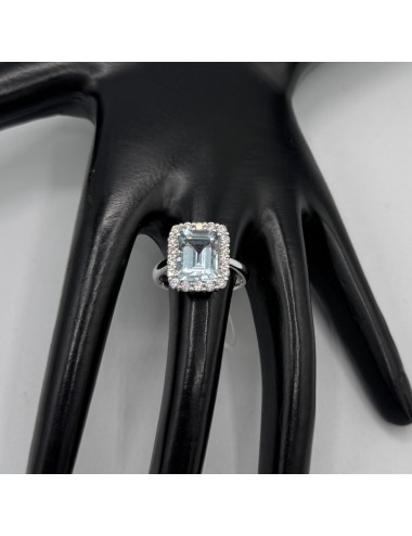 Anello in oro bianco con pietra Acqua Marina naturale centrale taglio "Smeraldo",ct.2,95.