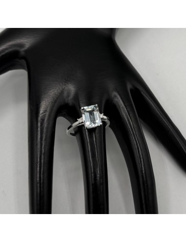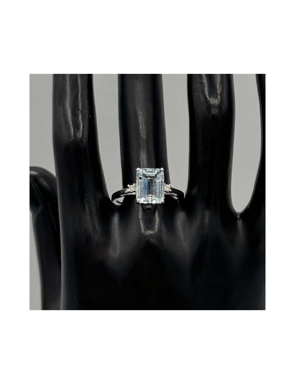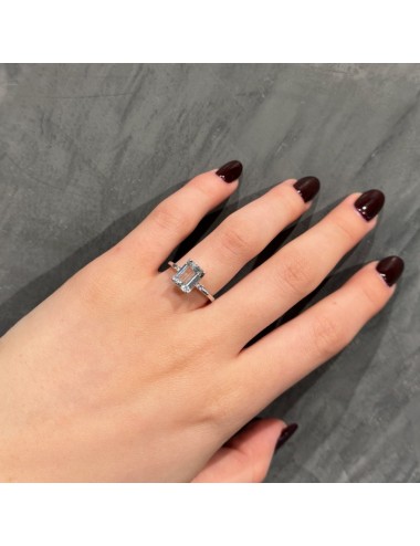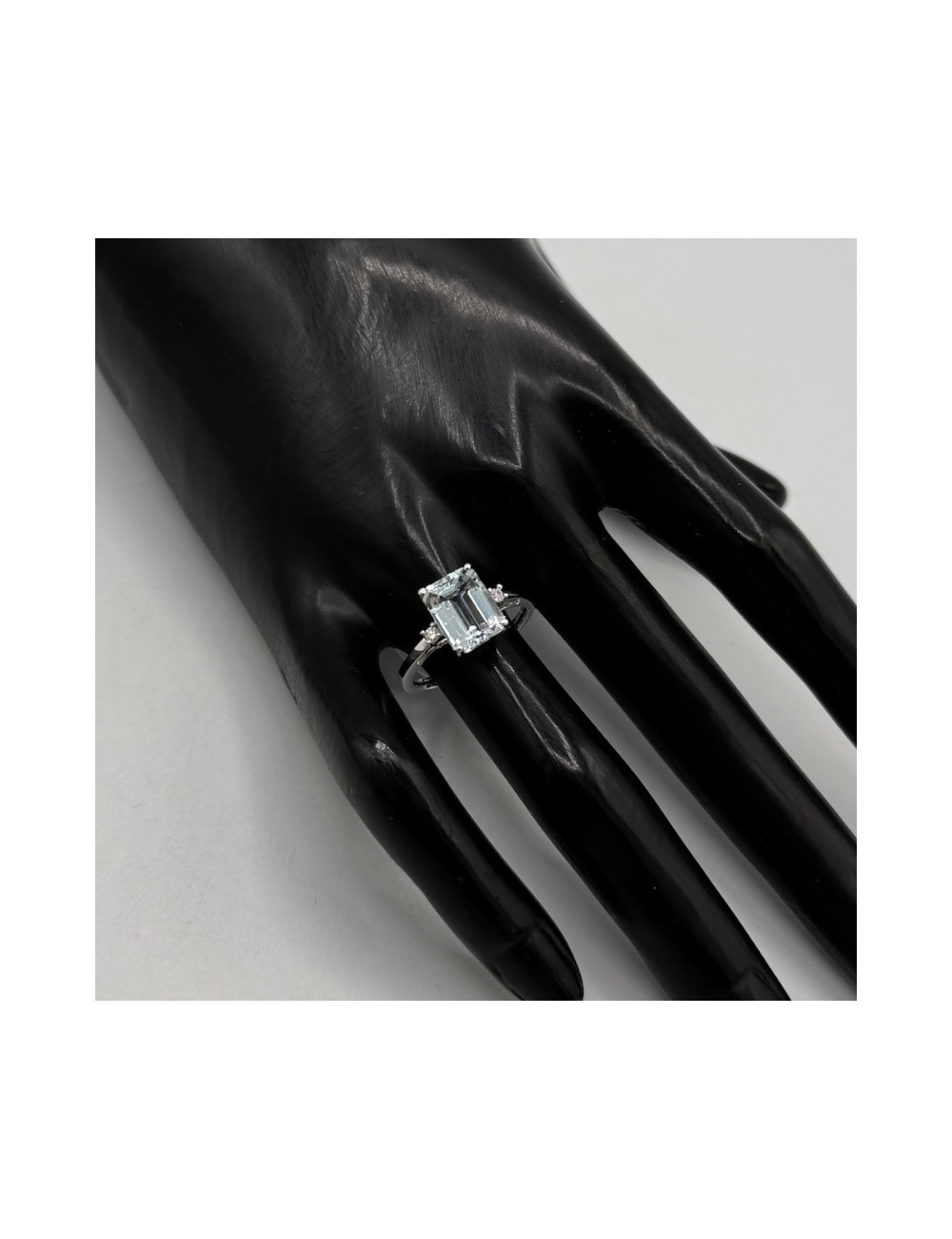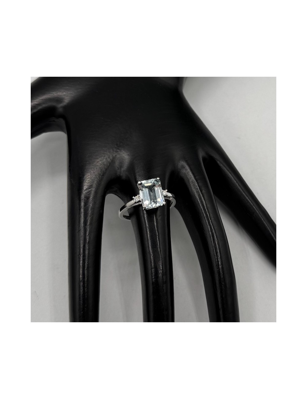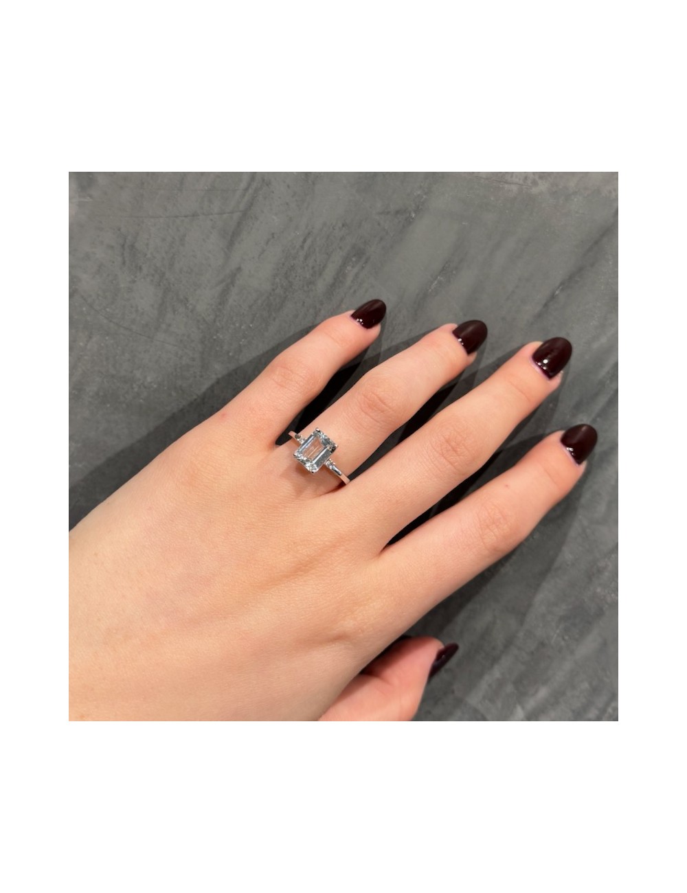 Anello in oro bianco con una pietra Acqua Marina naturale taglio "Smeraldo" ct.2,42.