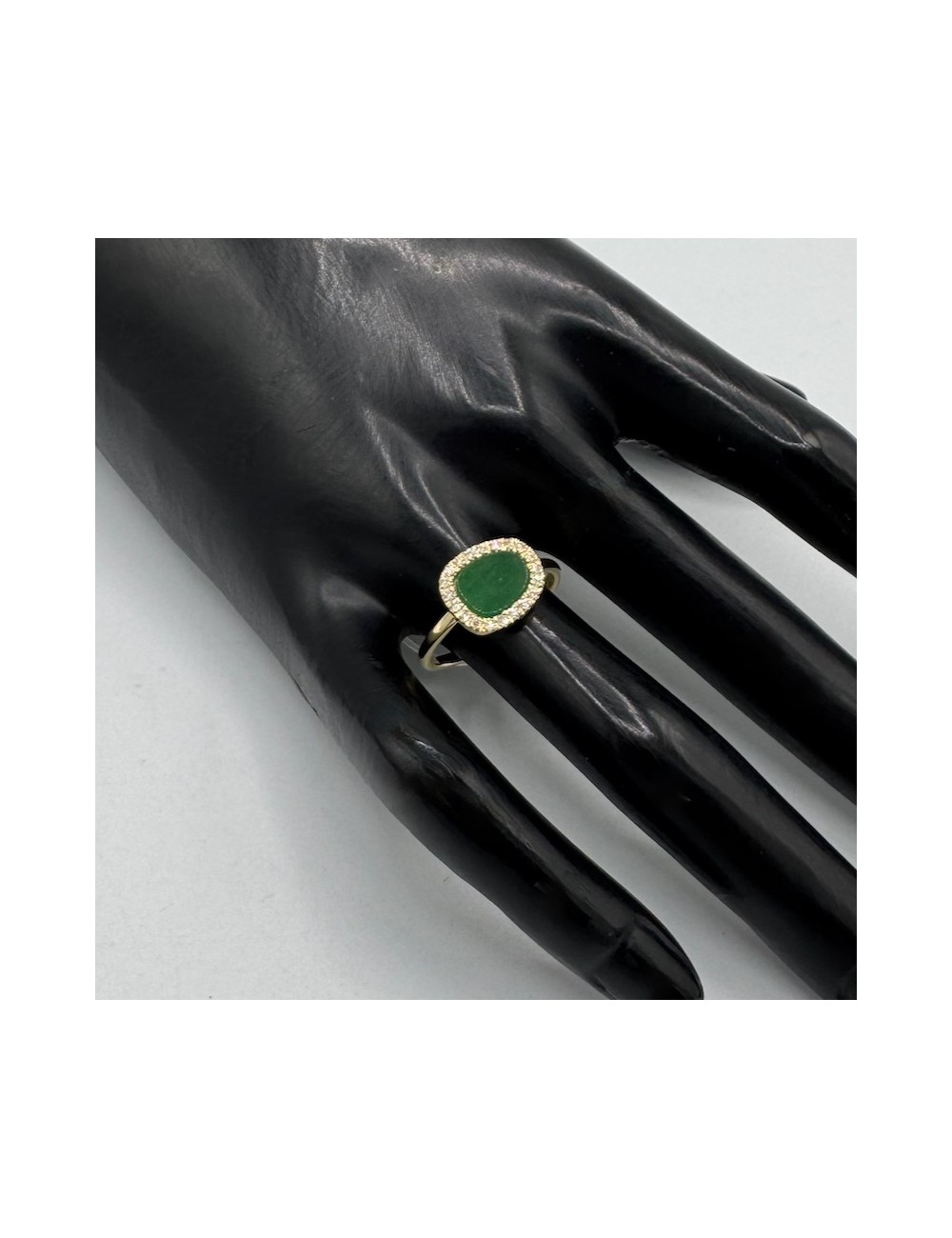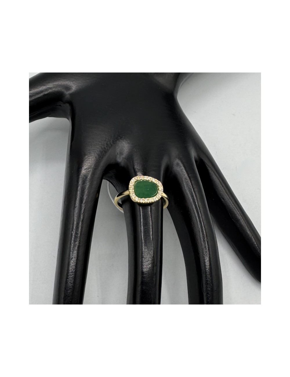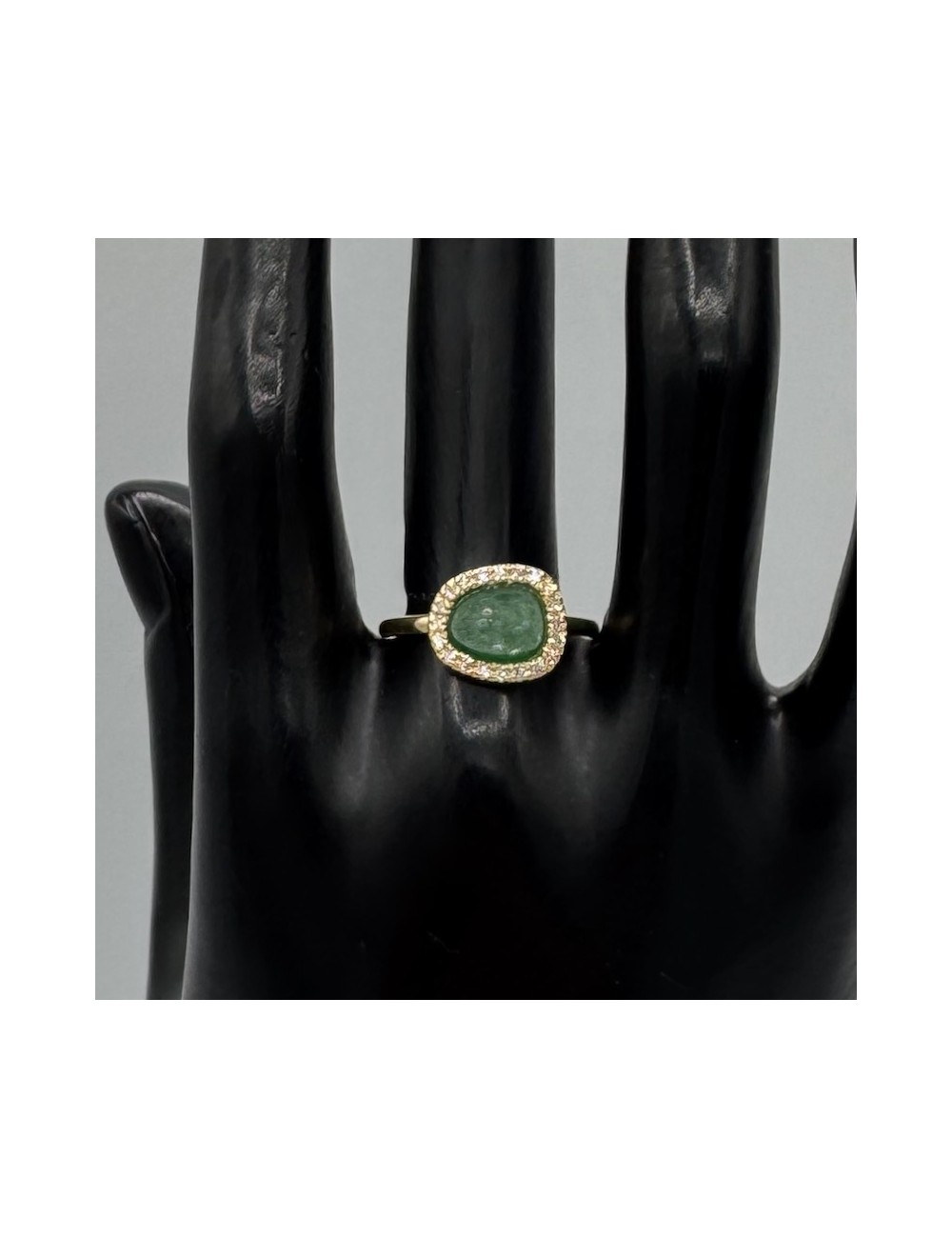 -Anello in oro giallo 9 ct.Pietra Avventurina naturale e contorno in Diamanti taglio Brillante G color ct.0,12.640€