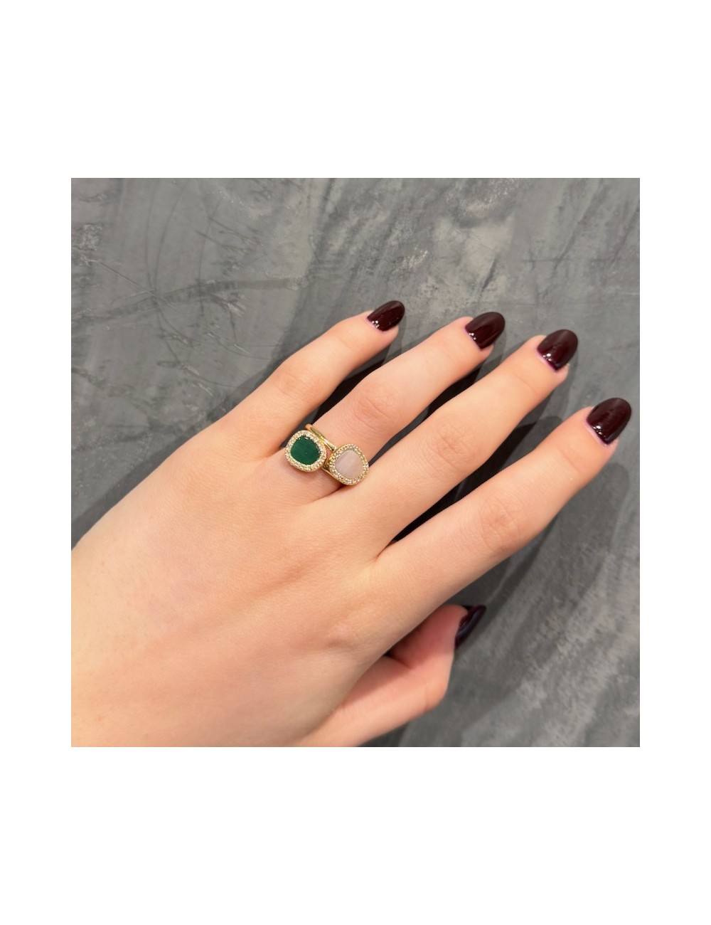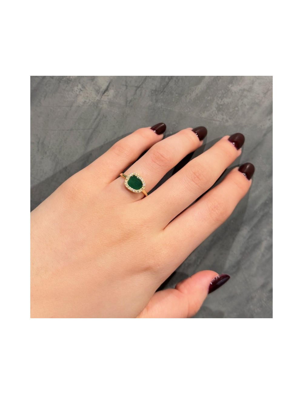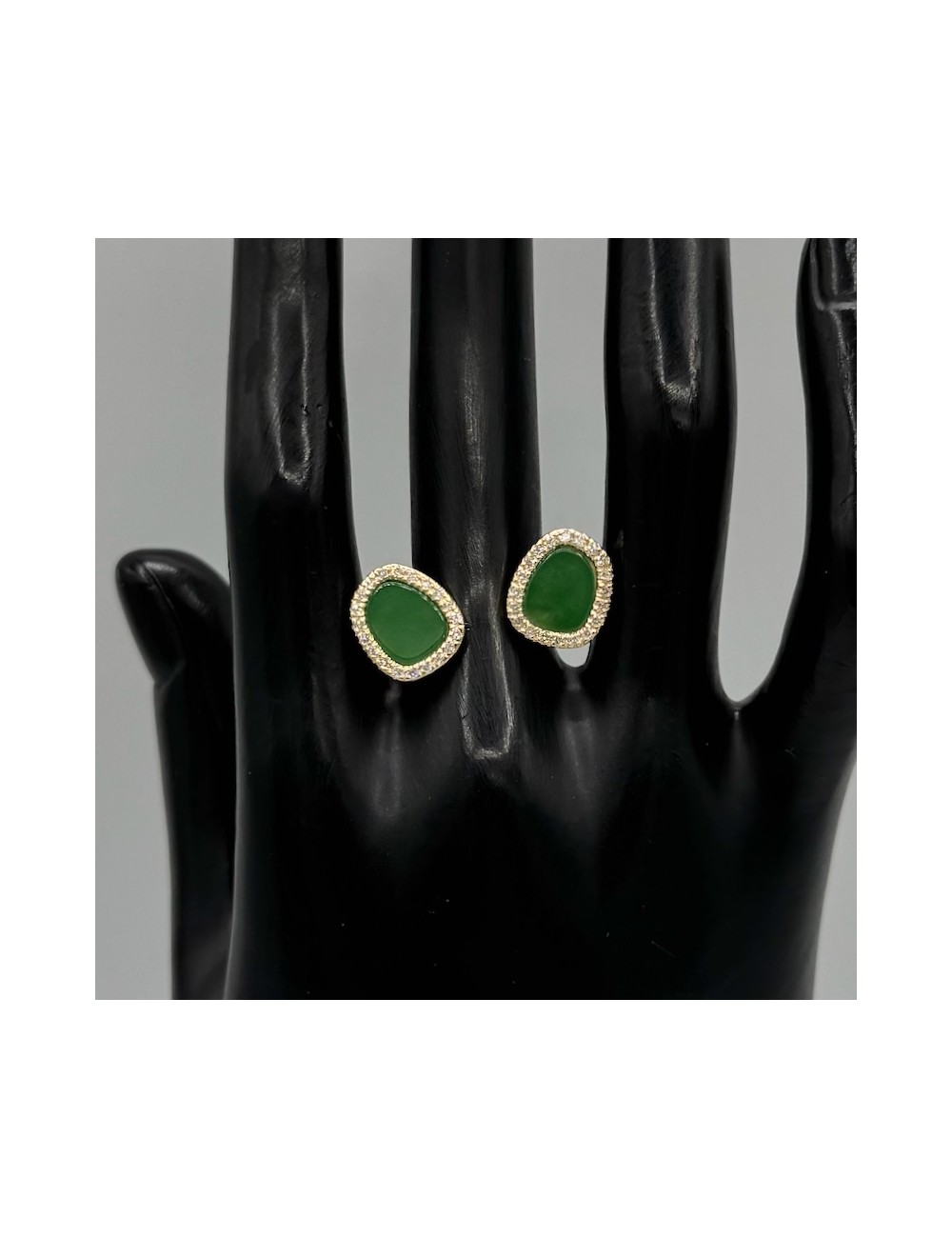 -Anello in oro giallo 9 ct.Pietra Avventurina naturale e contorno in Diamanti taglio Brillante G color ct.0,12.640€