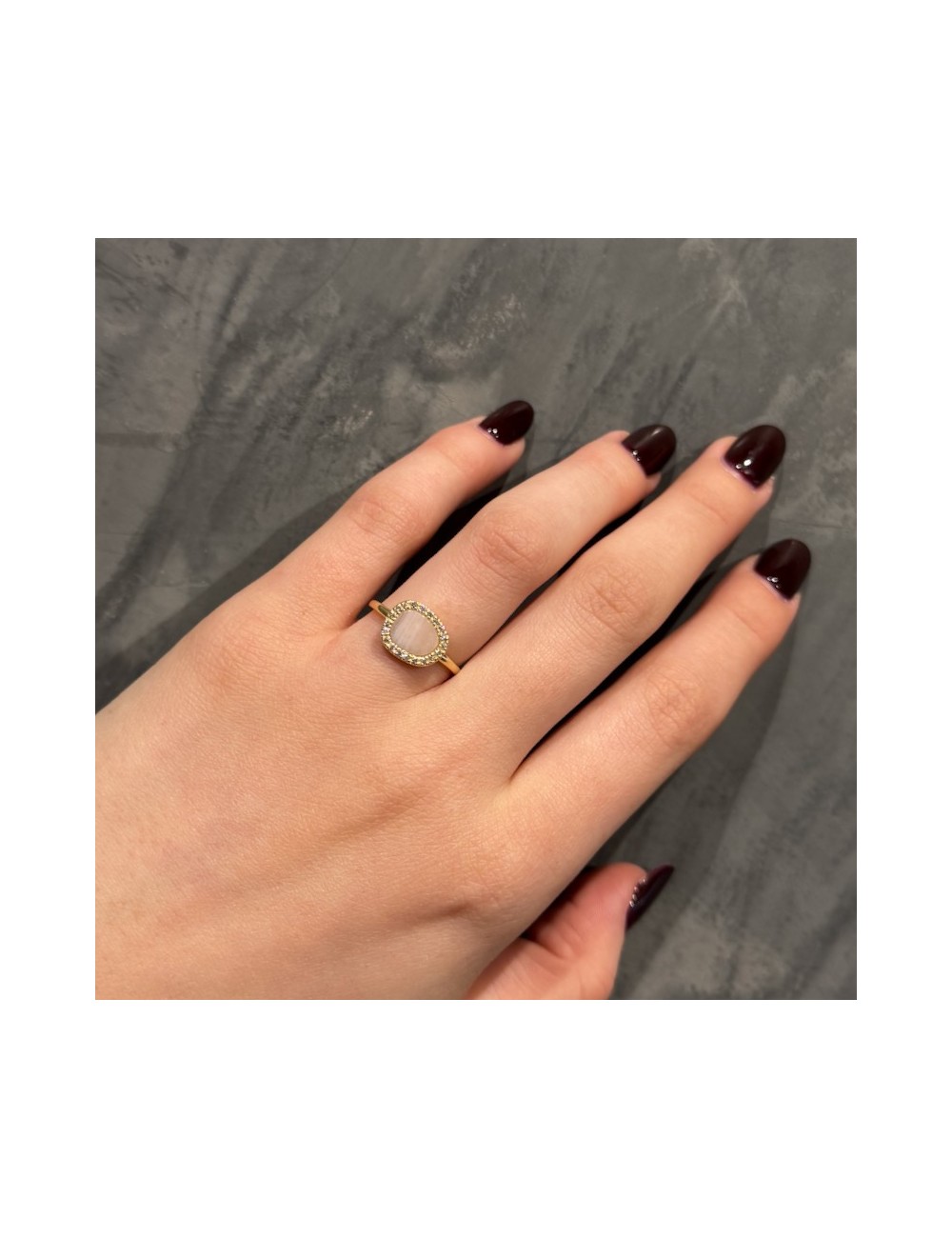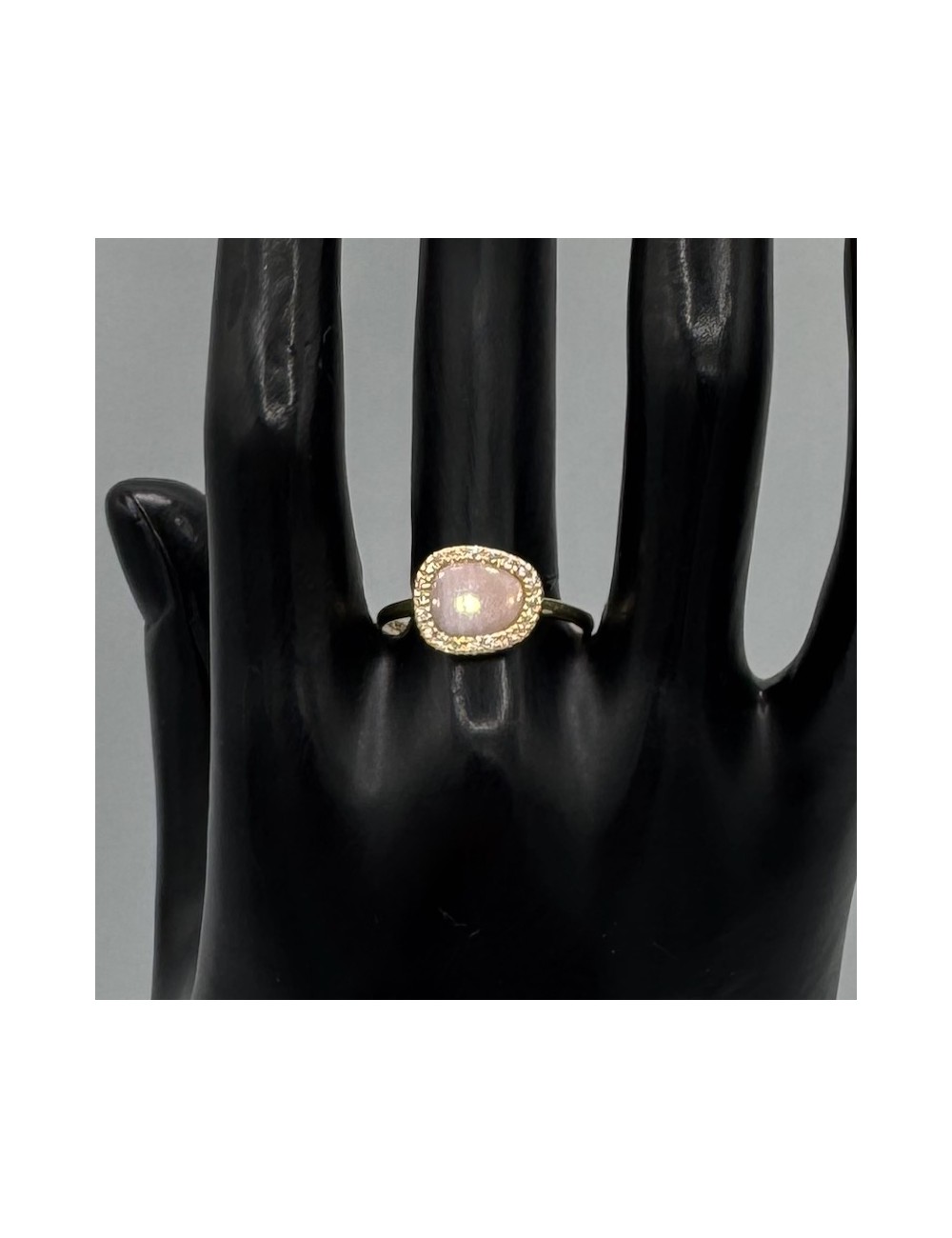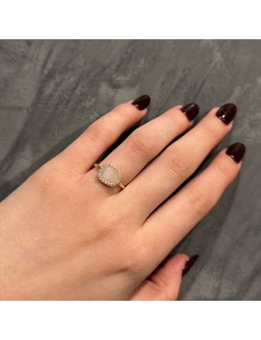 -Anello in oro giallo 9 ct.Pietra Opale naturale e contorno in Diamanti taglio Brillante G color ct.0,12.640€