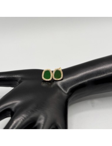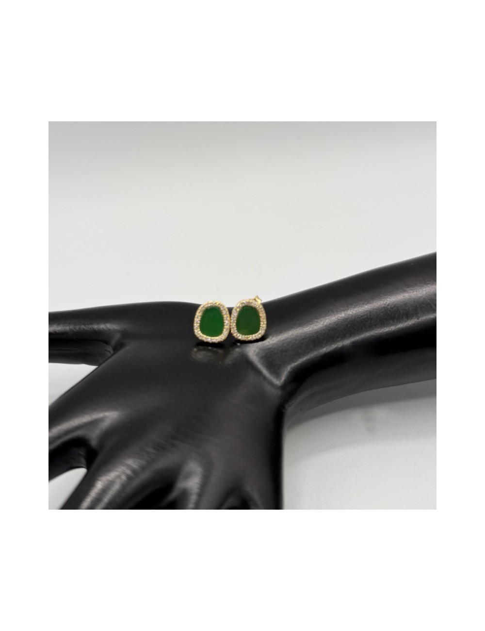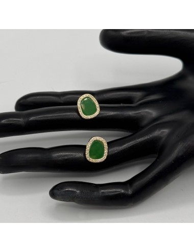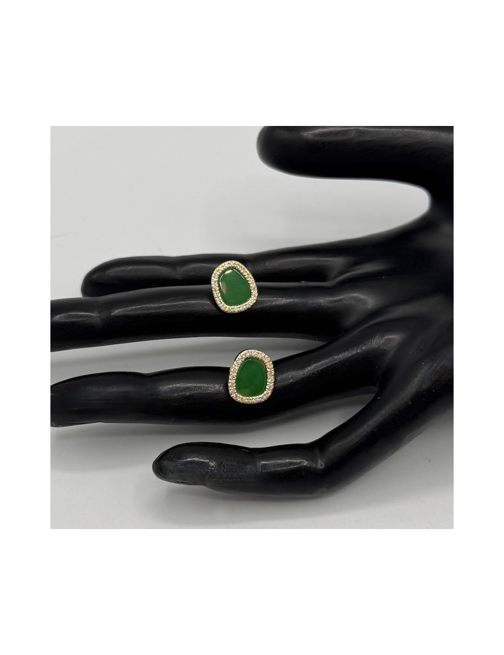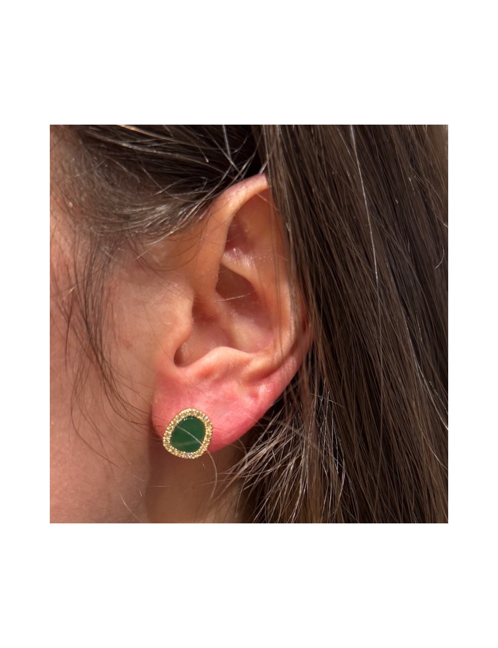 -Orecchini in oro giallo 9 ct.Pietra Avventurina naturale e contorno in Diamanti taglio Brillante G color ct.0,24.930€