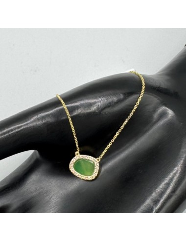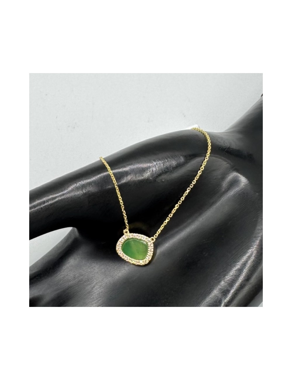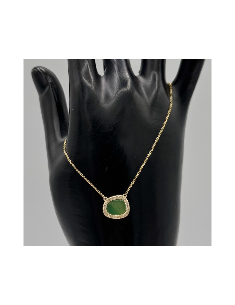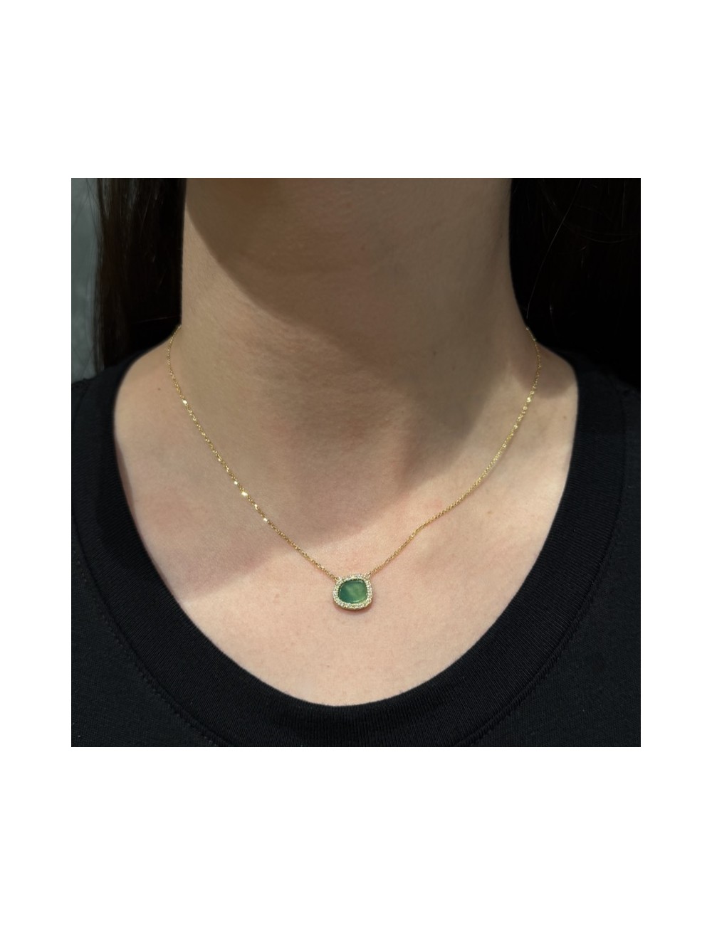 -Girocollino in oro giallo 9 ct.Pietra Avventurina naturale e contorno in Diamanti taglio Brillante G color ct.0,12.580€