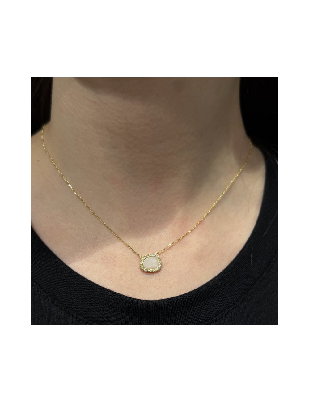 -Girocollino in oro giallo 9 ct.Pietra Opale naturale e contorno in Diamanti taglio Brillante G color ct.0,12.580€