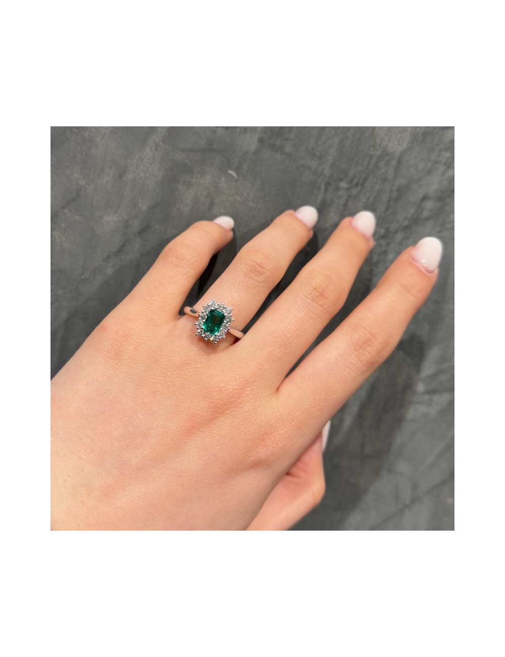 Anello in oro bianco con Smeraldo e Diamanti