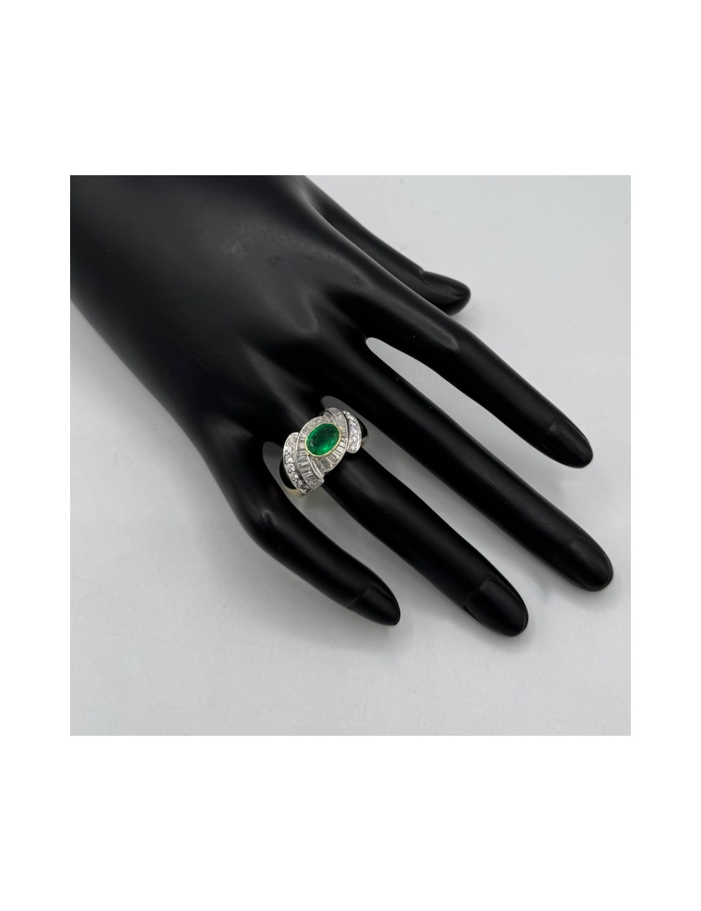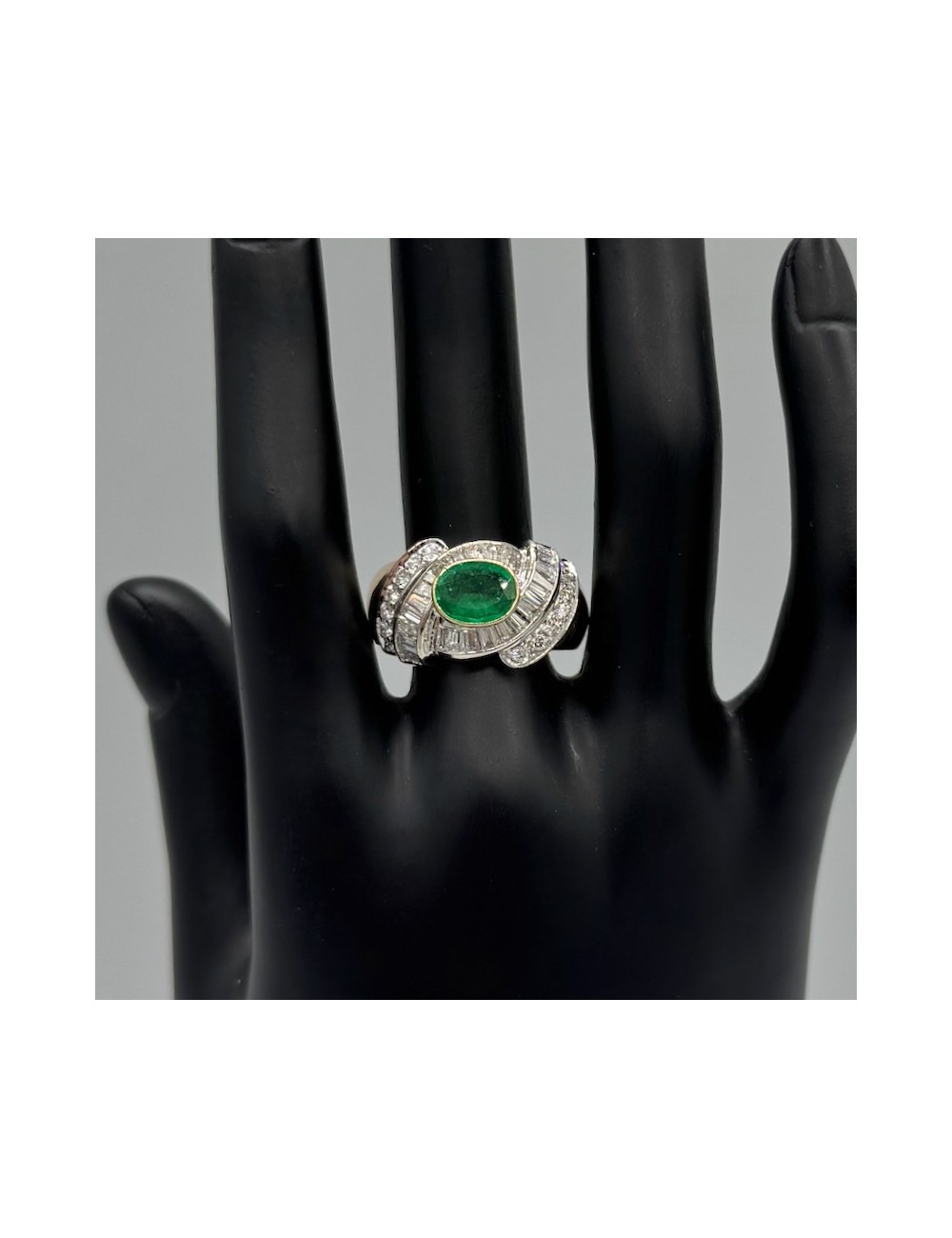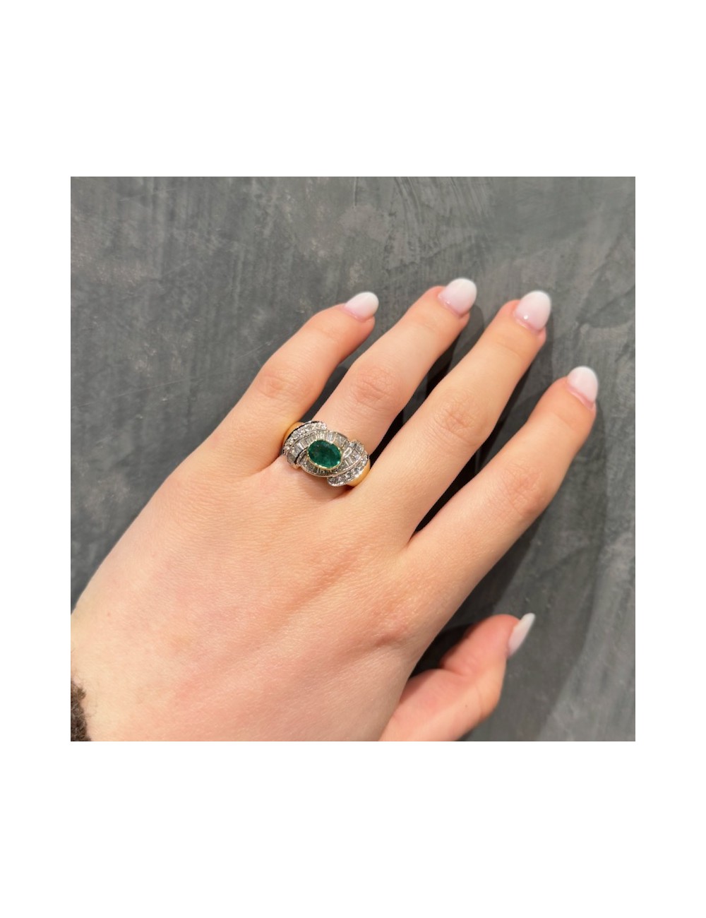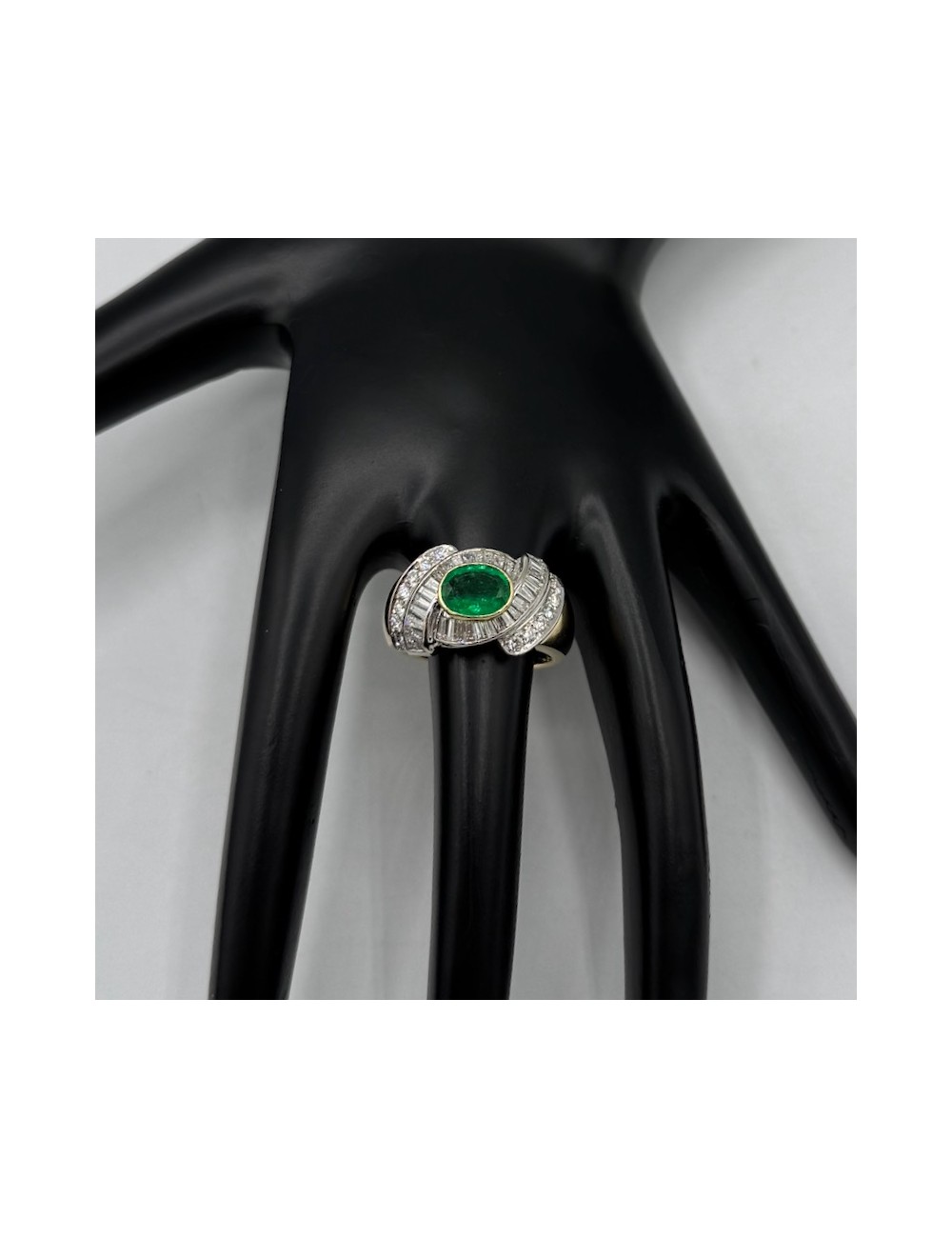 Anello in oro giallo con uno Smeraldo naturale provenienza "Columbia" taglio ovale caratura ipotetica 1,30.