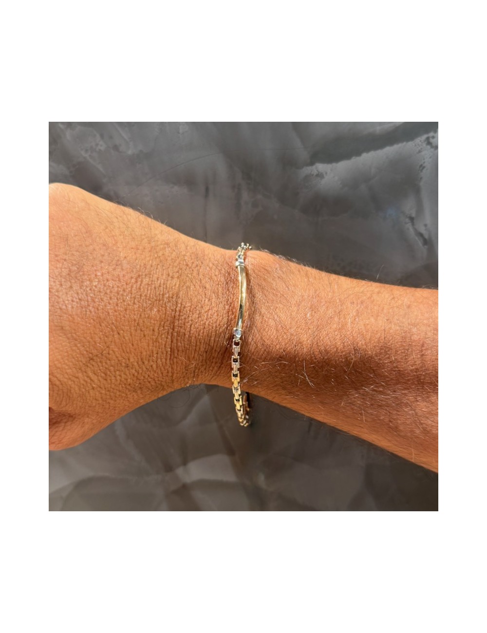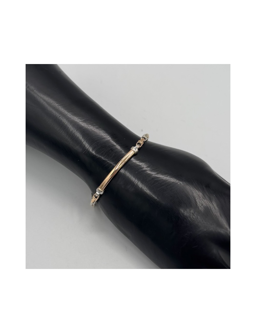 Bracciale da uomo in oro rosa e bianco con maglia "design".