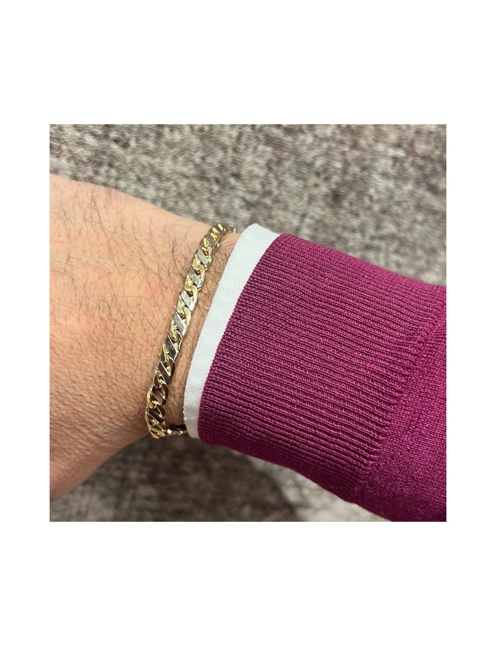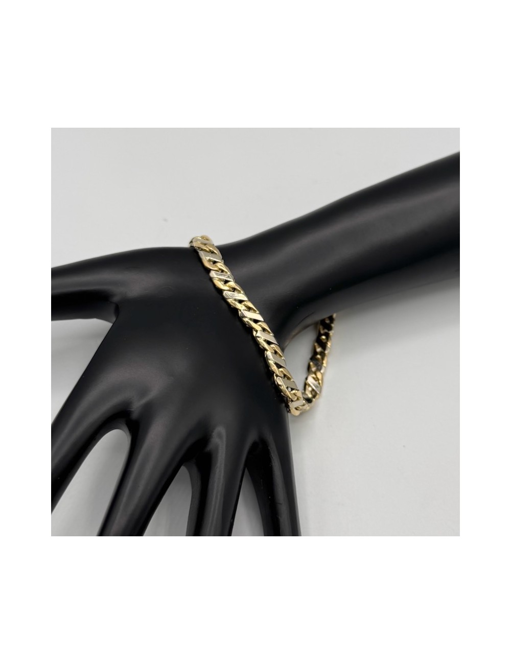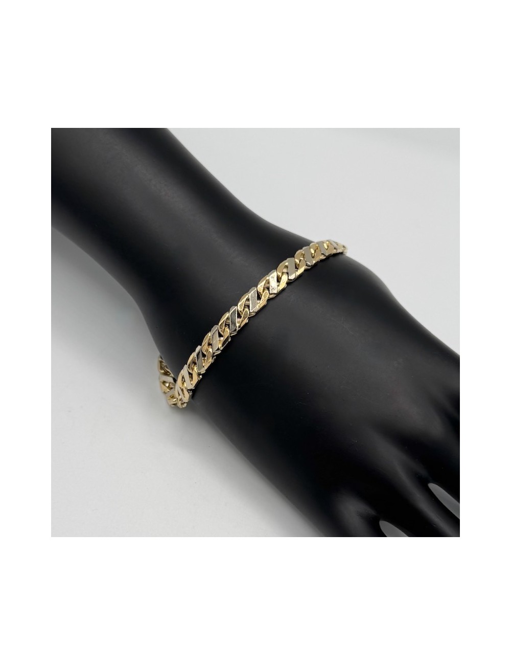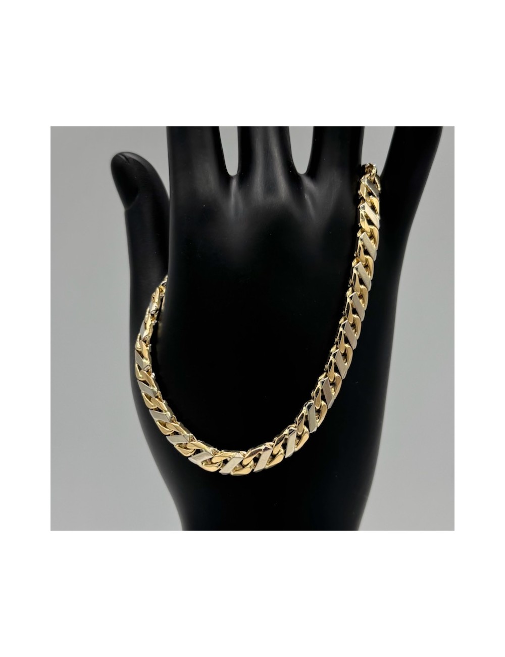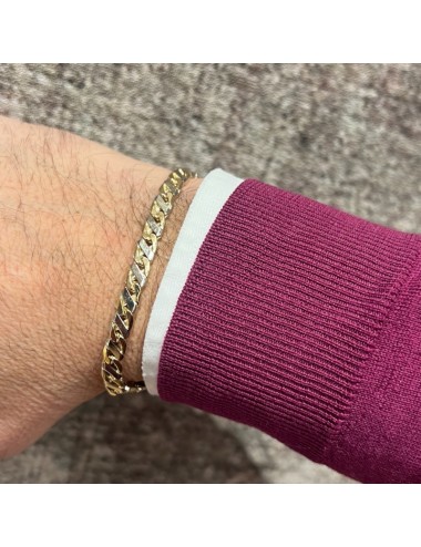 Bracciale in oro bianco e giallo con maglia "piatta massiccia".