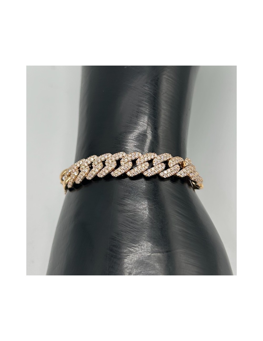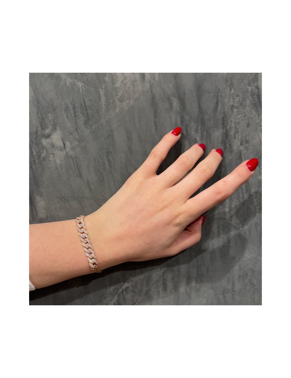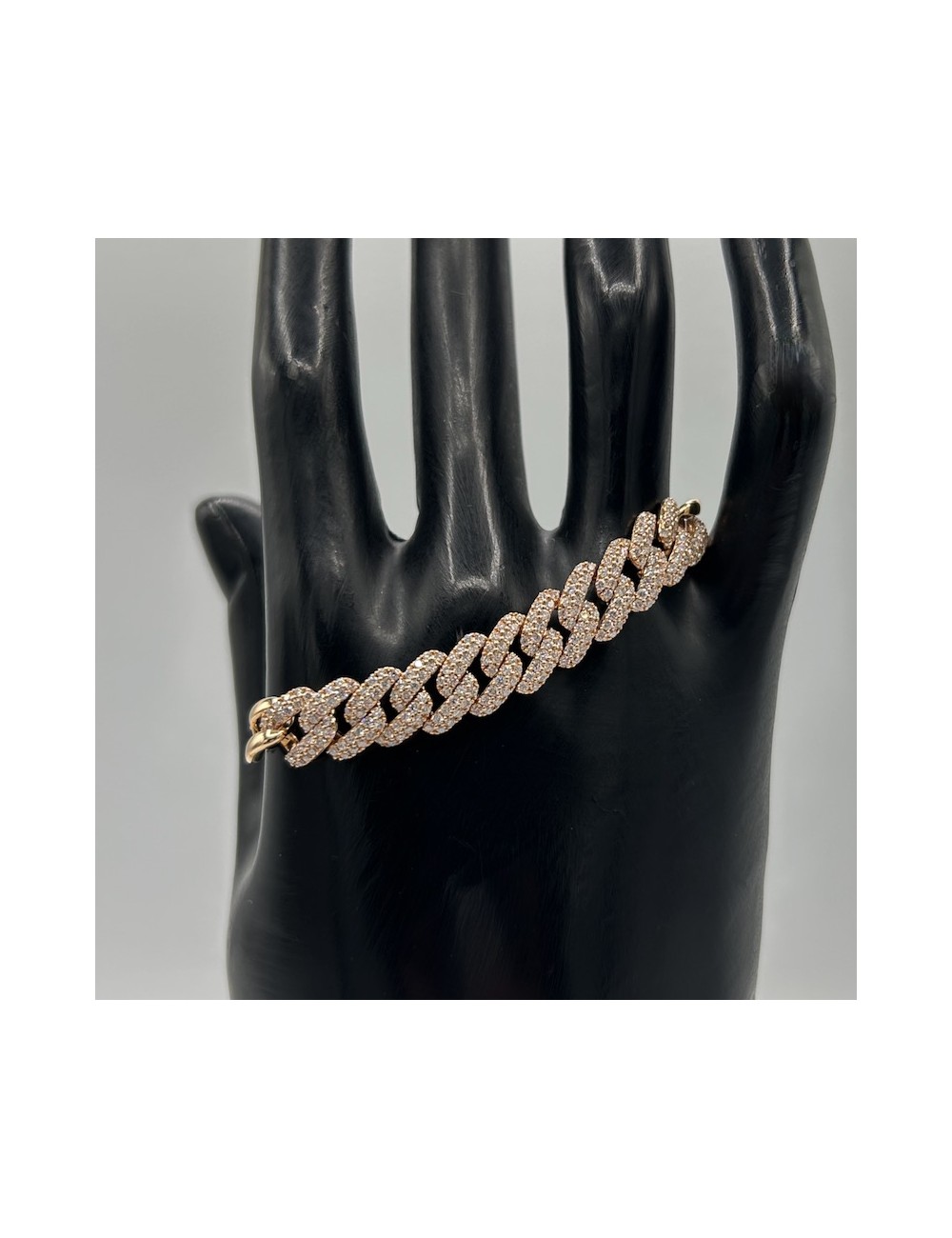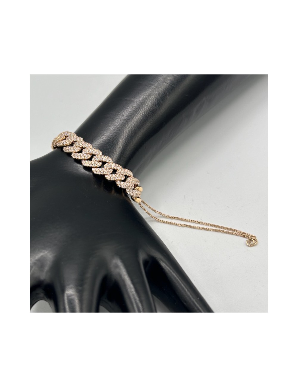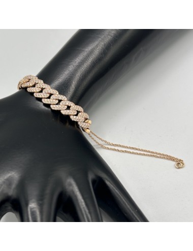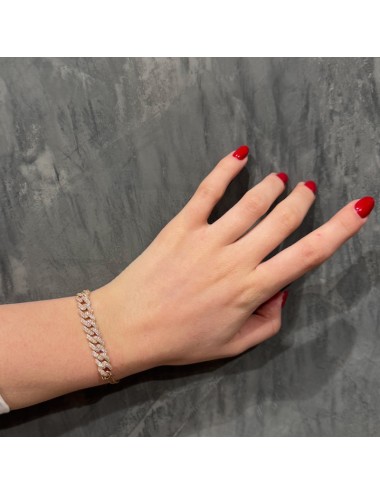 Bracciale in oro rosa con maglia Groumette centrale e maglia quadra a terminare lo stesso.