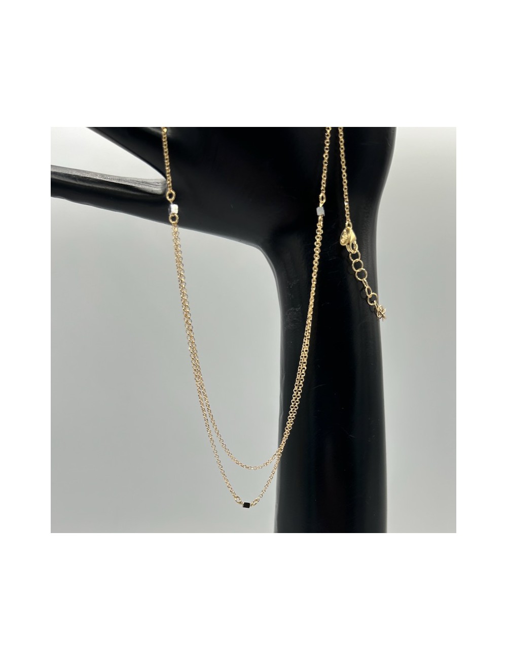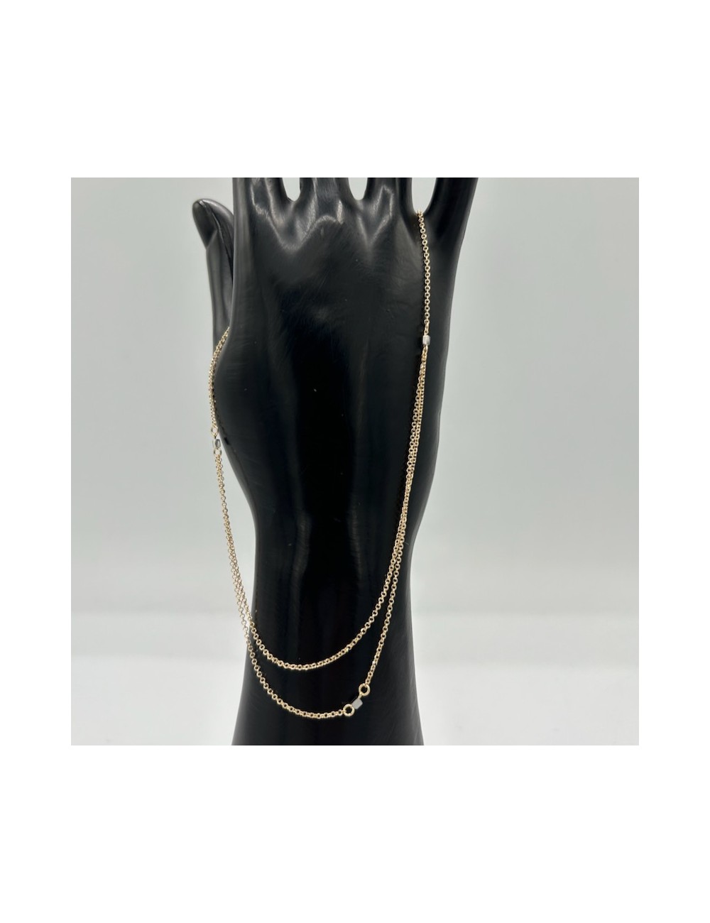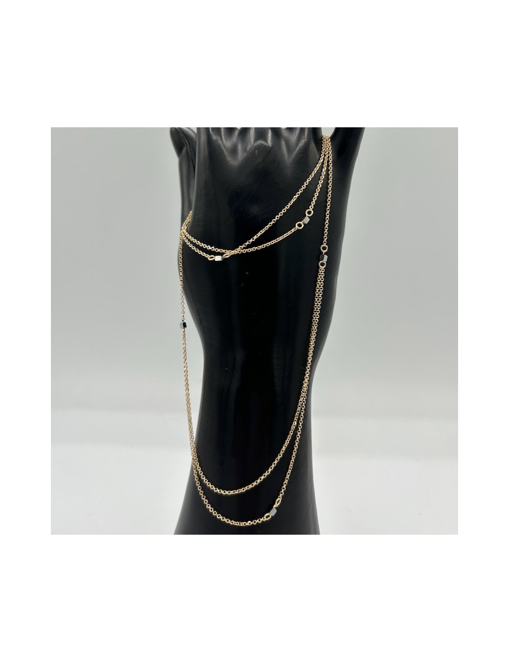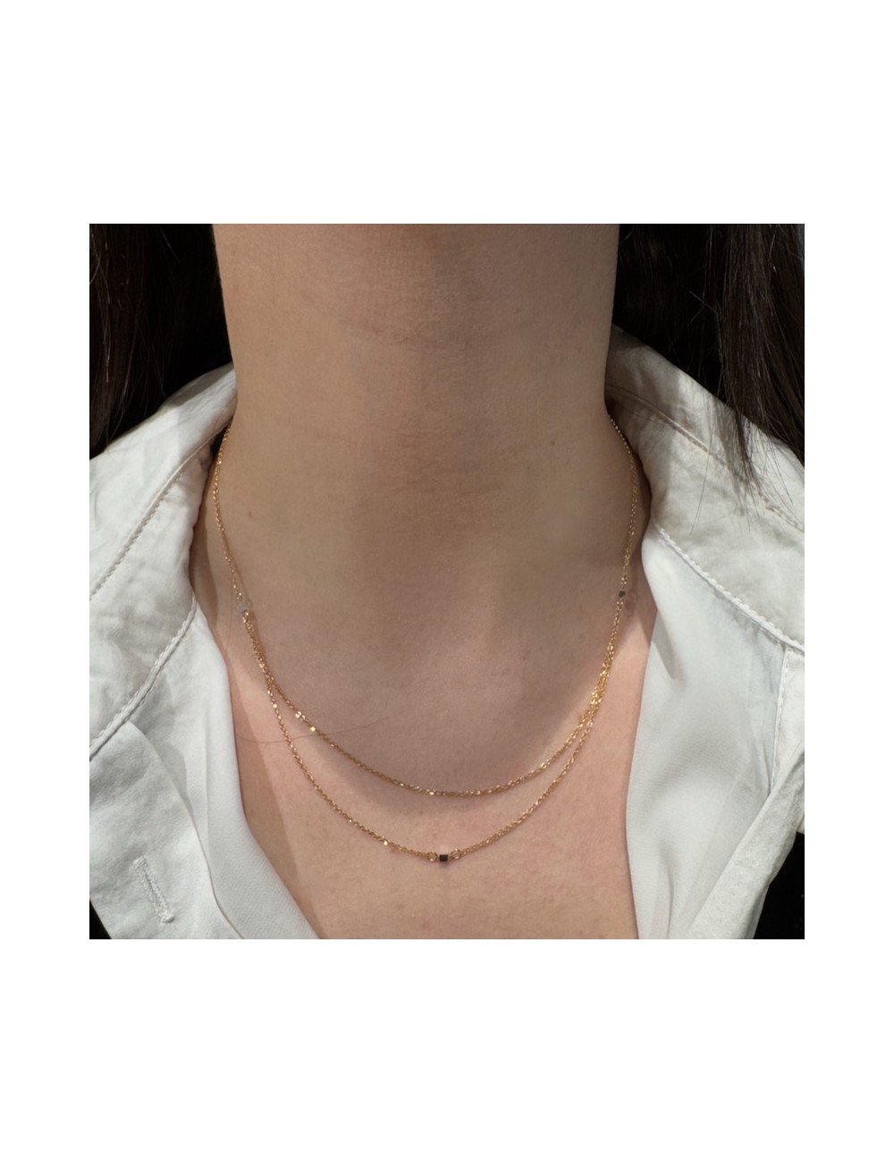 Doppia catena sul davanti intervallata da piccoli cubetti in oro bianco.