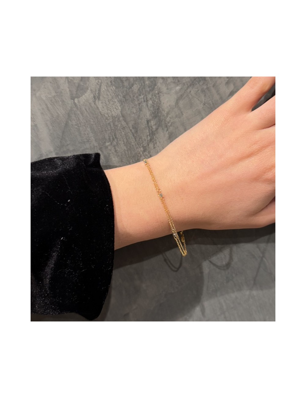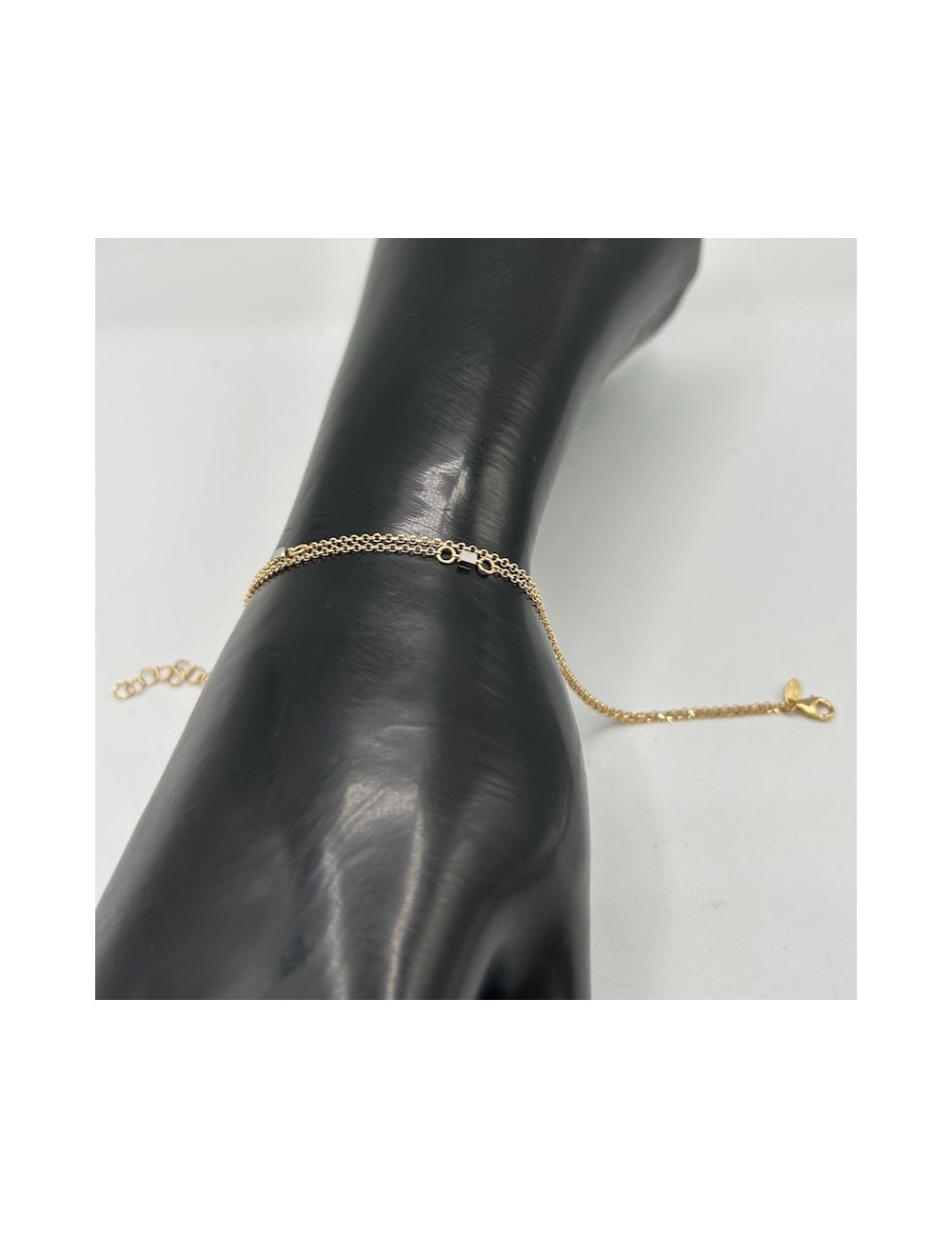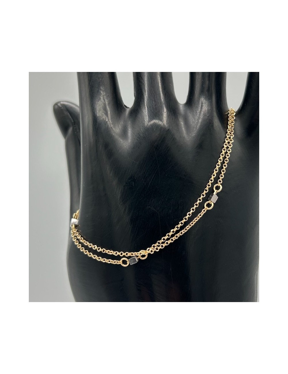 Girocollo e bracciale in oro giallo con maglia "diamantata".