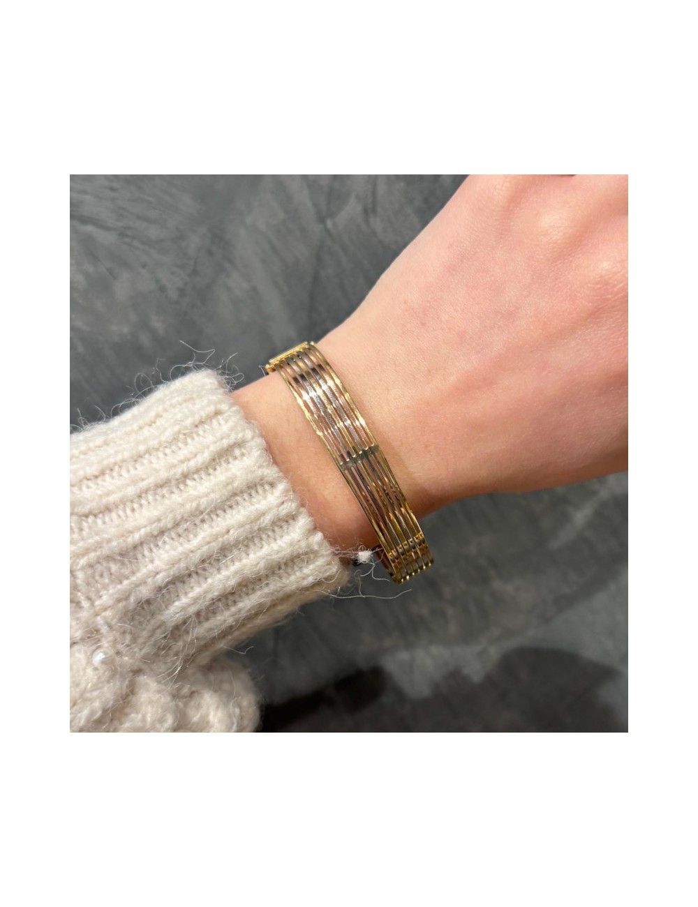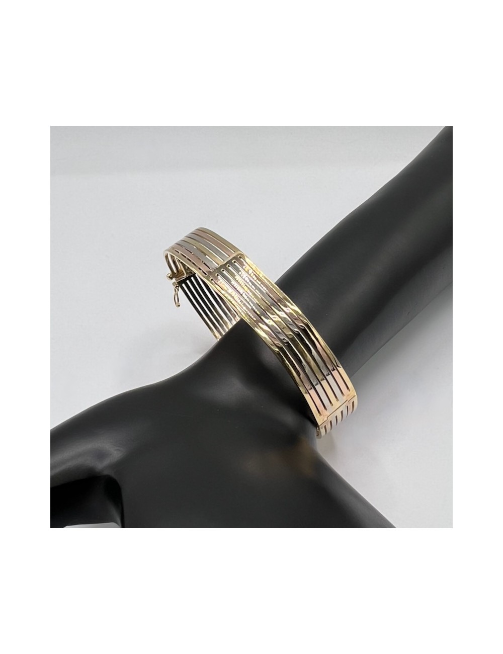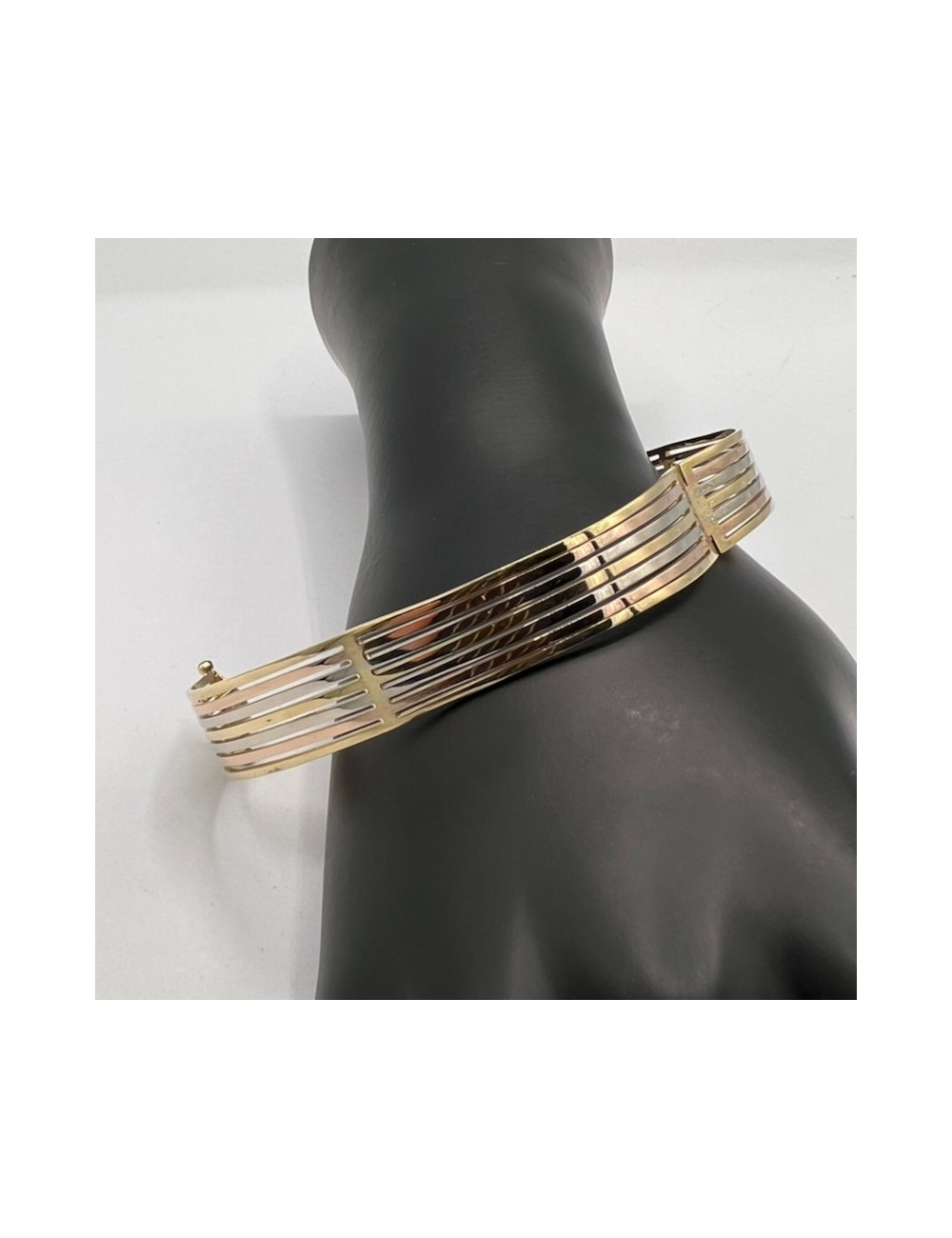 Bracciale rigido in oro bianco,giallo e rosa.