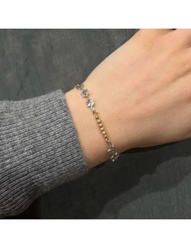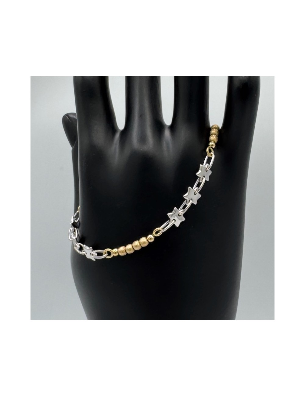 Bracciale in oro giallo con sfere Diamantate e stelle in oro bianco alternate.