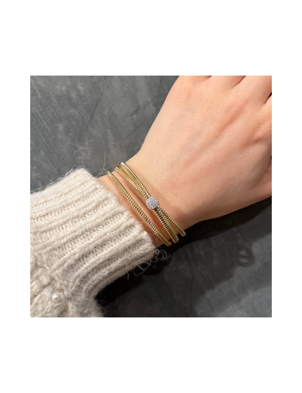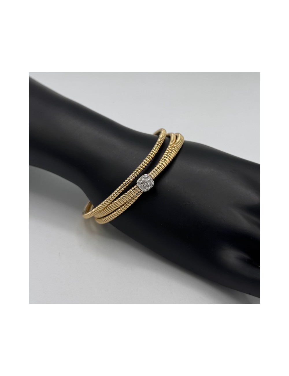 Bracciale modello "Tubogas" in oro giallo con maglia piatta a 3 giri.