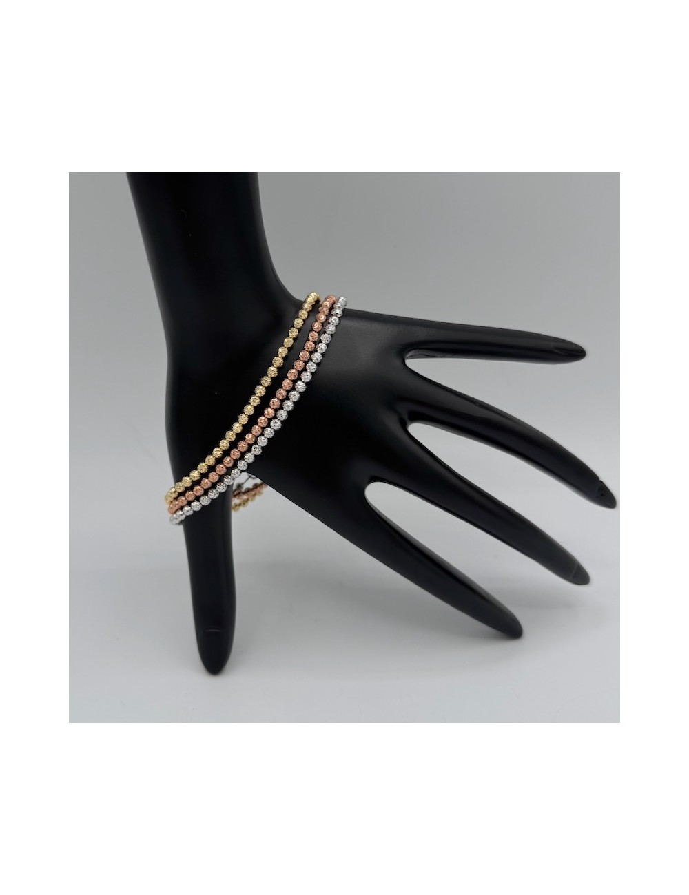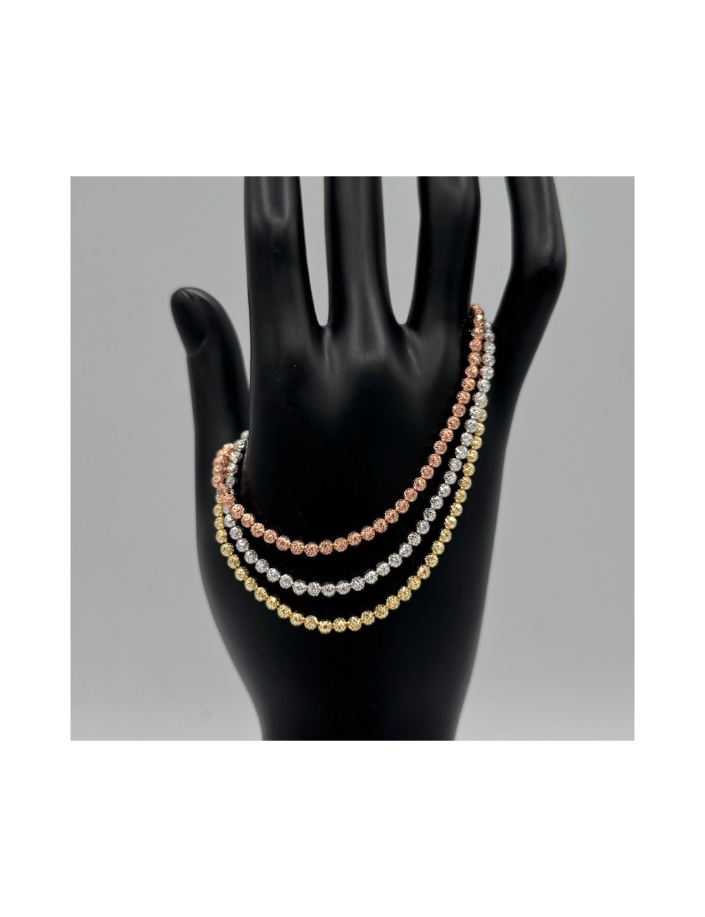 Bracciali in oro bianco,giallo o rosa con lavorazione "Diamantata" che restituisce grande luminosità.