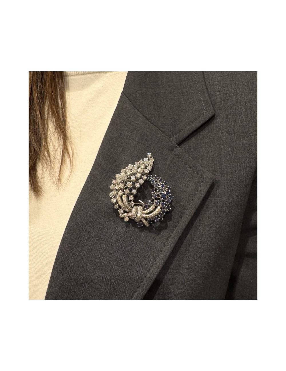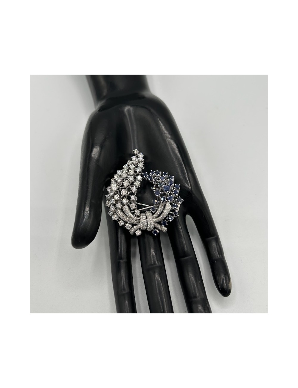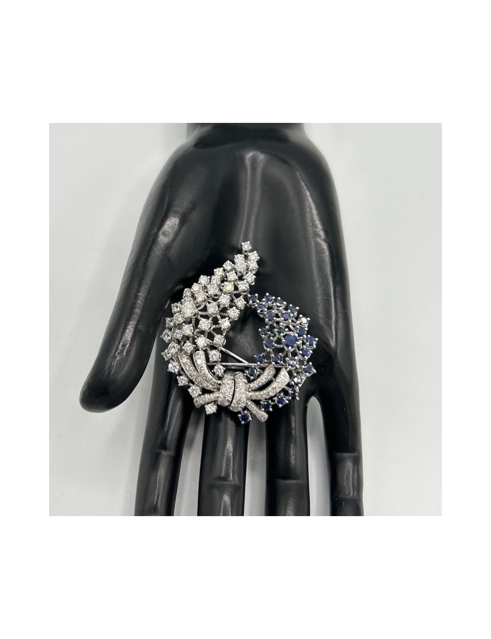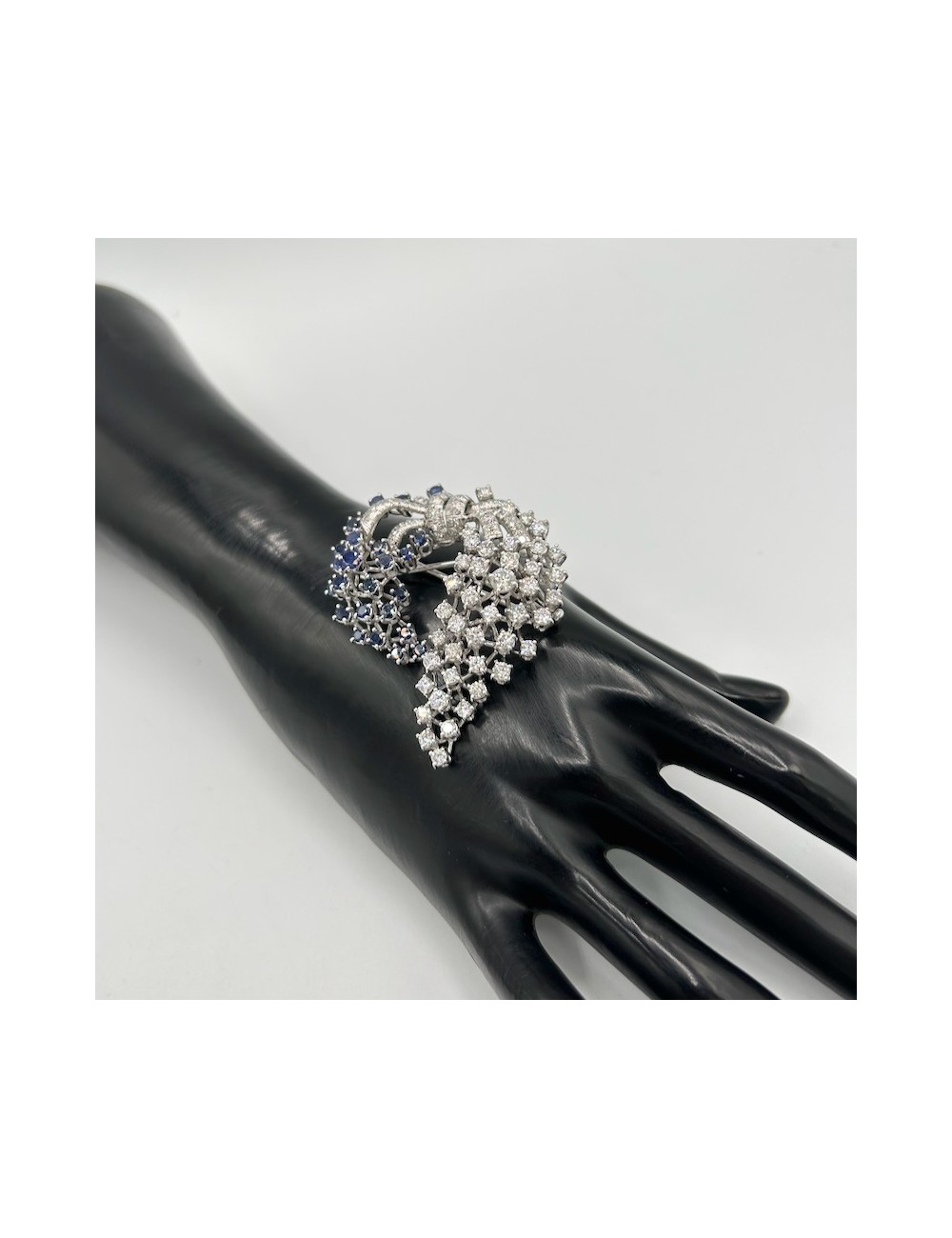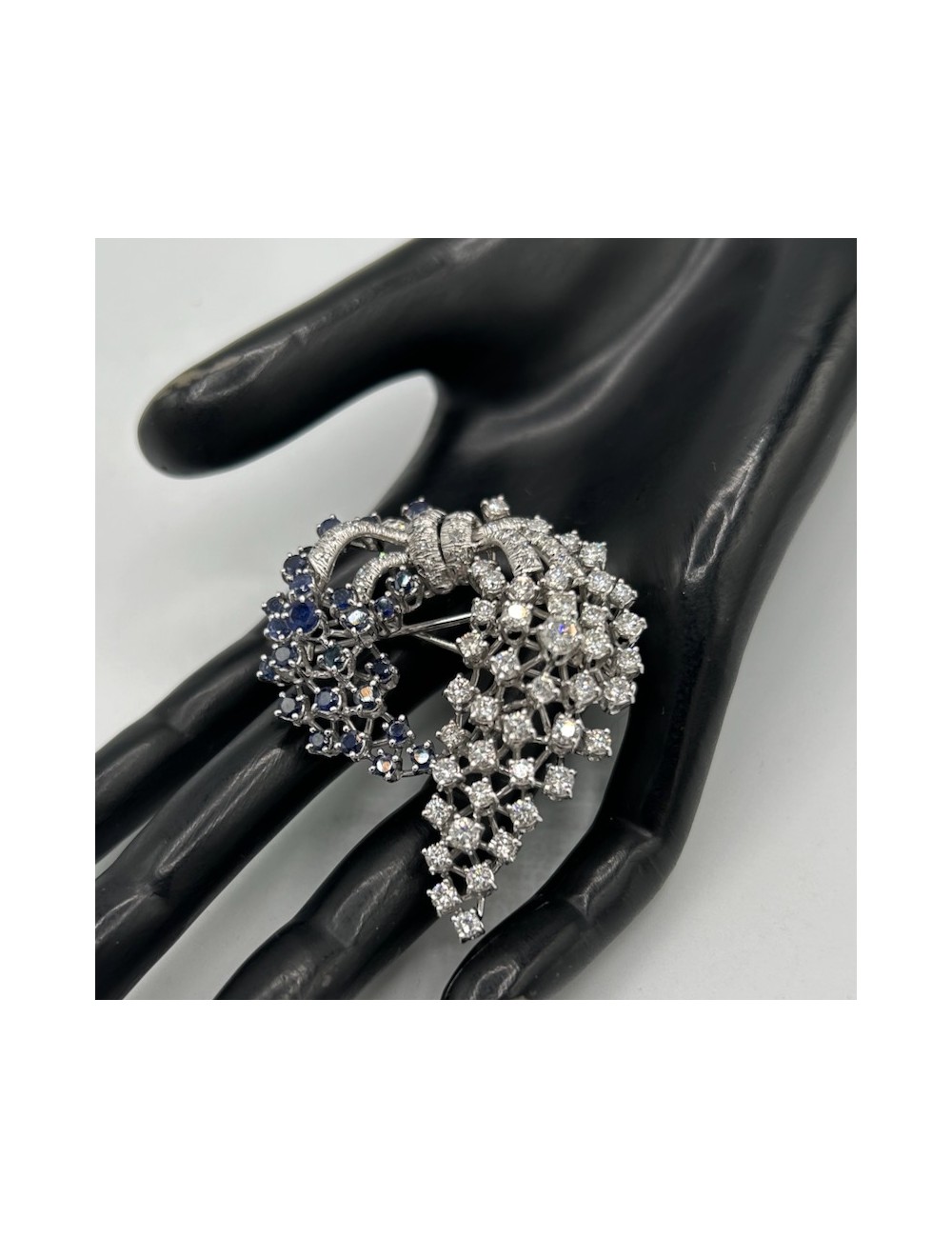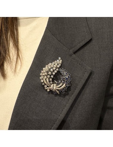 Spilla vintage in oro bianco di forma "cascata floreale".