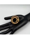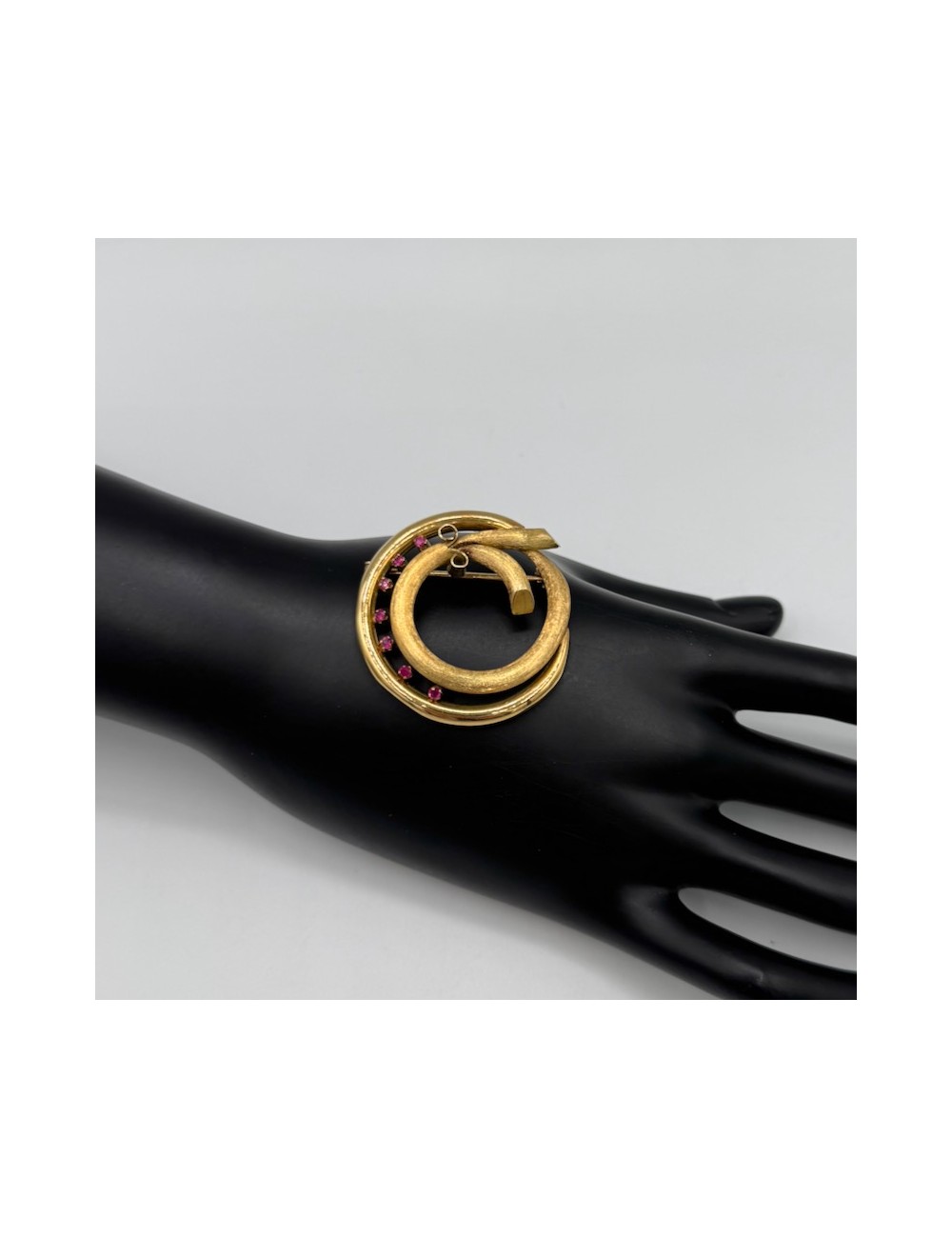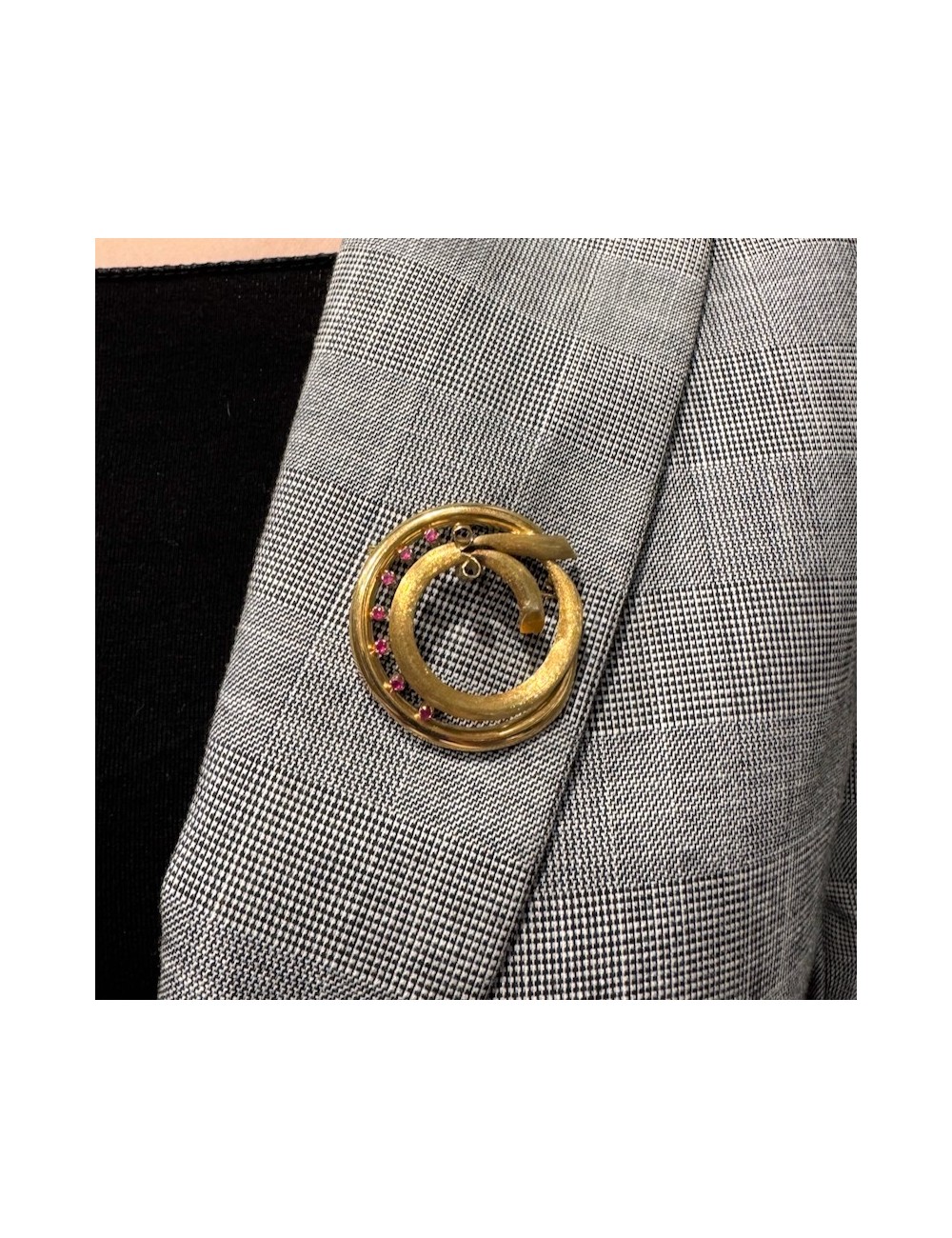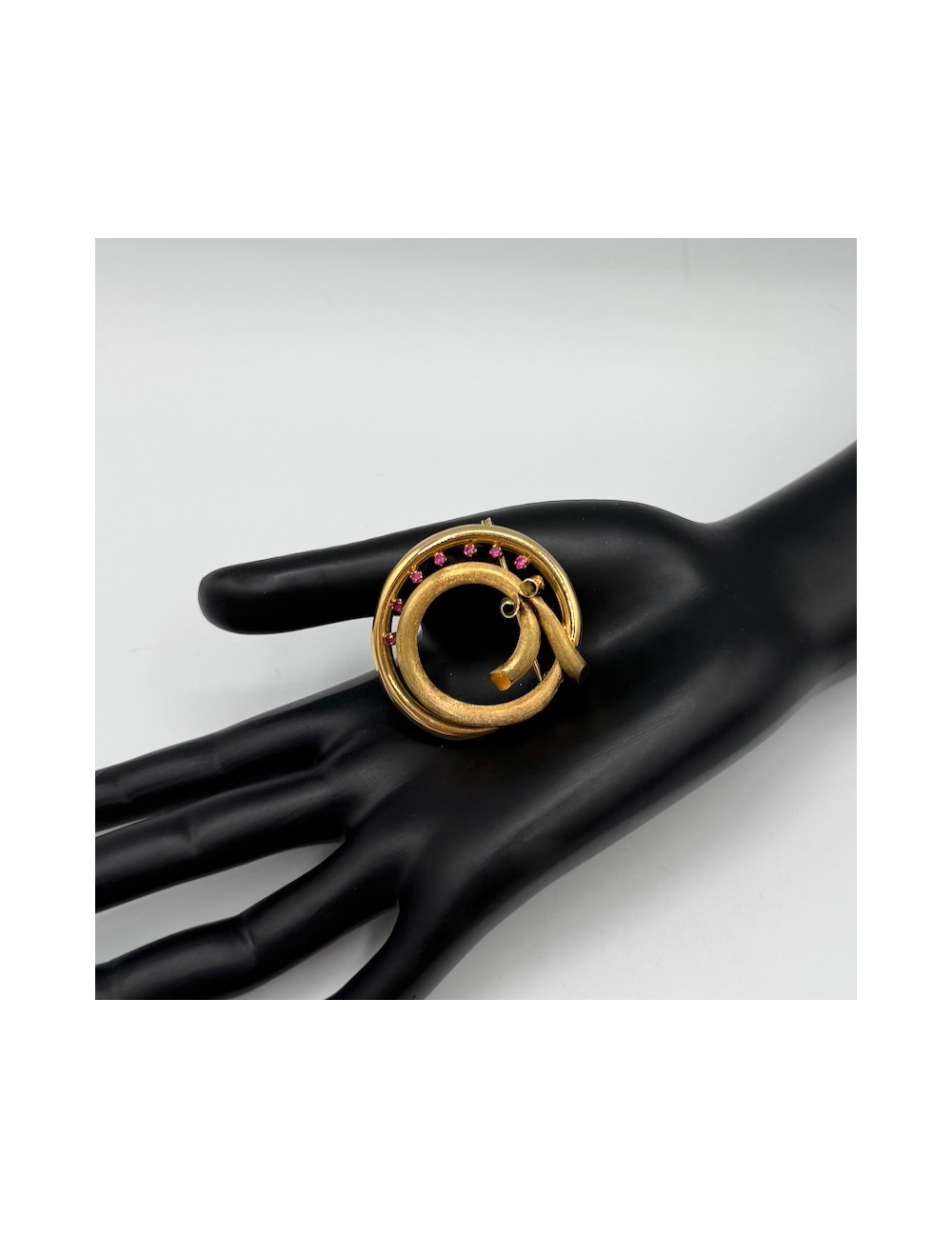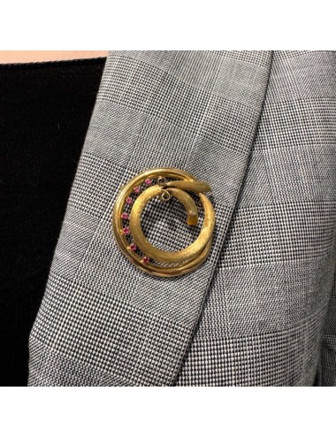 Spilla in oro giallo di forma "circolare moderna" con lavorazione satinata.