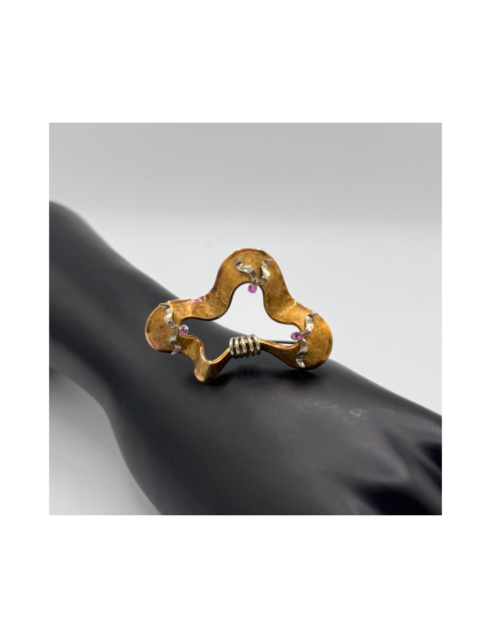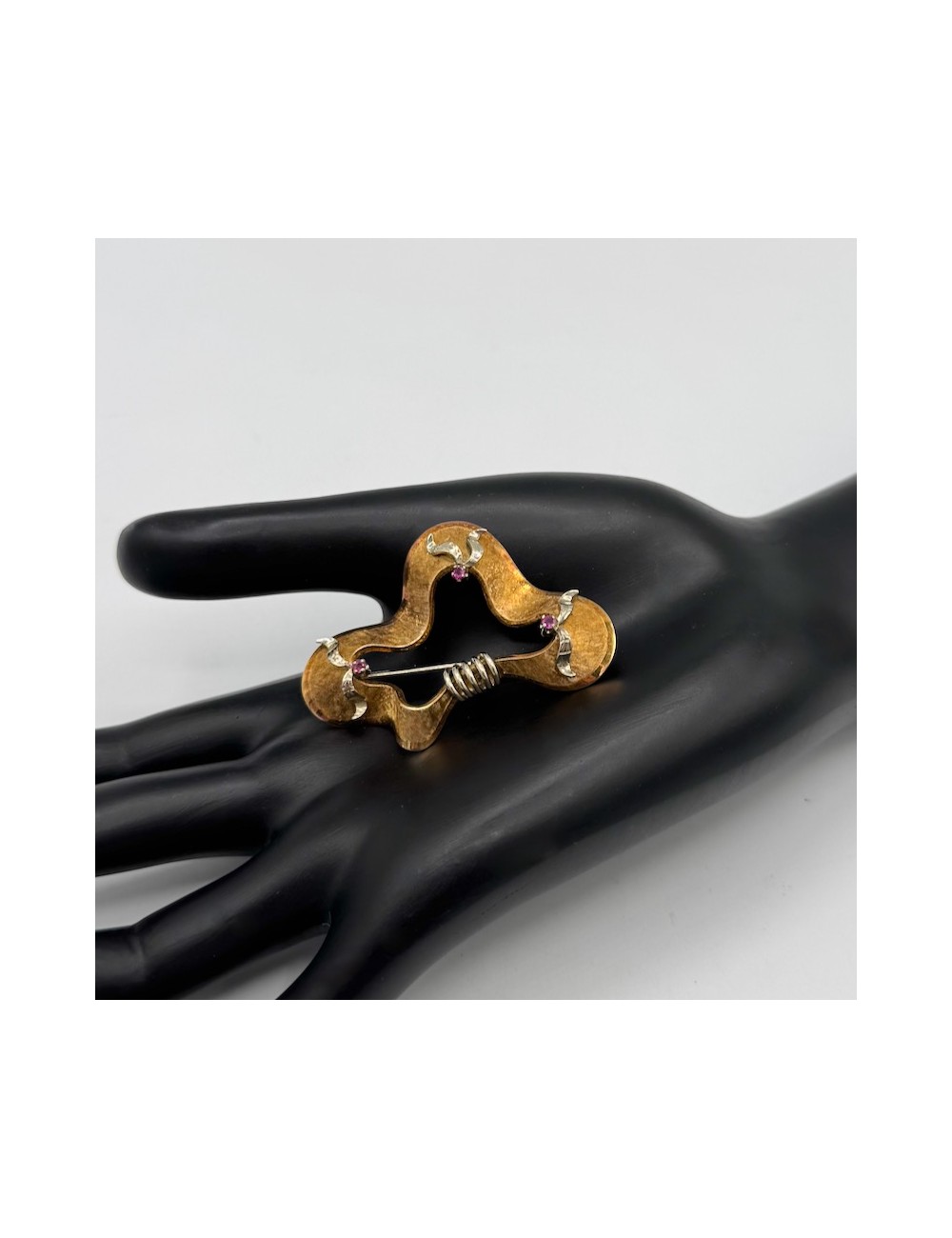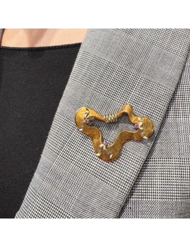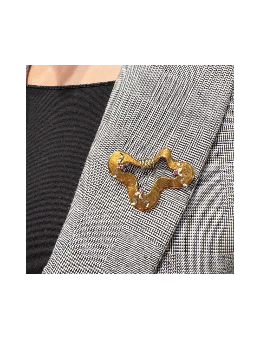 Spilla in oro giallo e bianco di forma "ondulata" e con lavorazione satinata.