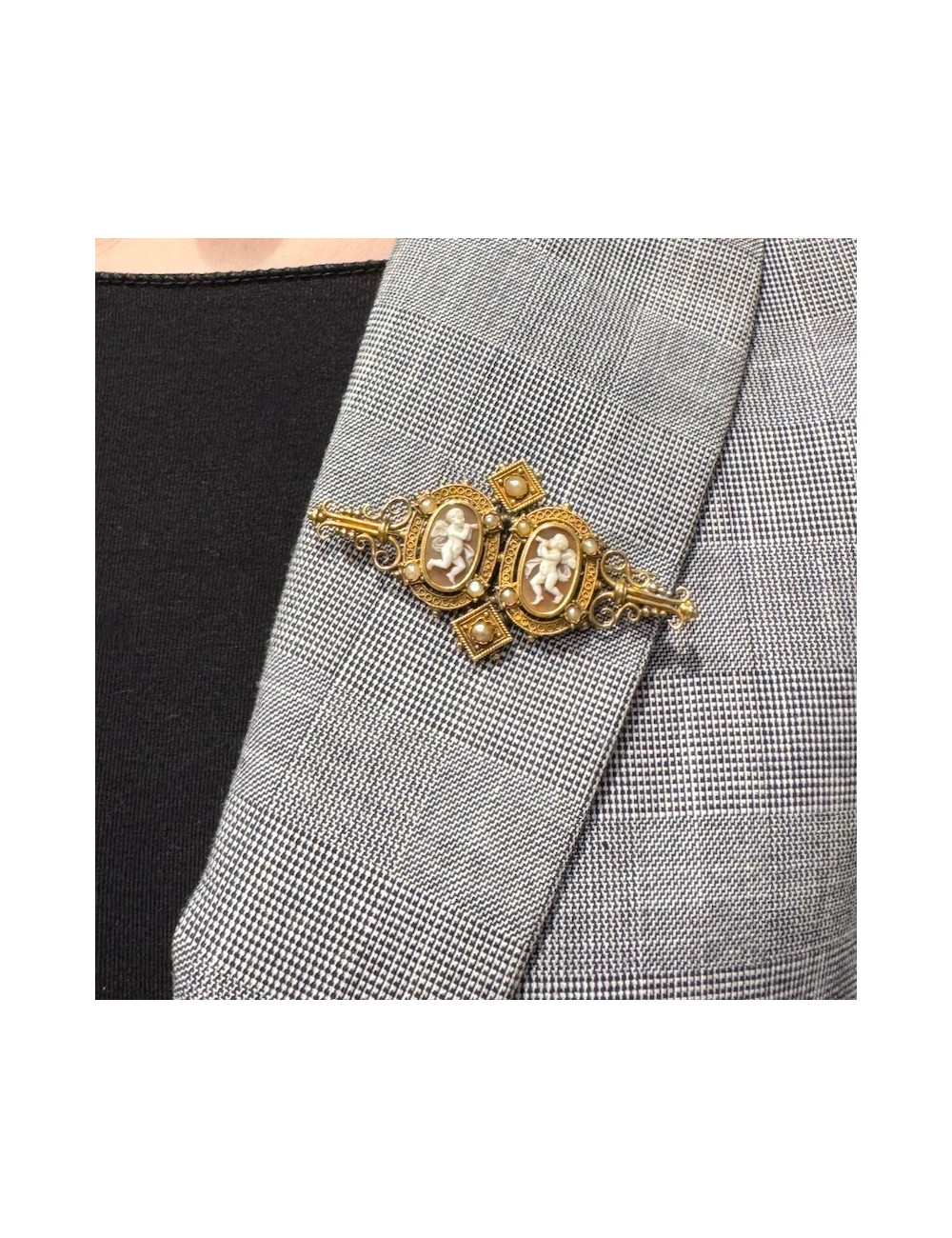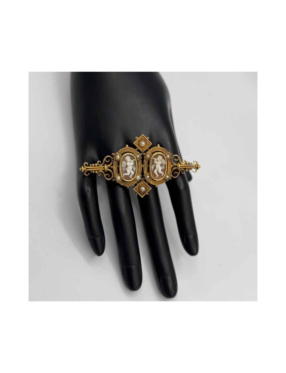 Perle inserite irregolarmente e 2 Cammei con Angeli nella parte centrale.