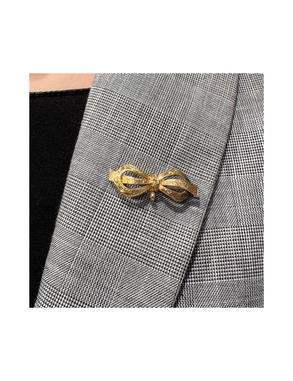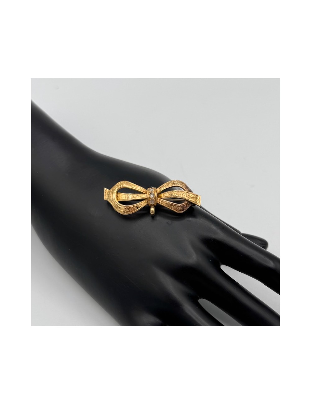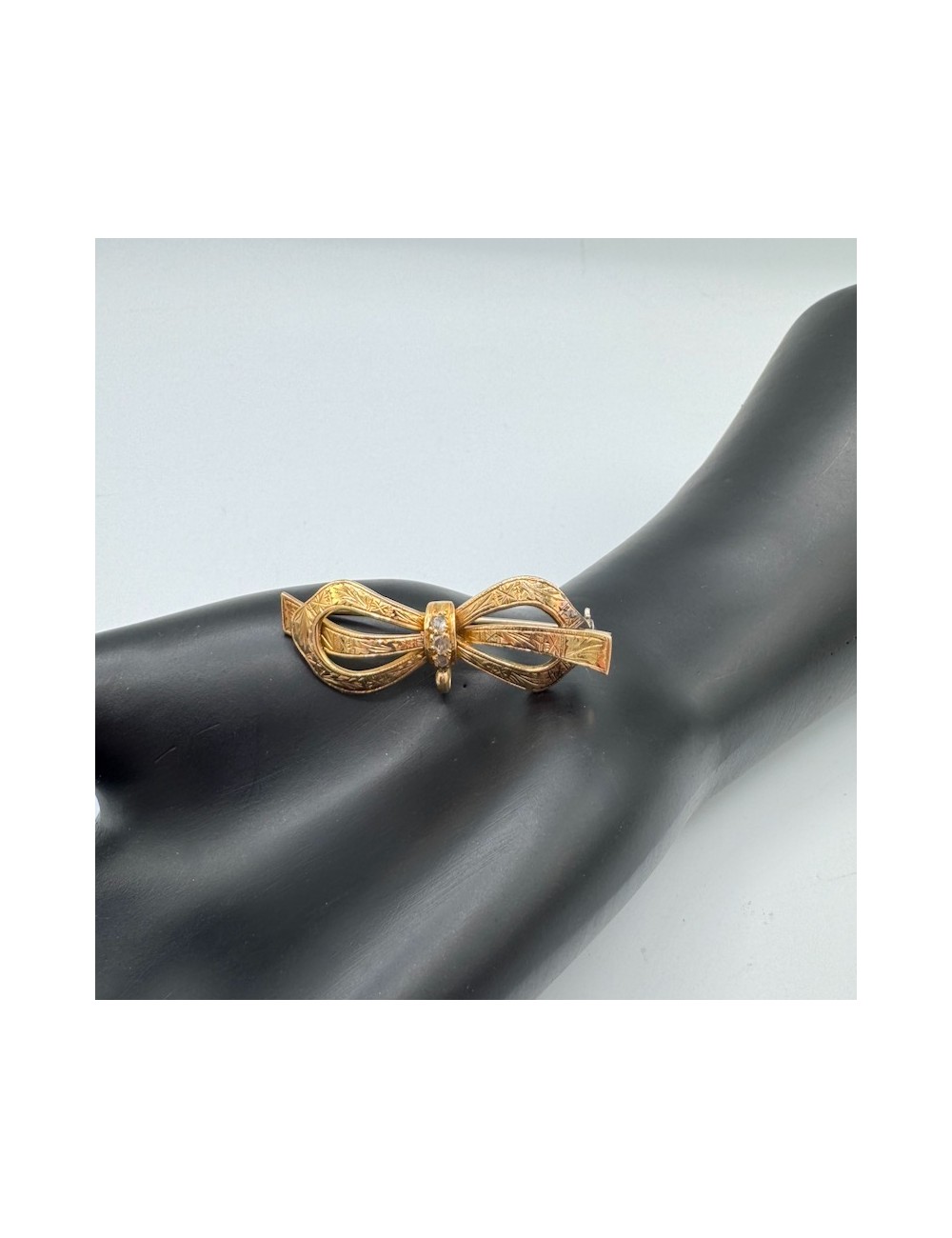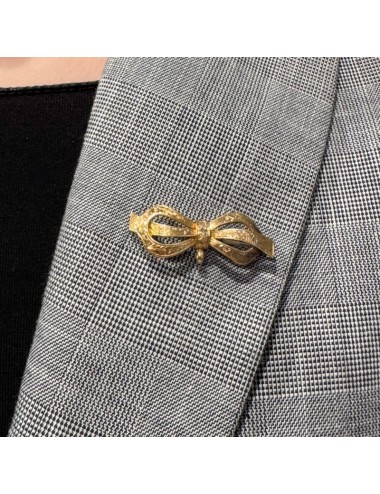 Spilla antica in oro rosa di forma "fiocco" con lavorazione "barocca incisa".