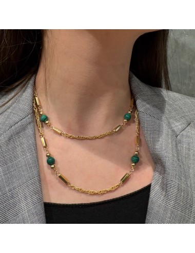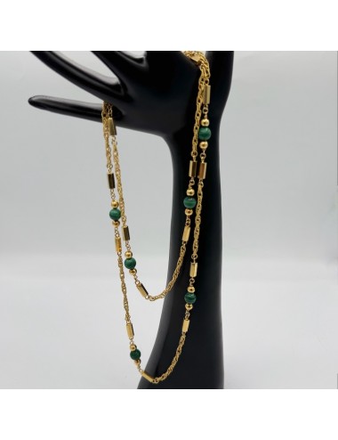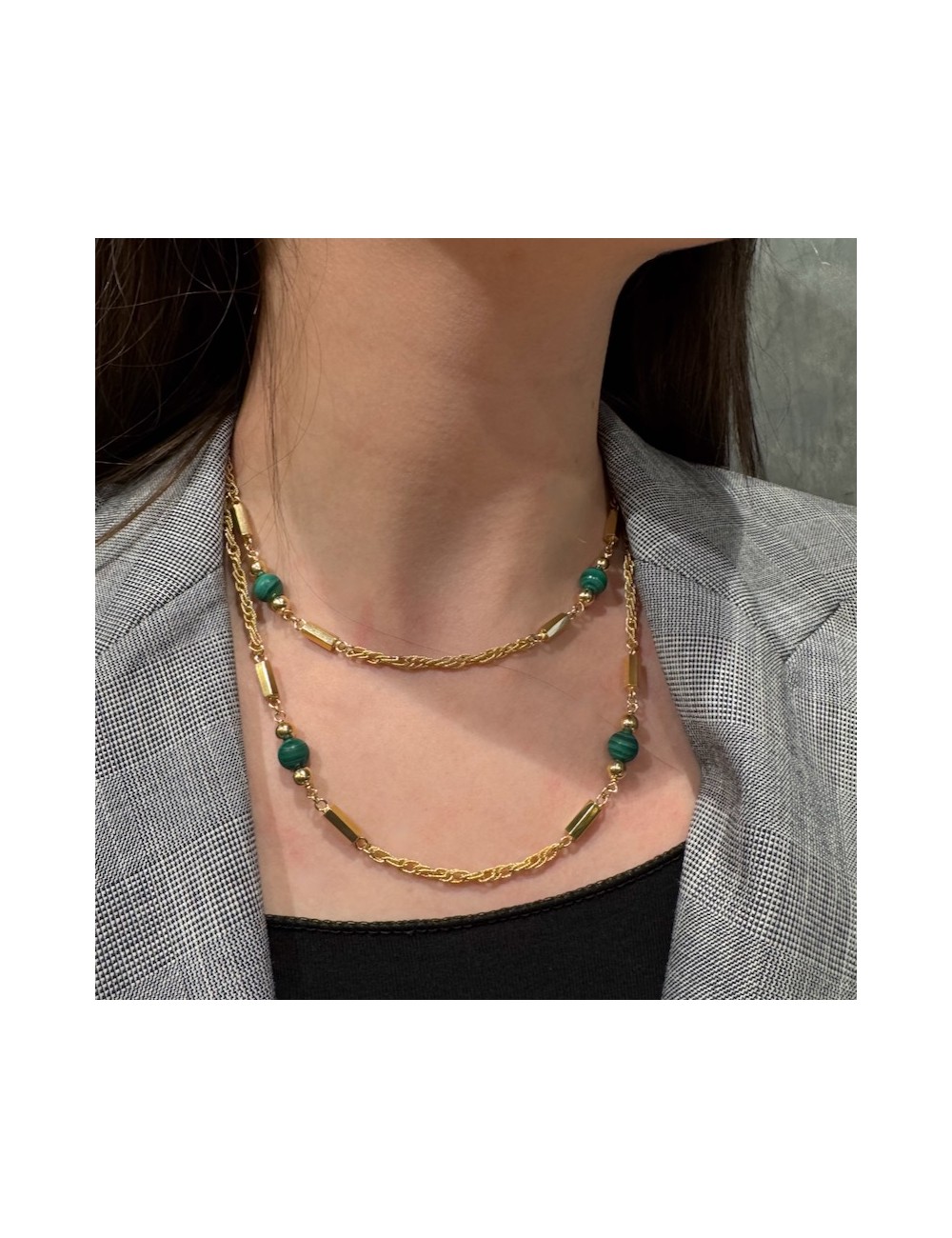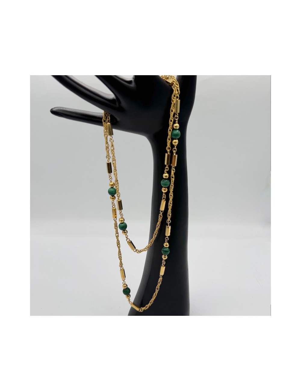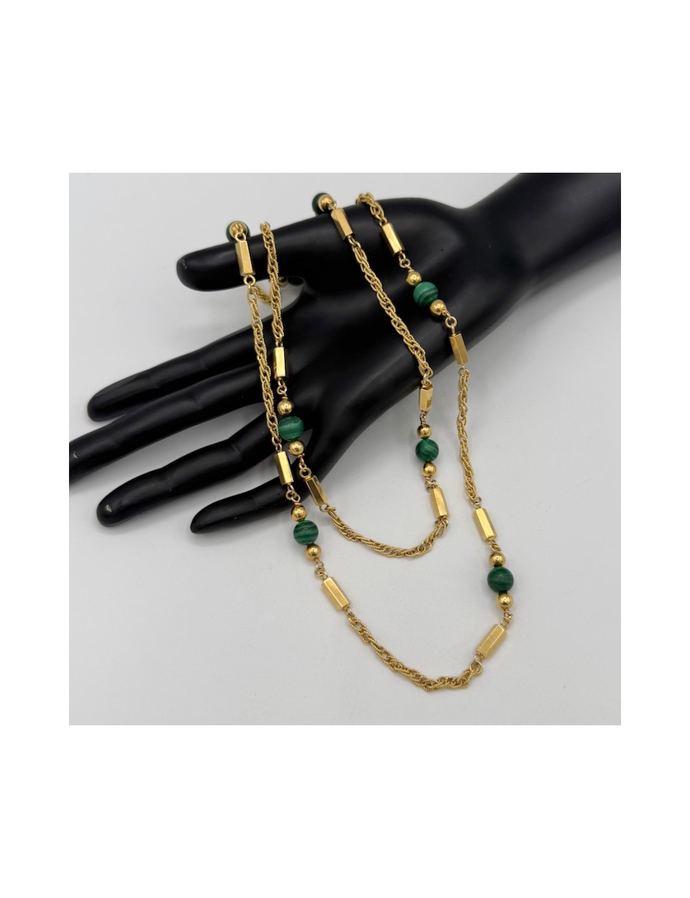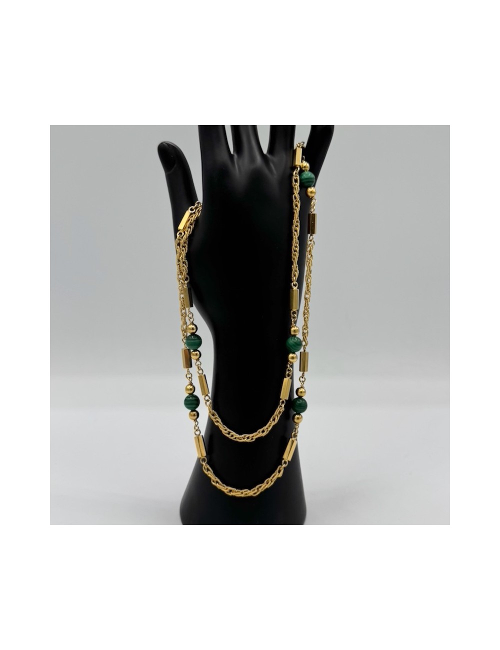 Collana lunga in oro giallo con maglia "intrecciata" alternata a "bariletti".
