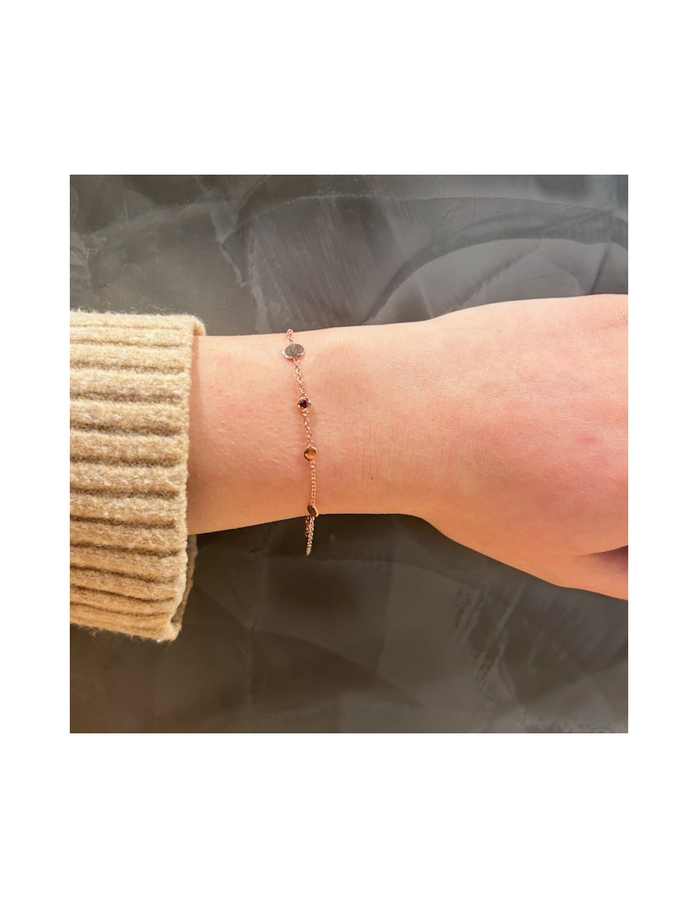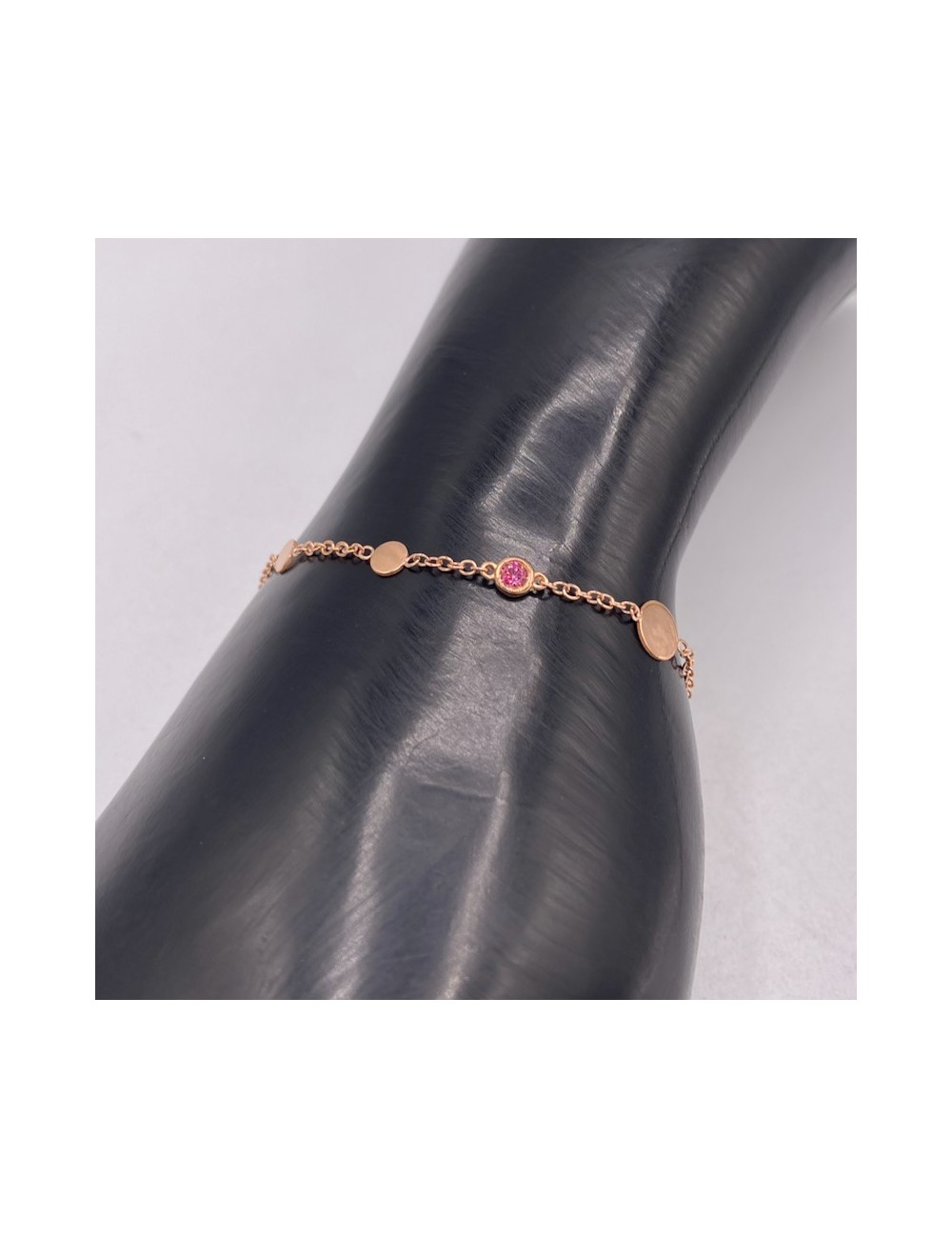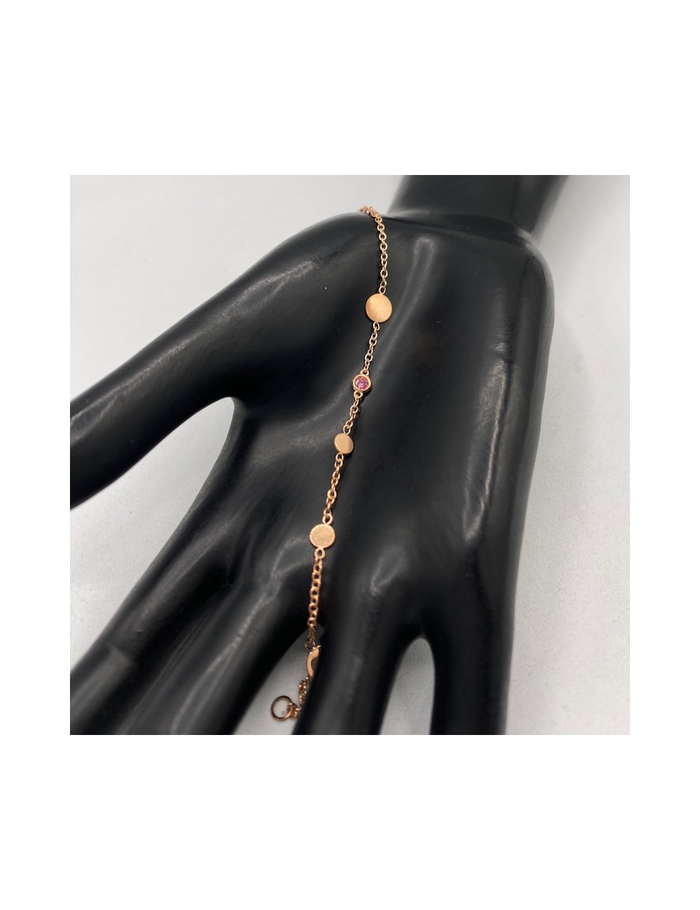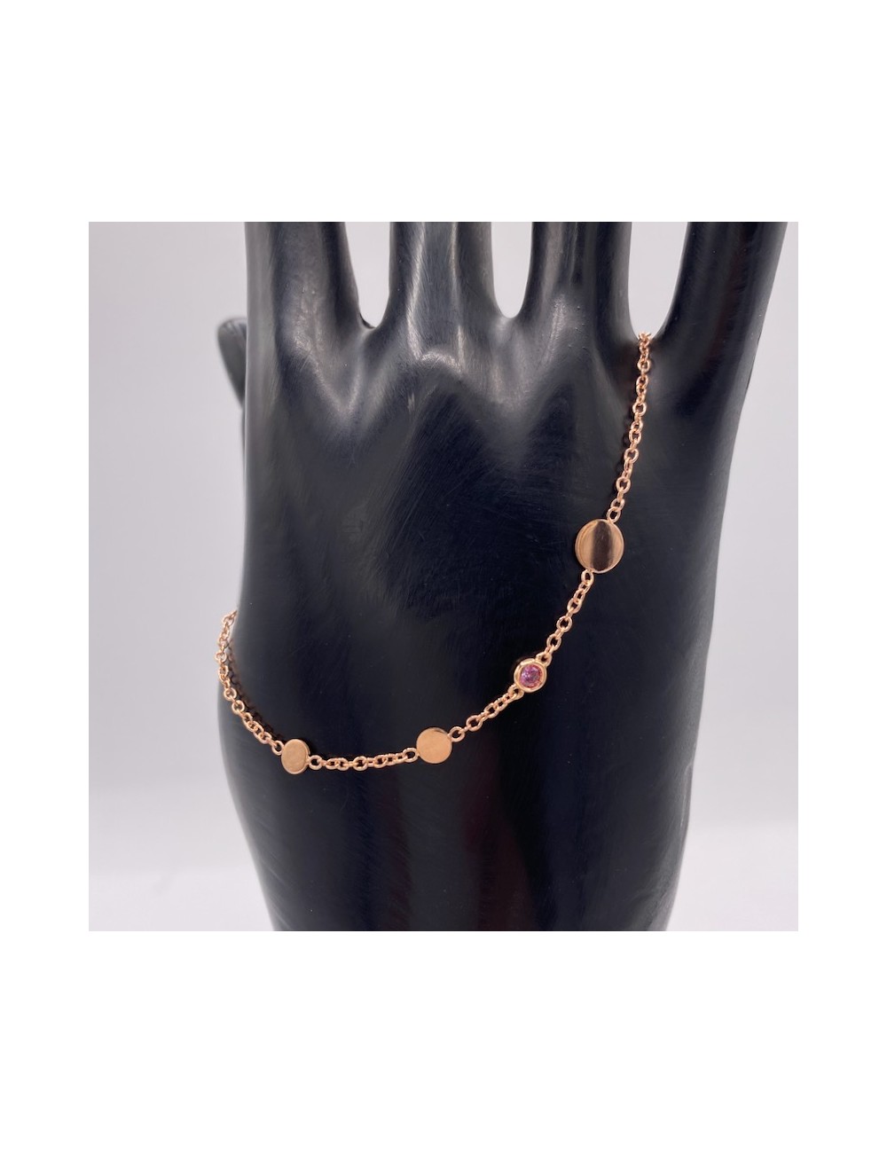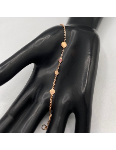 Bracciale in oro rosa con maglia "rolò piccola" con dischetti tondi intervallati.