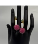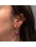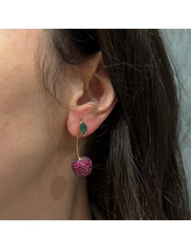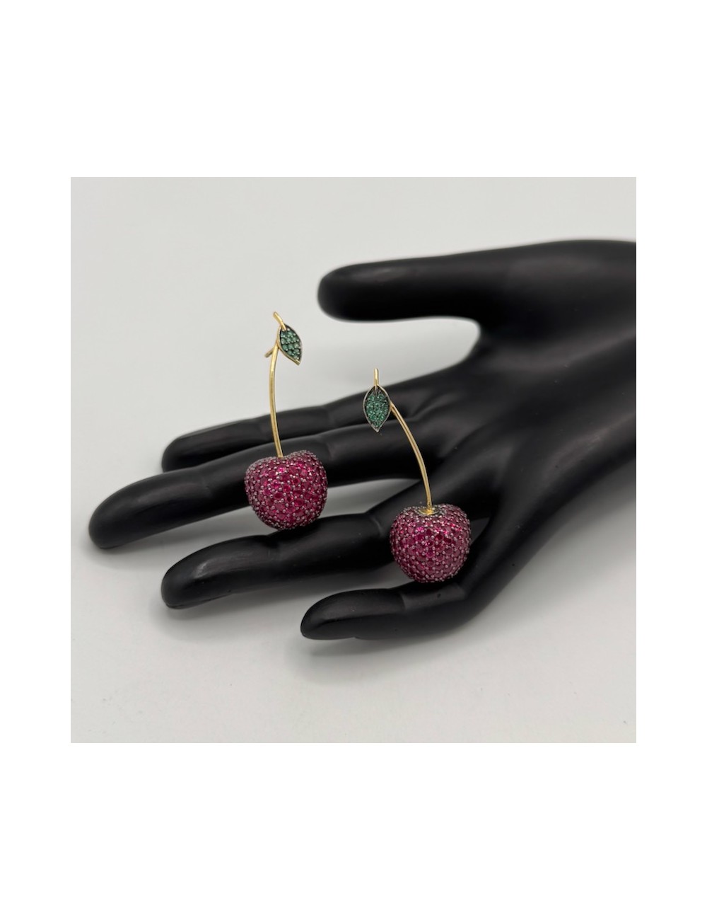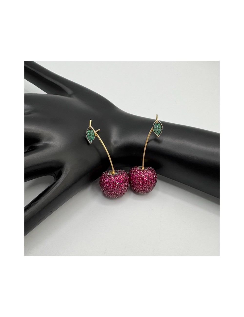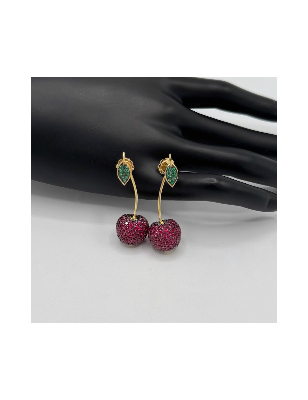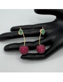 -Orecchino modello "grande Cherry" in oro rosa,Rubini naturali primo colore ct.12,20,Smeraldi naturali ct.0,16. 8900€
