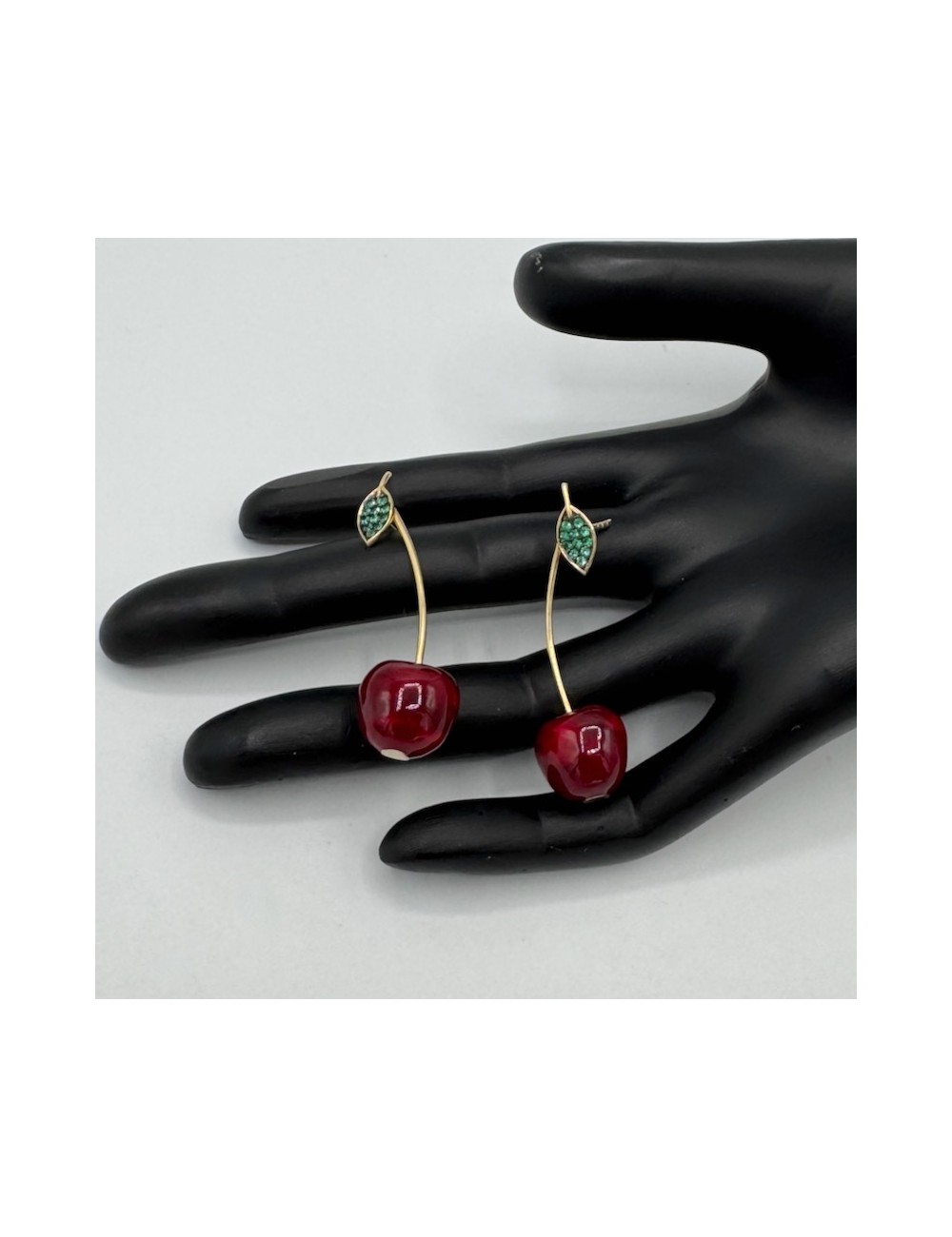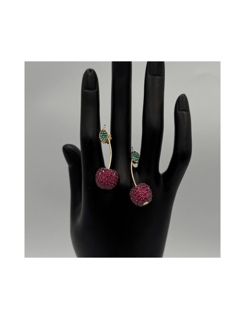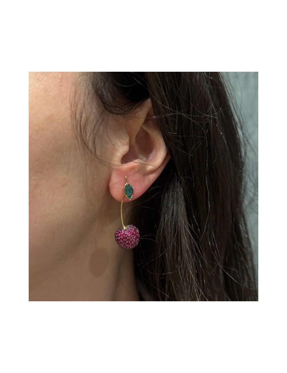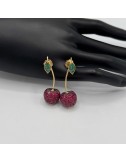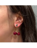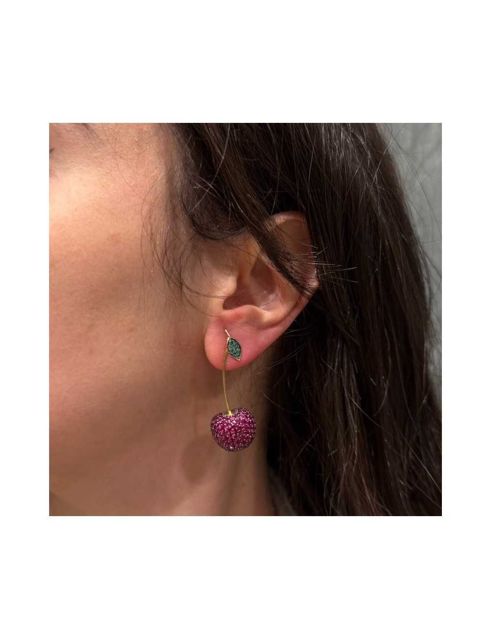-Orecchino modello "smalto Cherry" in oro rosa con ciliegie doppie in smalto rosso e Smeraldi naturali ct.0,13. 4000€ NON DISPONIBILE