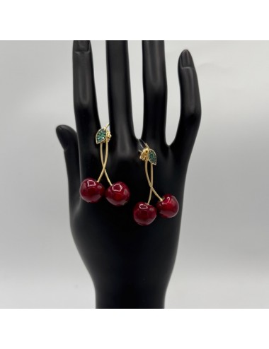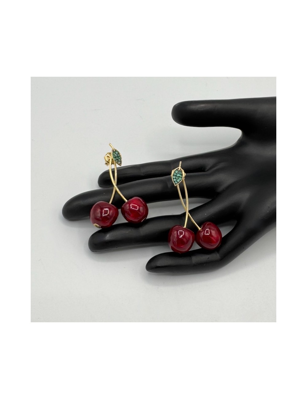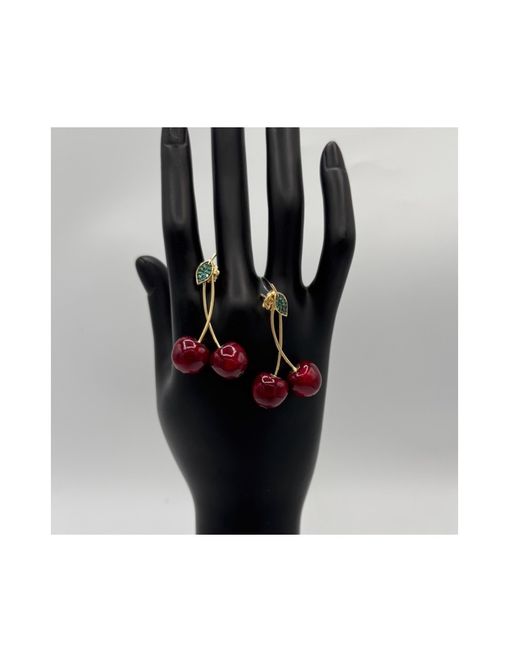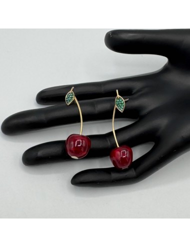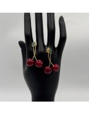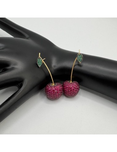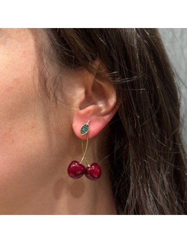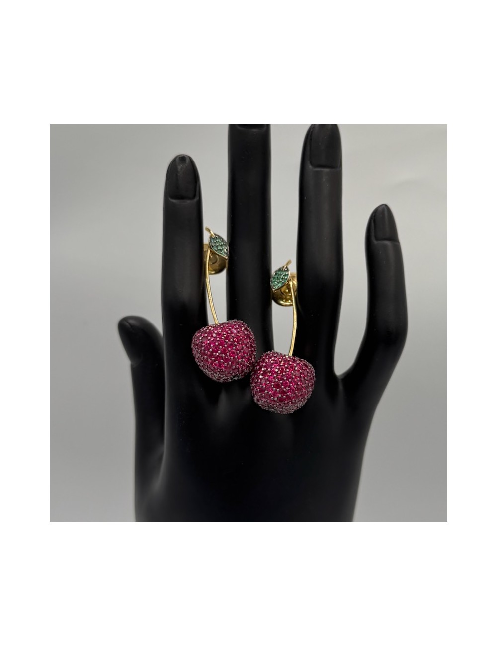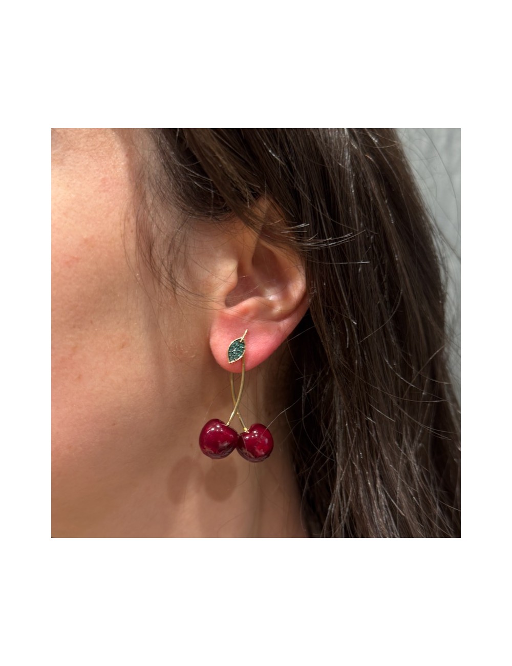 -Orecchino modello "smalto Cherry" in oro rosa con ciliegie doppie in smalto rosso e Smeraldi naturali ct.0,13. 4000€ NON DISPONIBILE