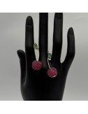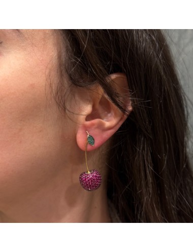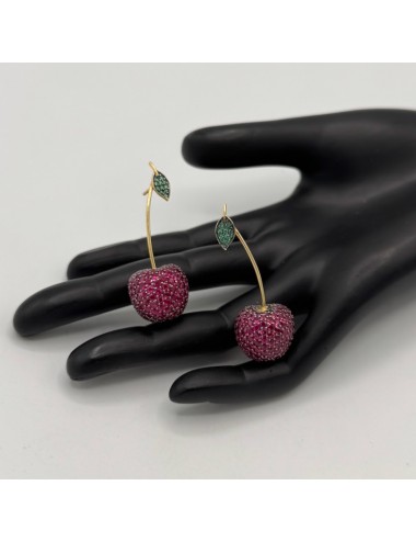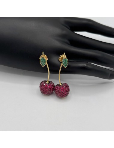 Modello pendente con la parte a lobo con foglia con Smeraldi naturali,parte finale con ciliegia con Rubini naturali o smalti.
