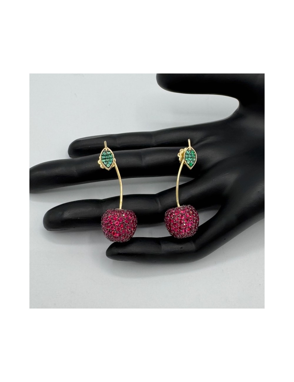 -Orecchino modello "medio Cherry" in oro rosa,Rubini naturali primo colore ct.7,04,Smeraldi naturali ct.0,18. 7900€