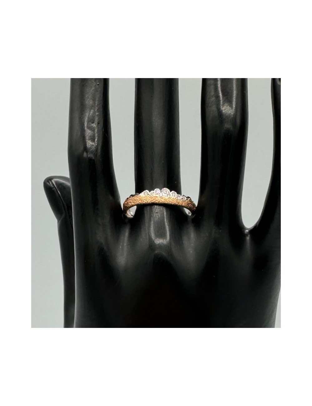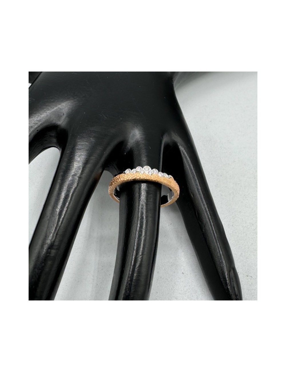 Parte centrale in oro rosa "sabbiato" e parte laterale in oro bianco martellato e Diamanti caratura complessiva 0,09.