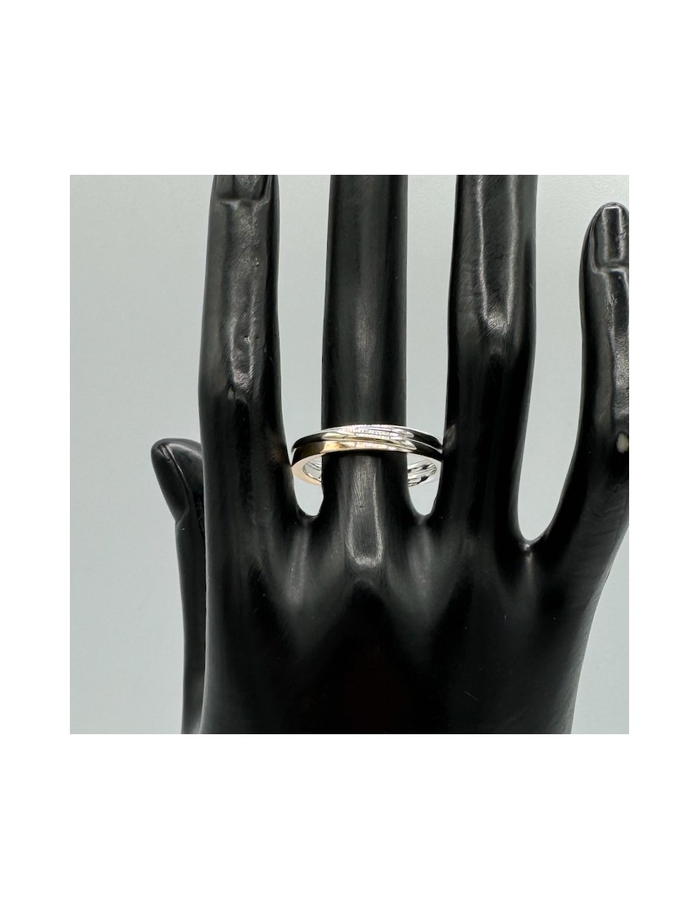 Fede nuziale piatta in oro bianco e rosa con intreccio.