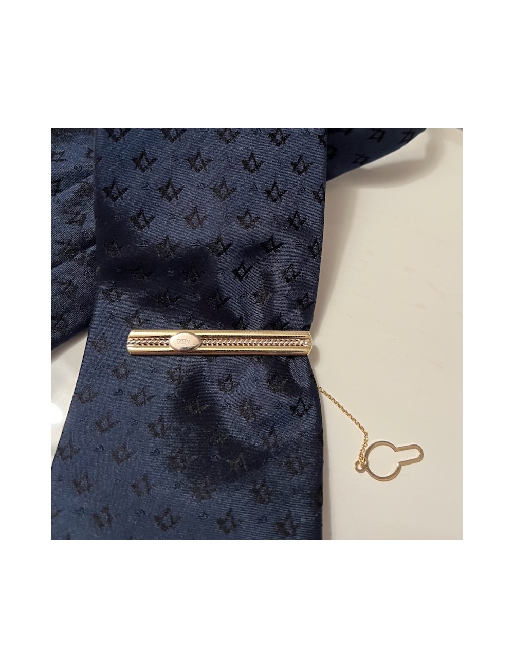 Fermacravatte in oro giallo con lavorazione "cordura" centrale.Ditta Kria.
