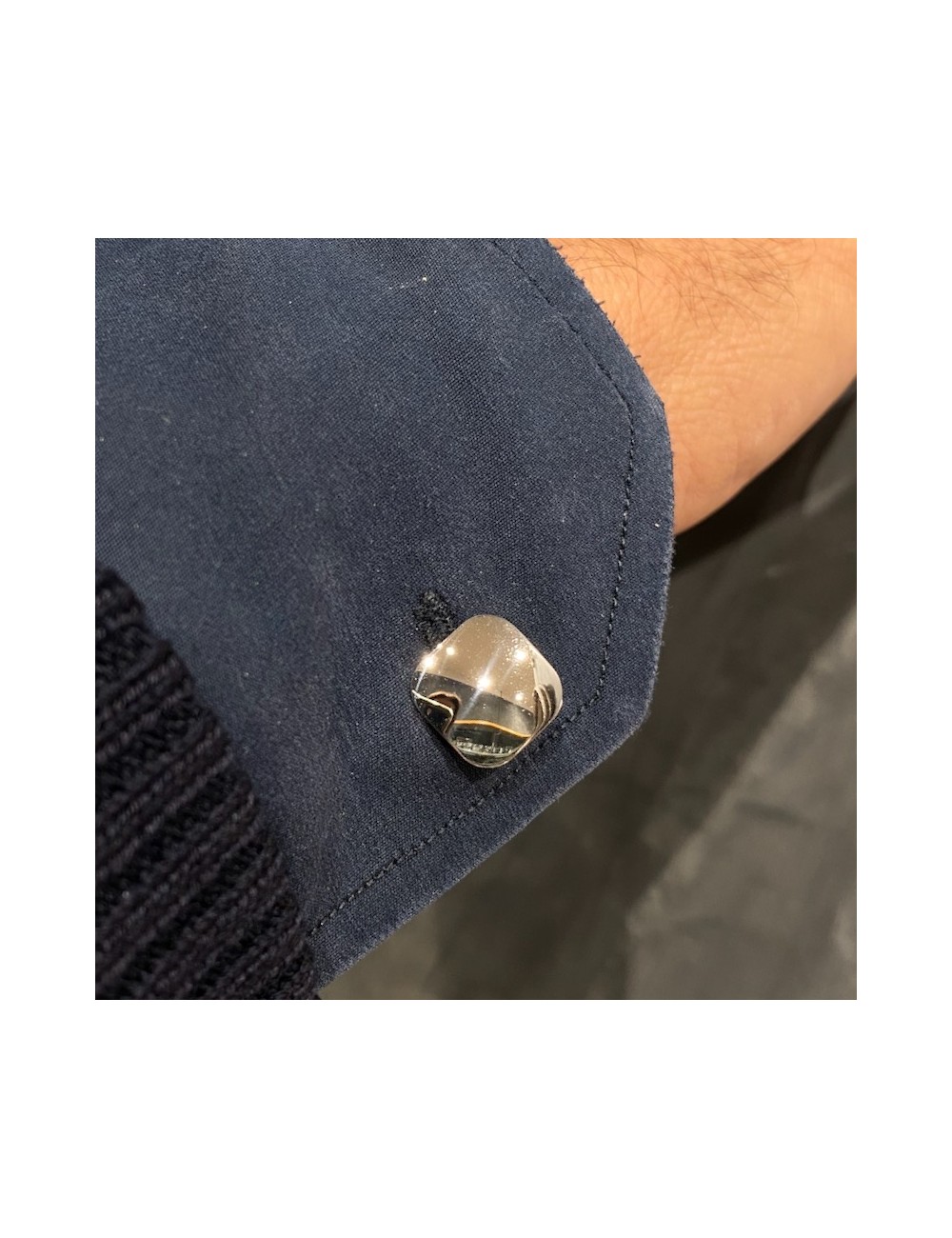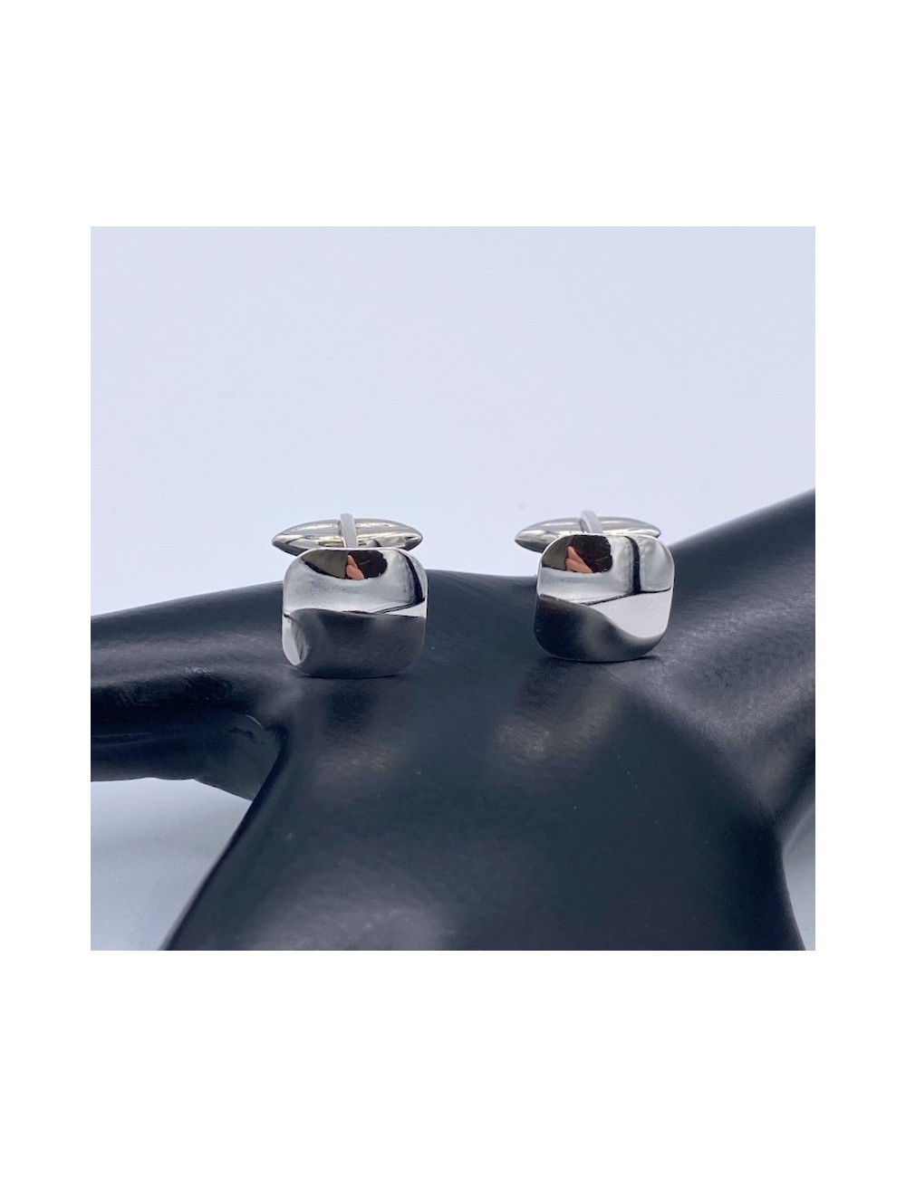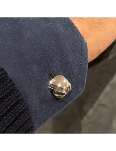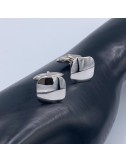 Gemelli in oro bianco di forma quadrata con la chiusura all'americana