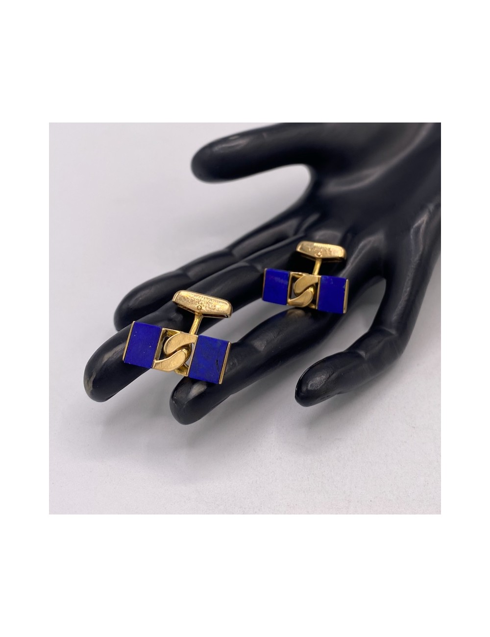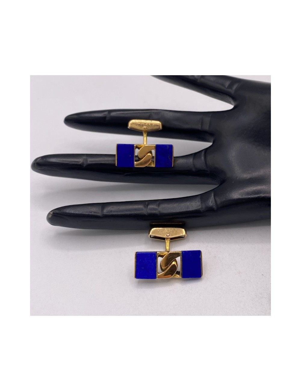 Gemelli vintage in oro giallo e pietra Lapislazzulo.