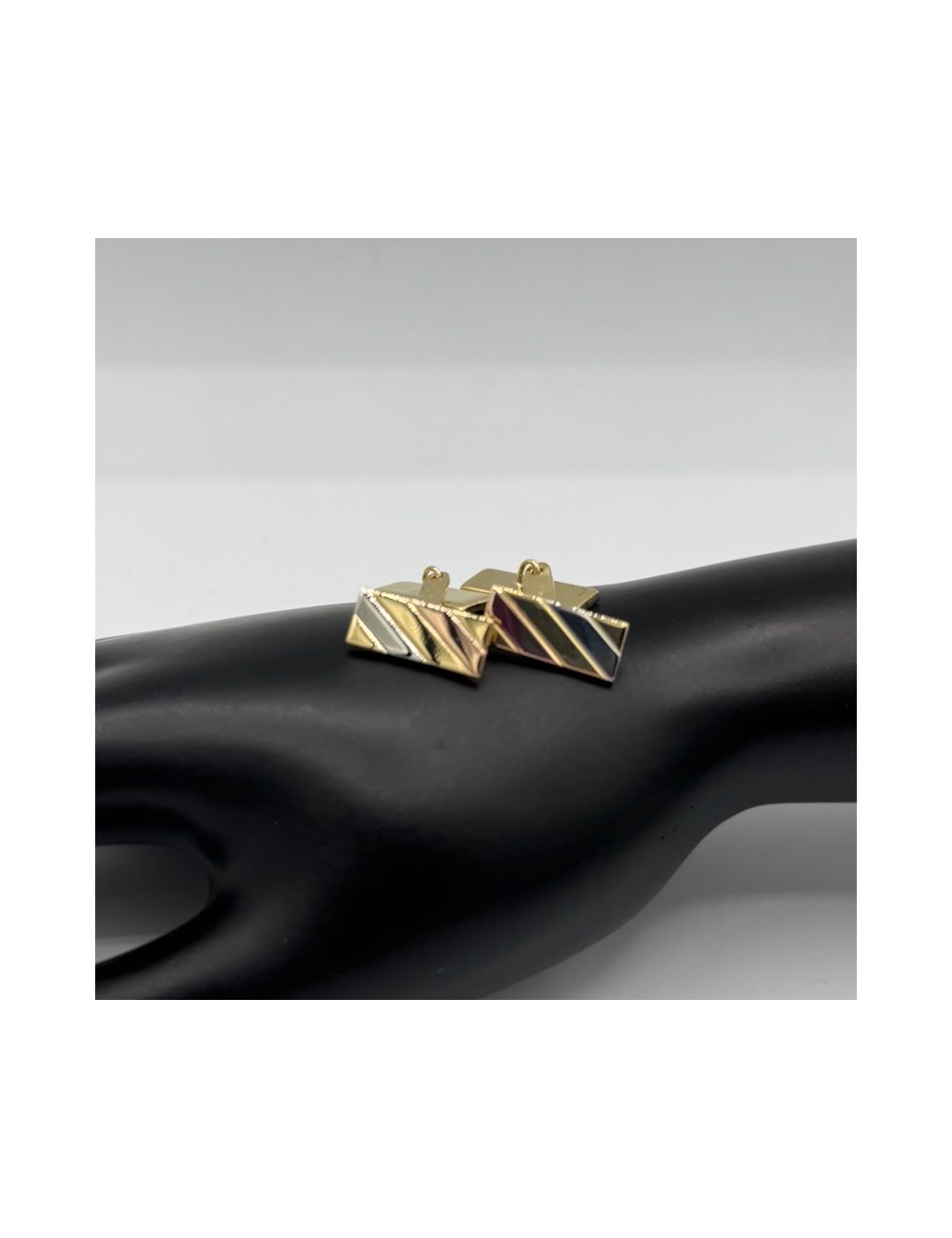 Gemelli rettangolari in oro bianco,giallo e rosa.Modello denominato "Cartier".