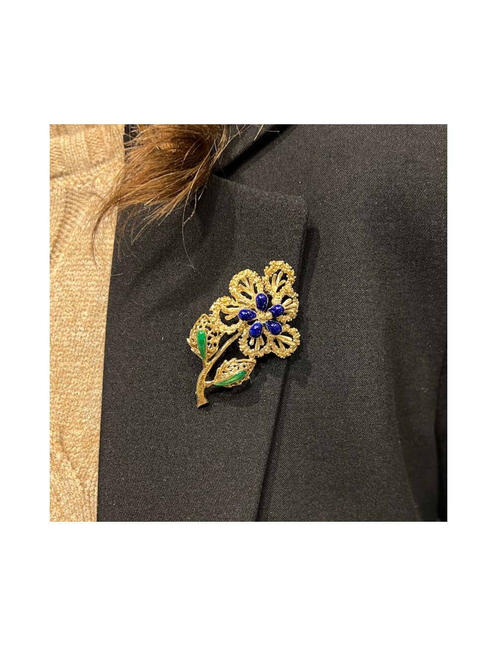 Spilla vintage in oro giallo 750/1000 di motivo floreale.
