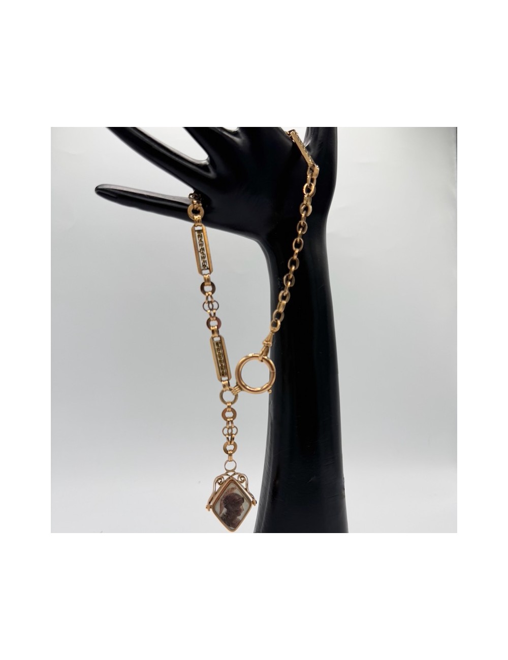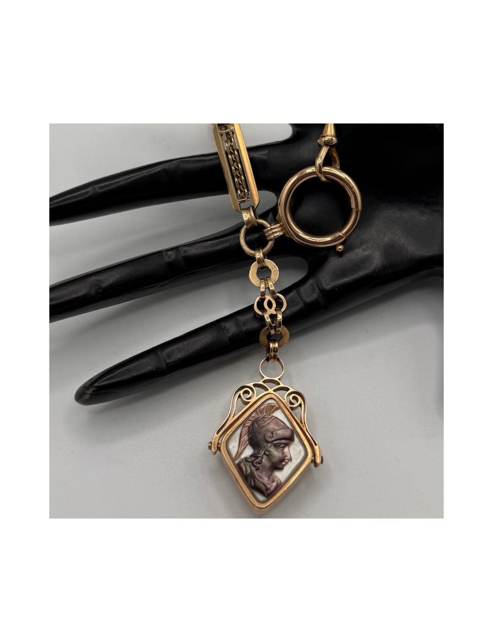 Splendida maglia a "losanghe grandi" con meraviglioso ciondolo finale e girevole con madreperla e motivo "a guerriero".