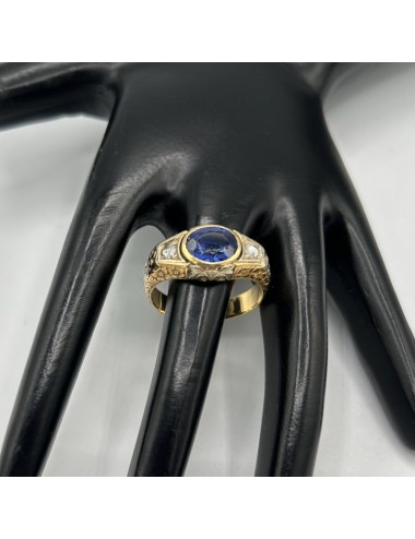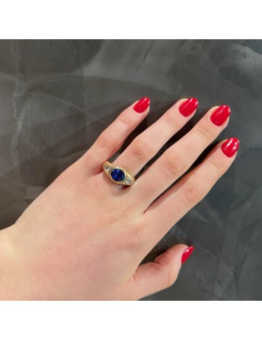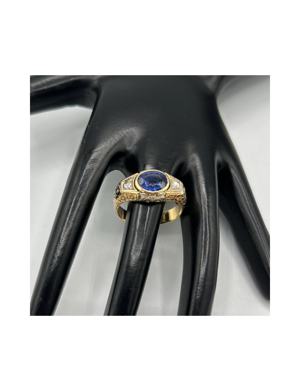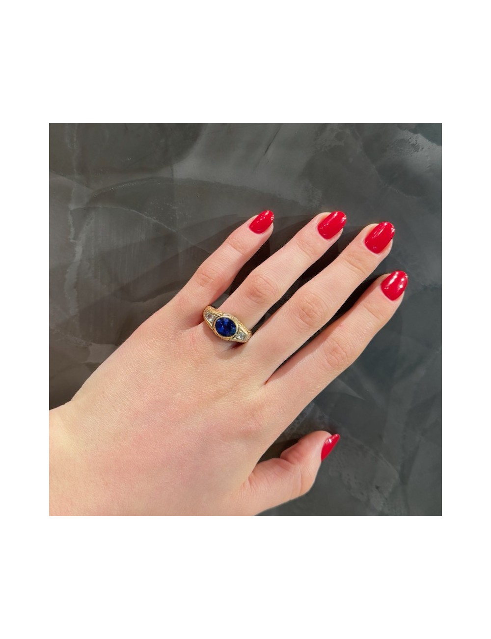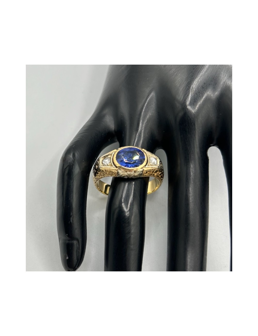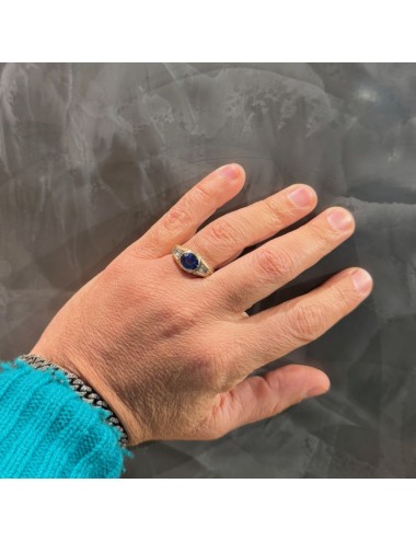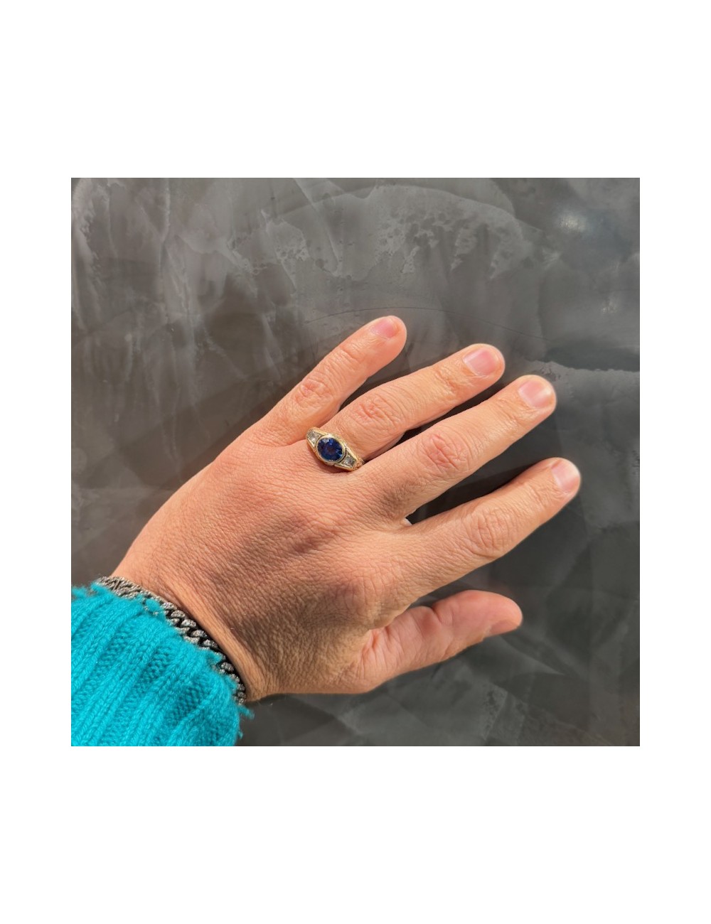 Anello antico da uomo con Zaffiro blu centrale taglio Ovale.
