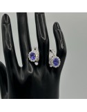 N.2 Pietre Tanzanite primo colore ct.2,75,Diamanti taglio Brillante di contorno F color 1,65.